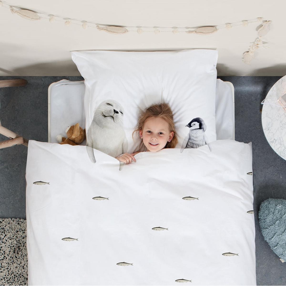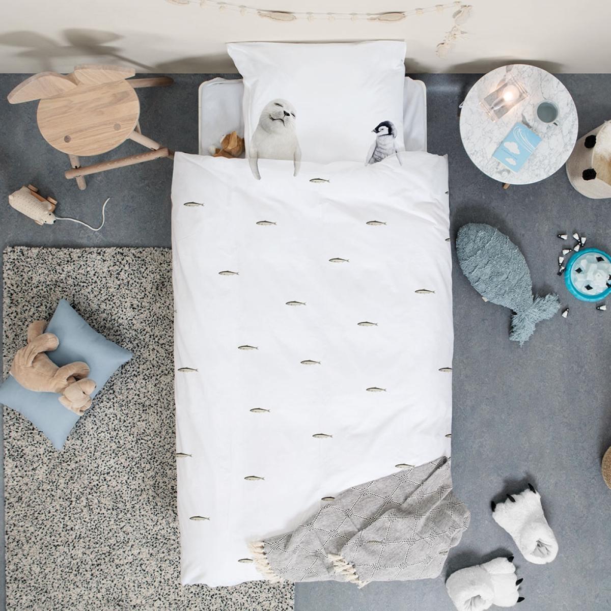 It may look snowy, but the Arctic Friends Duvet Bedding Set from Snurk is sure to keep your little one cosy! Made from super soft cotton your little one can nuzzle down between the seal pup and penguin for a snuggly snooze, it's enough to make your heart melt! And with a fish patterned single duvet cover, the adorable duo are sure to be happy. For other amazing photographic bedding designs see more from SNURK!.