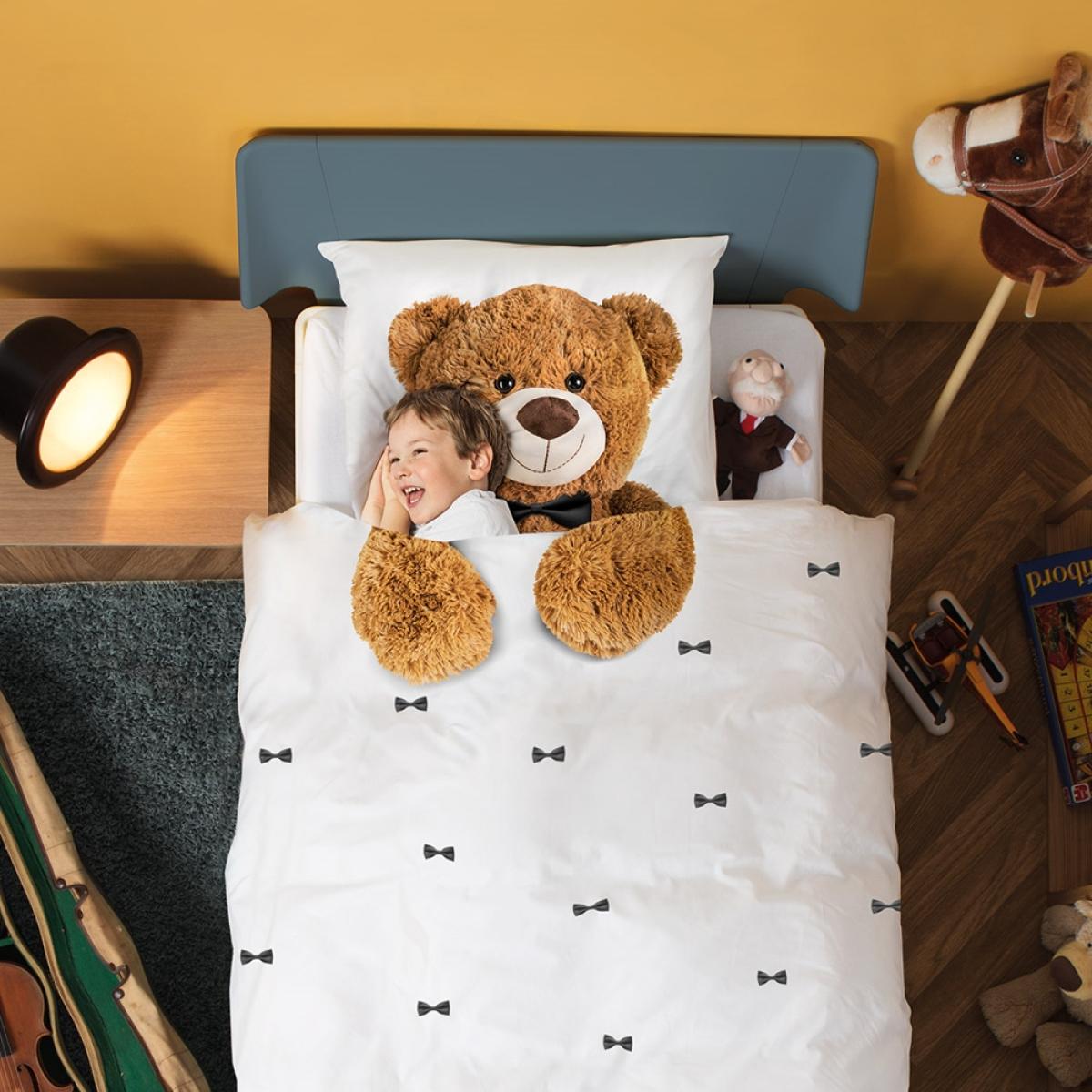 Perfect for snoozing, this amazing Teddy Bear Duvet Cover Set from SNURK gives the biggest and best bedtime cuddles! Made from super soft cotton, this unique single duvet cover set, with bow tie pattern, will keep your little one warm and cosy all night long! Whether you have a boy or girl, they will love snuggling up and hugging their teddy! For other fantastic photographic bedding sets, see more from SNURK!.