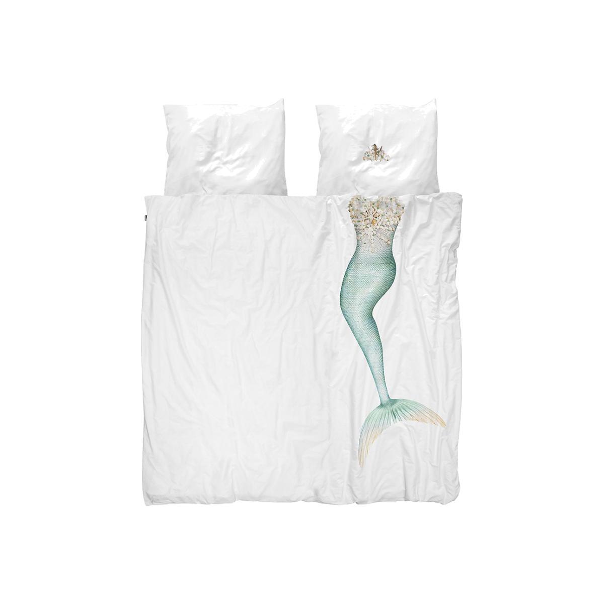 Refresh a bedroom with this Mermaid duvet set from Snurk. Made from 100% cotton, this stylish bed linen features an elegant mermaid print, with realistic detailing giving the impression of having a mermaid tail whilst sleeping. Set against a crisp white background, the set comes with matching pillowcases to effortlessly transform a setting.