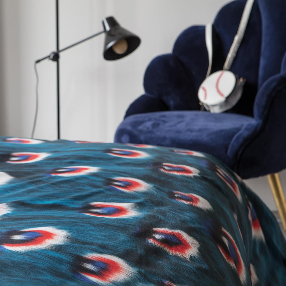 I love this duvet set because it adds a bold, contemporary touch with its striking peacock feather pattern. It works particularly well in modern or eclectic interiors, where a pop of colour and pattern can elevate the space. For styling, I’d suggest pairing it with neutral or muted bedding and accessories to let the design stand out, while adding textured cushions or throws in shades pulled from the feathers for visual interest. It's also versatile enough for layered looks-think mixing it with cosy knitted throws or velvet cushions for a balanced, inviting feel. This duvet set is a great way to inject personality into a bedroom without overwhelming the overall aesthetic.