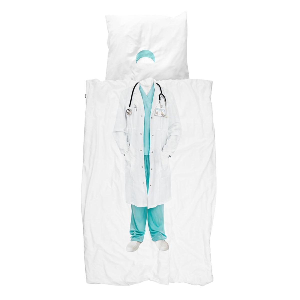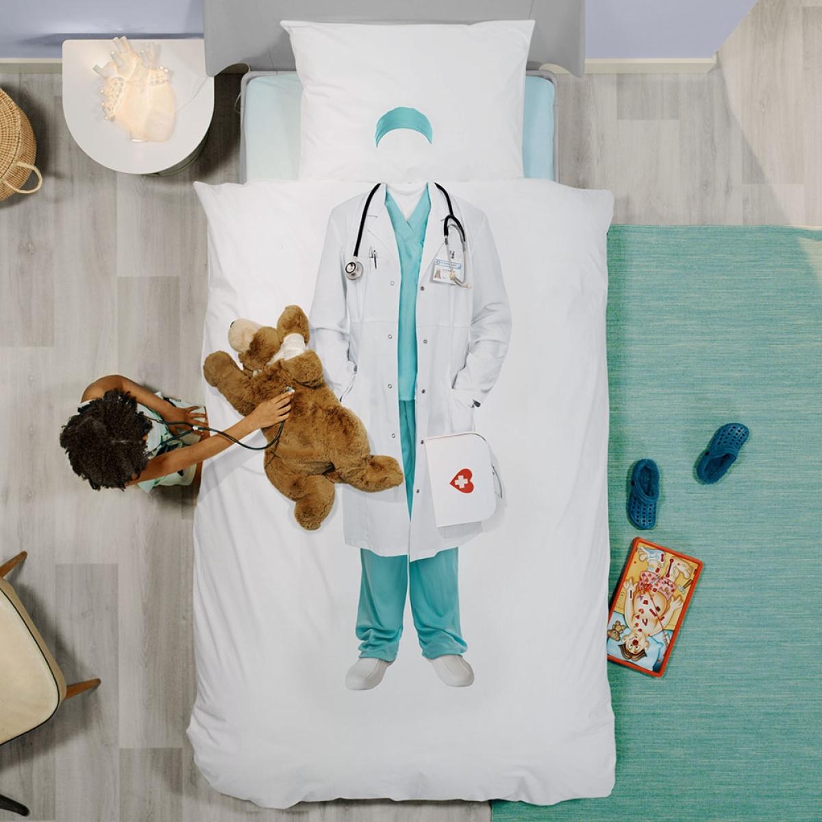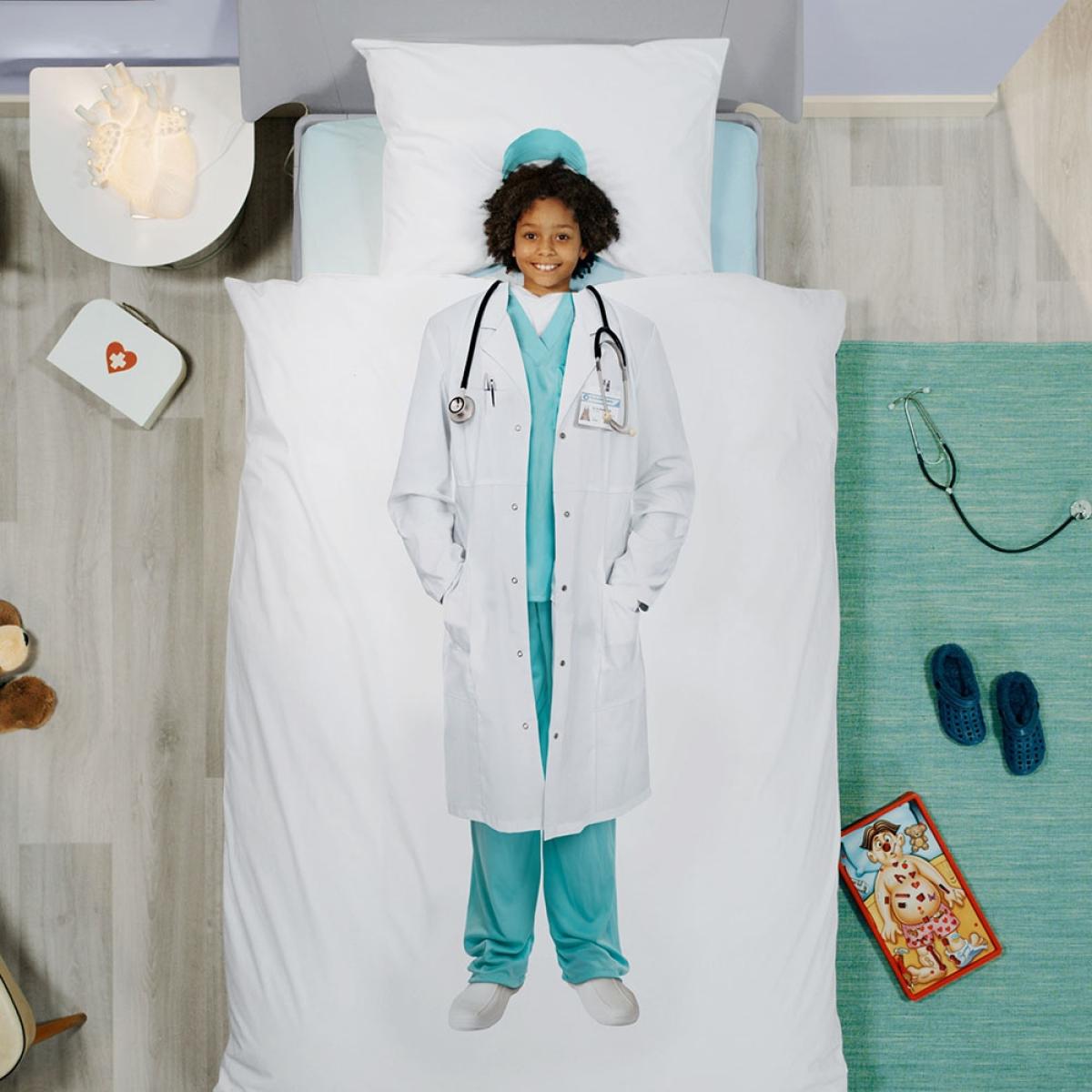 Your little one can play hospital with the brilliant Snurk Single Doctor Duvet Bedding Set! Featuring doctor scrubs and a stethoscope, when they're tucked up under the 100% cotton duvet cover they'll look just like their NHS heroes! Feeling sleepy? We prescribe a storybook and some hot milk before plenty of bed rest! The pillowcase and bedding set is machine washable and tumble drier safe too, so it's easy to keep clean. With other unique bed sheets available from Snurk, there's a design for every imaginative kiddy!.