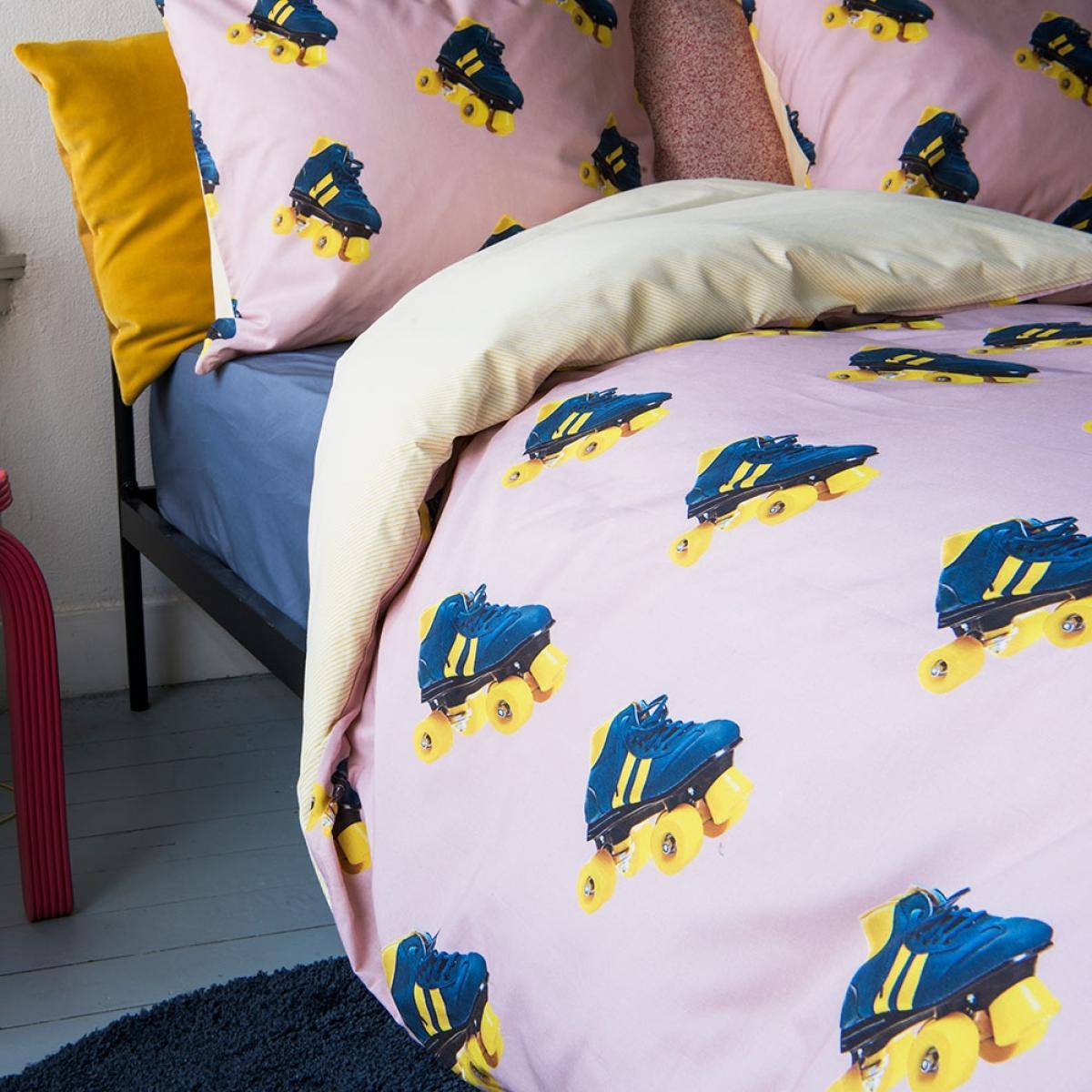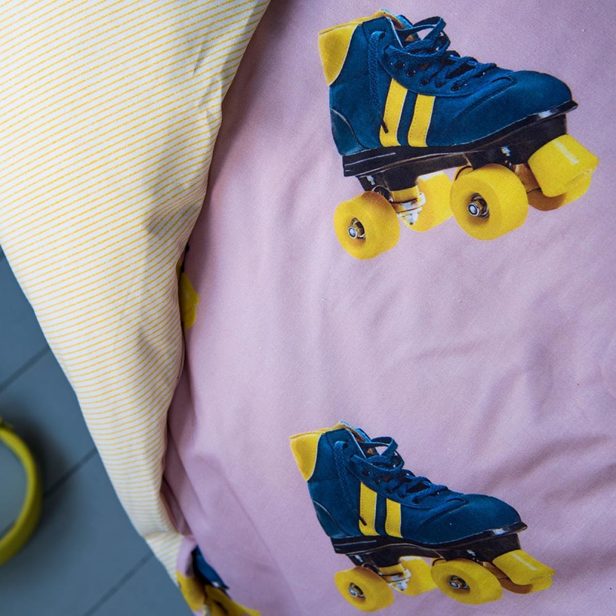 Bold, bright and beautiful; the Snurk Single Roller Skates Duvet Bedding Set will knock your socks off! Featuring yellow candy stripes and blue and yellow roller skates, this bedding set is giving us some serious retro, American diner vibes. Perfect in the spare room or for your active little kiddywinks, this gorgeous pattern can be appreciated by all! Made from soft 100% cotton with a matching pillowcase included, if your kiddies haven't been scooting around during the day they sure will be dreaming in roller skates! With other amazing and unique bed sheets available from Snurk, there's a design for every room!.