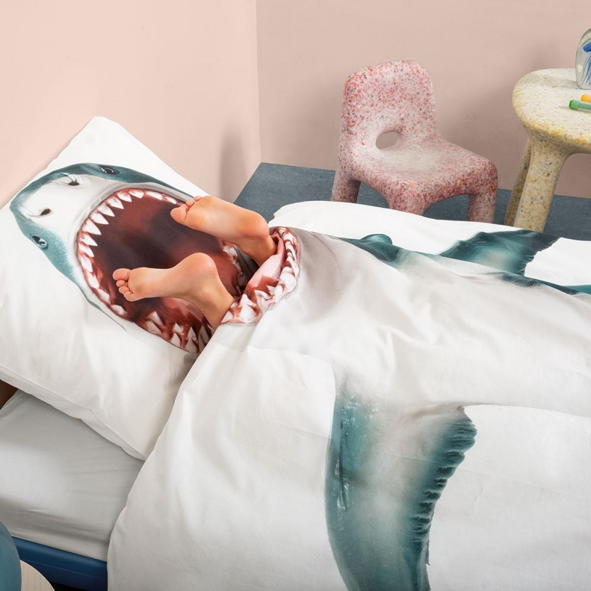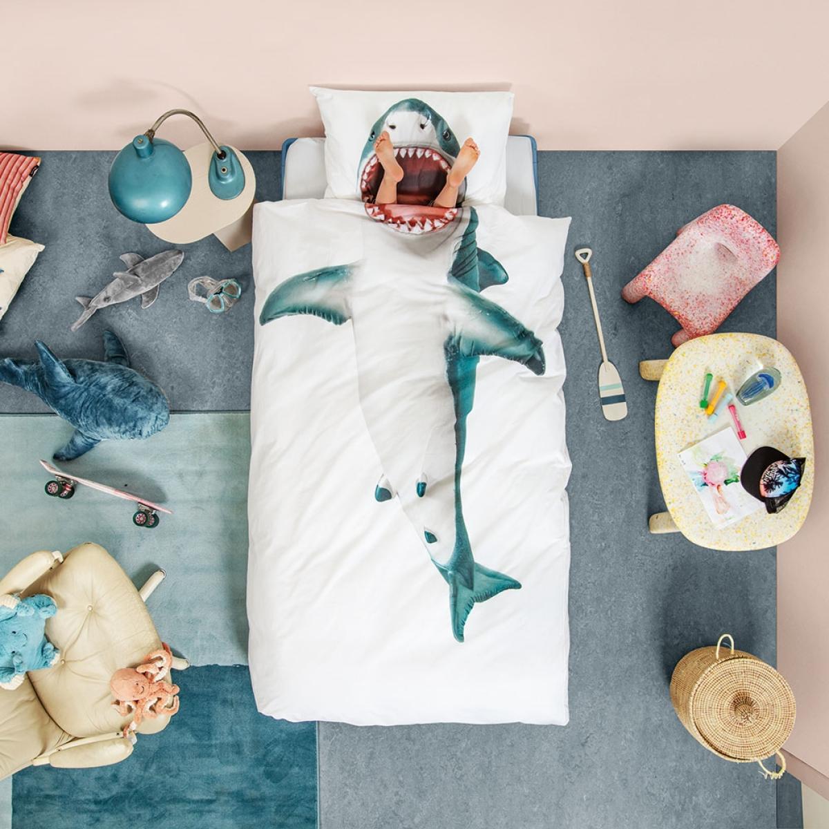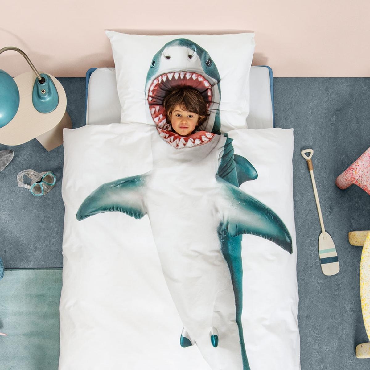 WARNING - this Shark Duvet Cover set might bite! The Snurk Children's Shark Duvet Bedding Set sure is jaw-dropping! Made from super soft 100% cotton, they'll want to dive straight under the covers and get snuggly. Perfect for any ocean themed bedroom; with a shark pillow case and duvet cover included, your kids will eat this up. With other unique bed sheets available from this fantastic Dutch brand, there's a design for every quirky kid!.