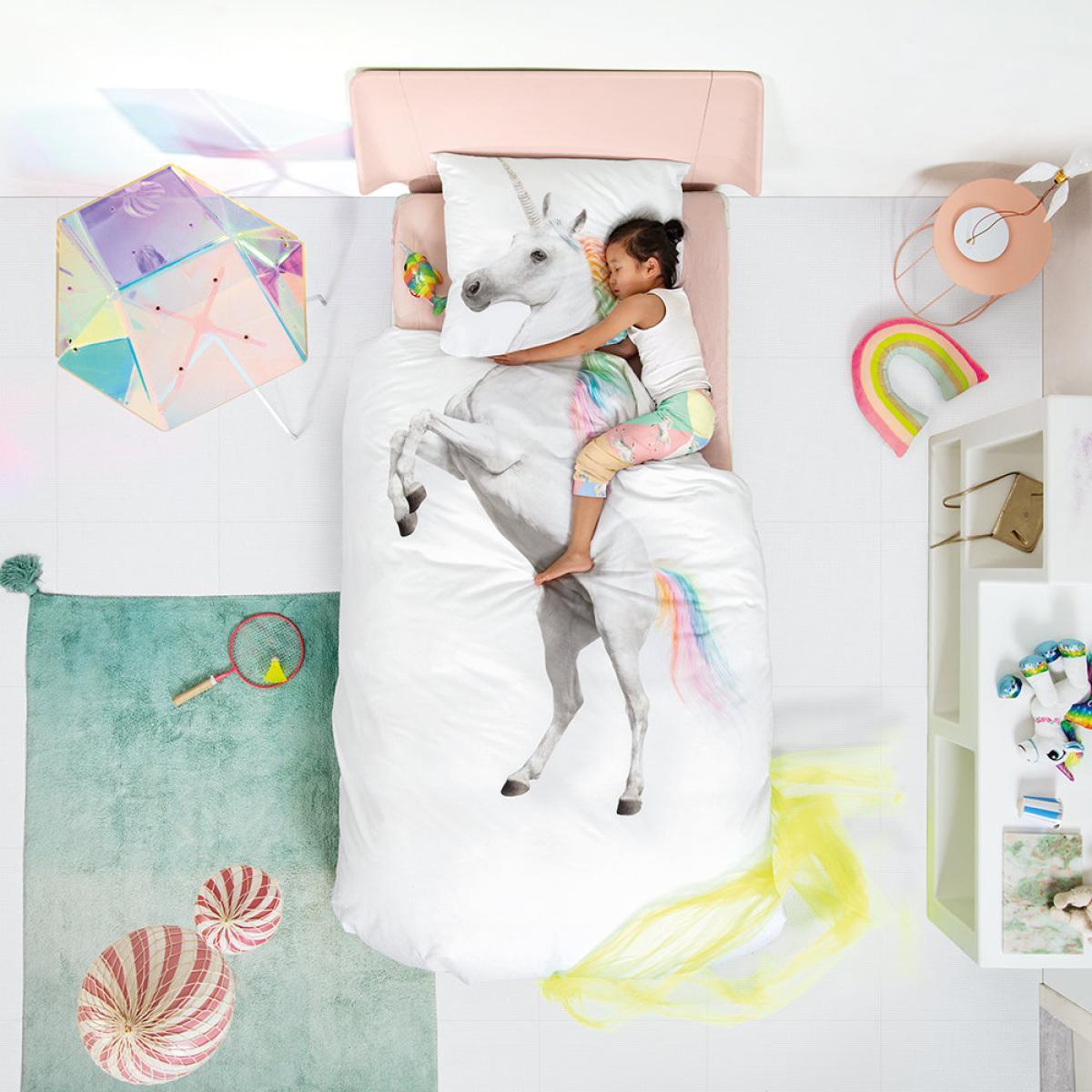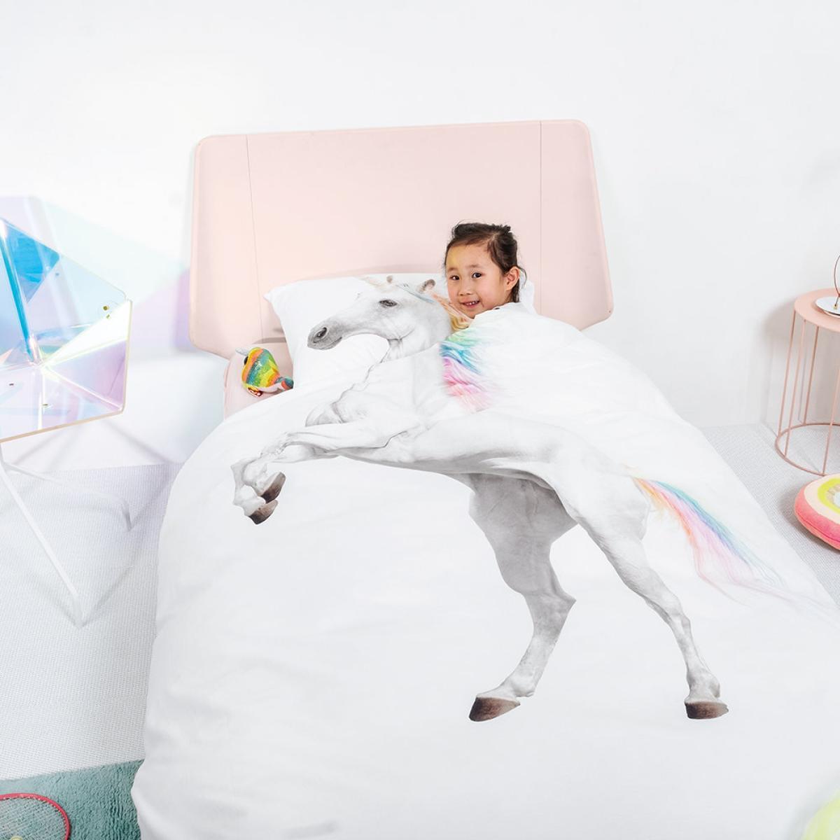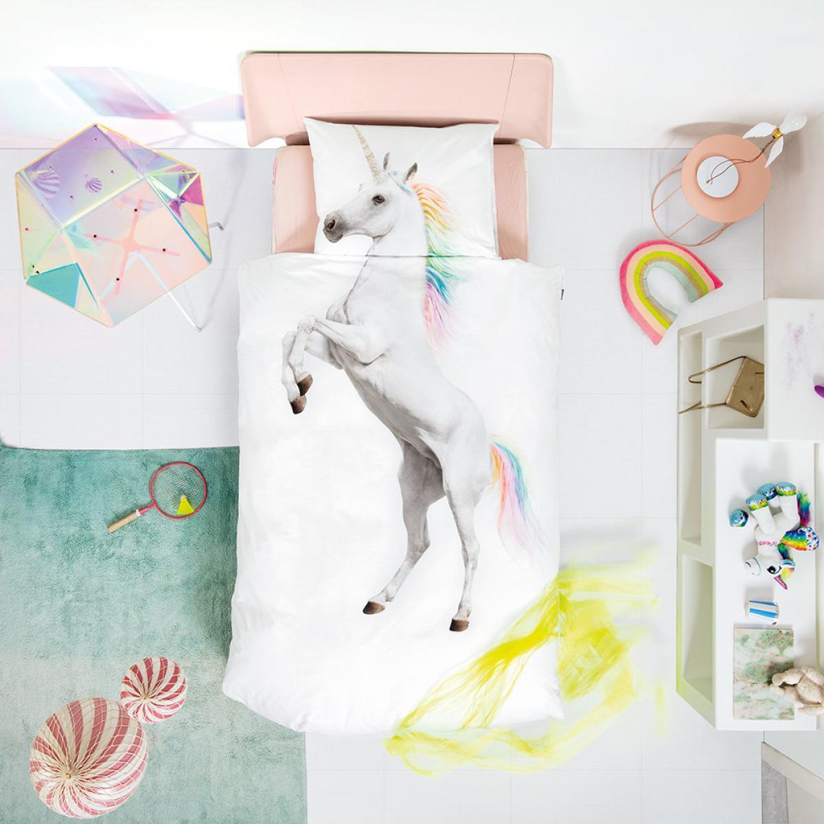 Allow your child to get lost in a mythical land as they sleep with this duvet set by Snurk. Made from 100% cotton, the set features a photographic unicorn print complete with rainbow coloured mane and tale. A unique design that’s sure to send imaginations soaring into unlimited adventures.