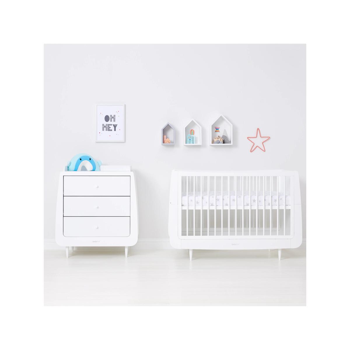 Obaby Grace Cot Bed, Cot Top Changer + Fibre Mattress Set White