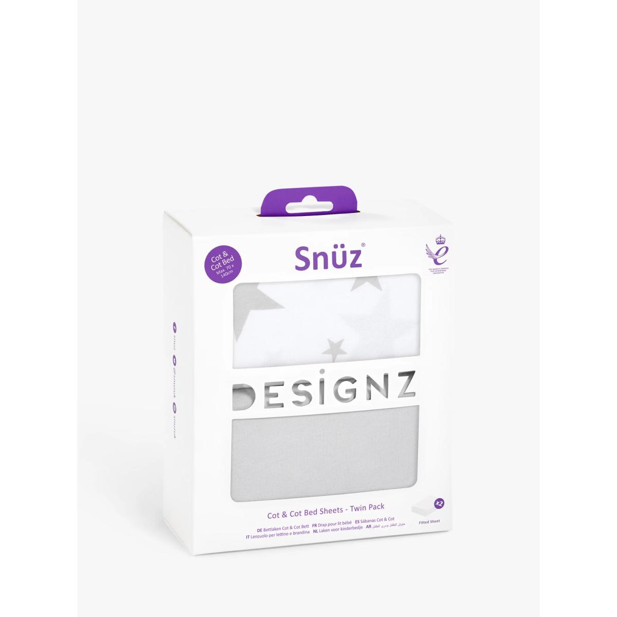 Snüz Baby Star Cot/Cotbed Fitted Sheets, 2 Piece Set, White/Grey