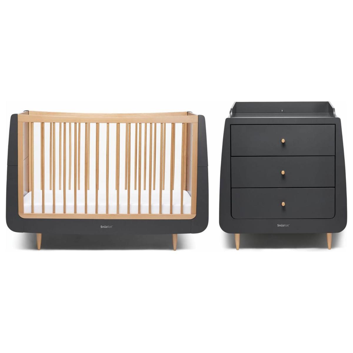 Preparing for your new arrival? Look no further than our fantastic range of nursery furniture sets. Available in a huge array of colours and contemporary designs, these baby furniture sets will look at home in any interior or decor. With so many styles and colours to choose from, create the dream nursery for your little one. As your child grows, so does Snuz. Kot, converting to a toddler bed up to 4 years, and with the additional junior bed extension kit to approximately 10 years. Part of the Snuz Kot collection. 2 piece set, including: cot bed, changing unit,. Made of beech. Self-assembly. If the product is over 60cm high it must be securely attached to the wall to prevent overturning. - 2 people recommended. Suitable from birth month and overto 4 year. Cot features Cot L120, W81, H25.5cm. Weight 36.3kg. 1 position adjustable mattress to lower the baby as they grow. Mattress base adjustable height 19cm, 35cm, 51cm. Mattress not included. Mattress required: L117, W68, D11cm. Cot suitable from birth until baby is able to climb out. Converts to toddler bed. Toddler bed suitable for ages 4 years to 10 years. Cot bed maximum user weight 21kg. Chest of drawers features Drawers H85, W96, D55cm. Weight 43.2kg. 3 drawers. Integrated changer top. Changer features W66, D44cm. Changer top attached. Changer top detachable. Changer H96, W85, D55cm. Packaging Comes in 8 boxes.
