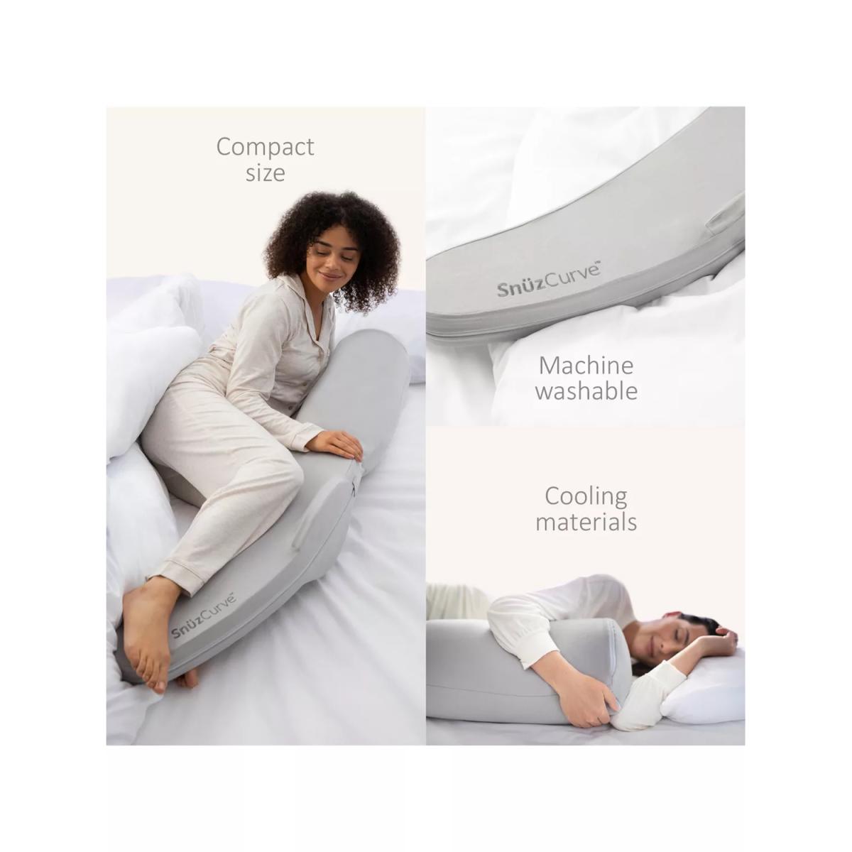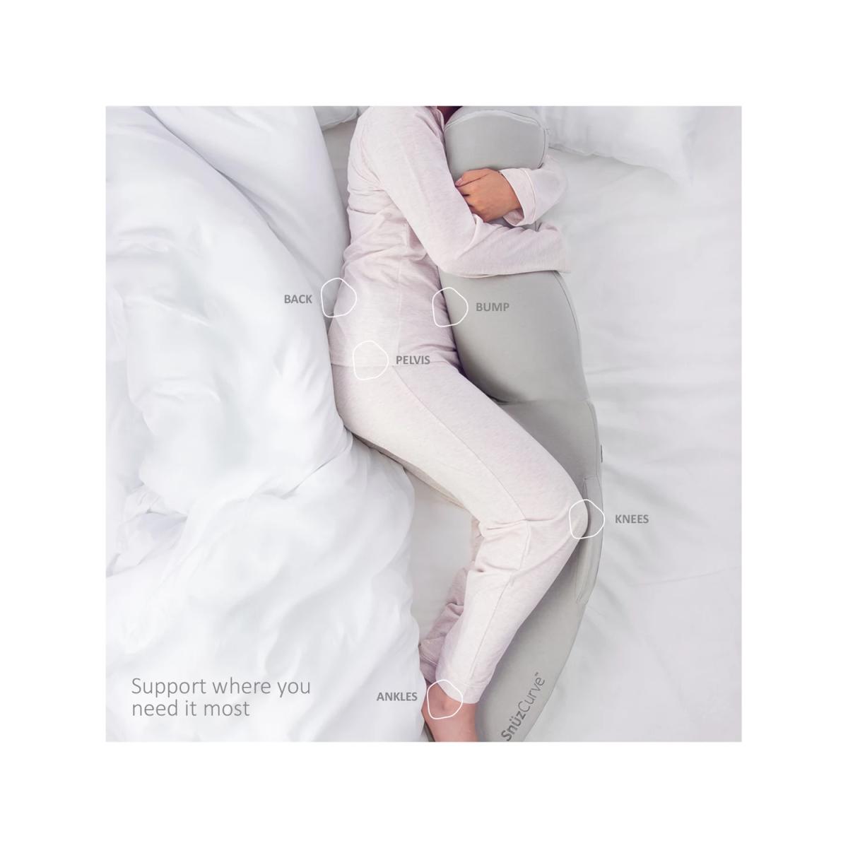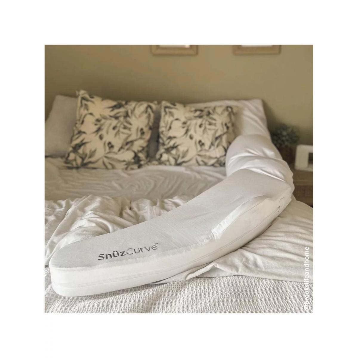 Specifically designed for your ever-changing body during pregnancy, the Snuz Curve pillow gives you the support and positioning you need to take care of yourself (and bump) and help you drift off to sleep. Simply put, Snuz Curve has got your back. SnuzCurve has been developed with experts so you can nod off comfortably, knowing that the uniquely structured pillow will be keeping you (and your bump) in that perfect sleep posture, all night through. Key Features: Peace of mind: The first pregnancy pillow that actually guides you into the correct sleep position, with Knee. Blade™ Healthcare developed: Created with health professionals and experts at every stage. One of a kind: Unique shape and curvature comforts and supports your whole body. Rest easy: Creates a neutral spine posture that helps reduce back pain and takes the pressure off all key stress points. Sleep in comfort:Cooling, breathable materials and retains your existing preferred head pillow Easy care: Compact size that stays fresh and clean, with a machine washable liner.