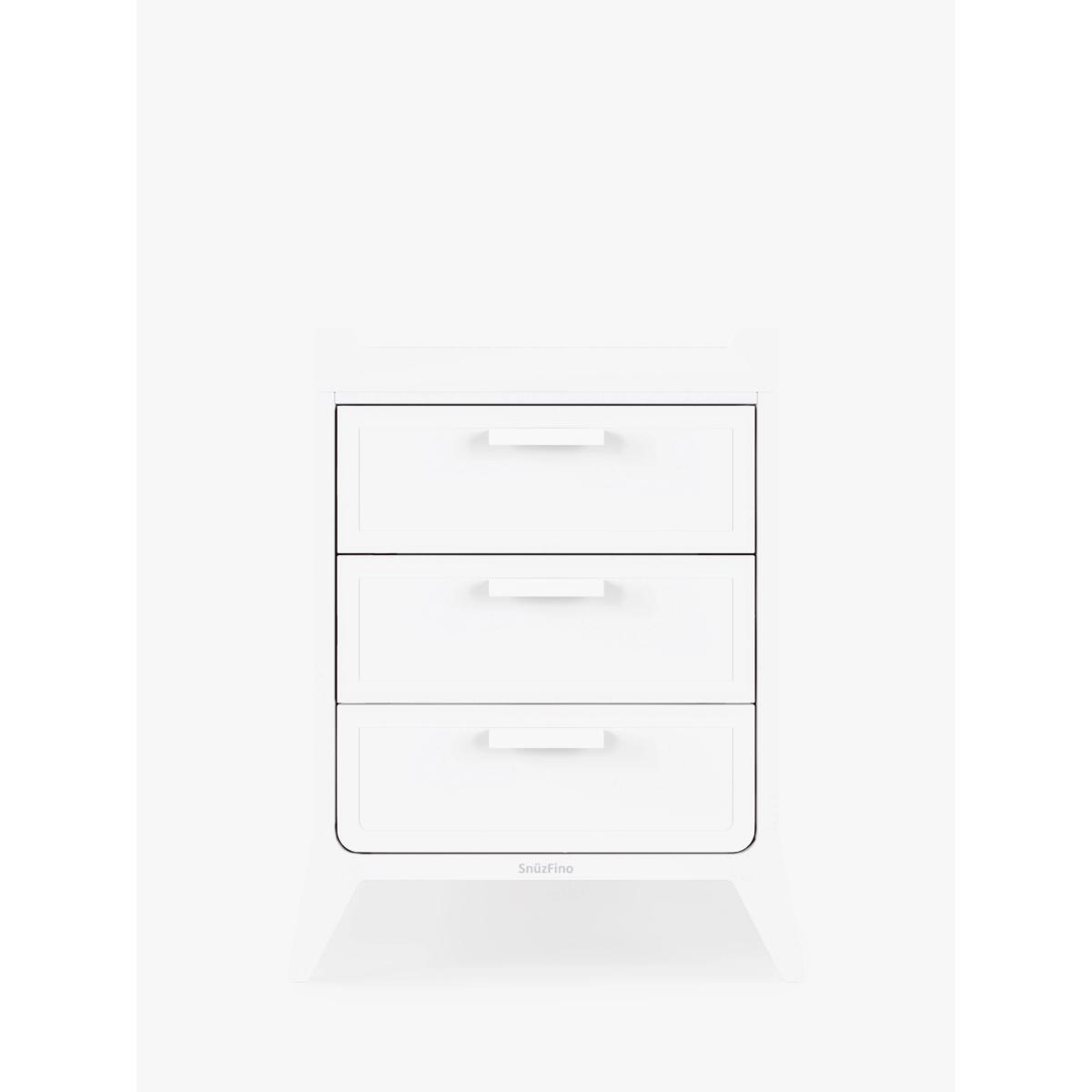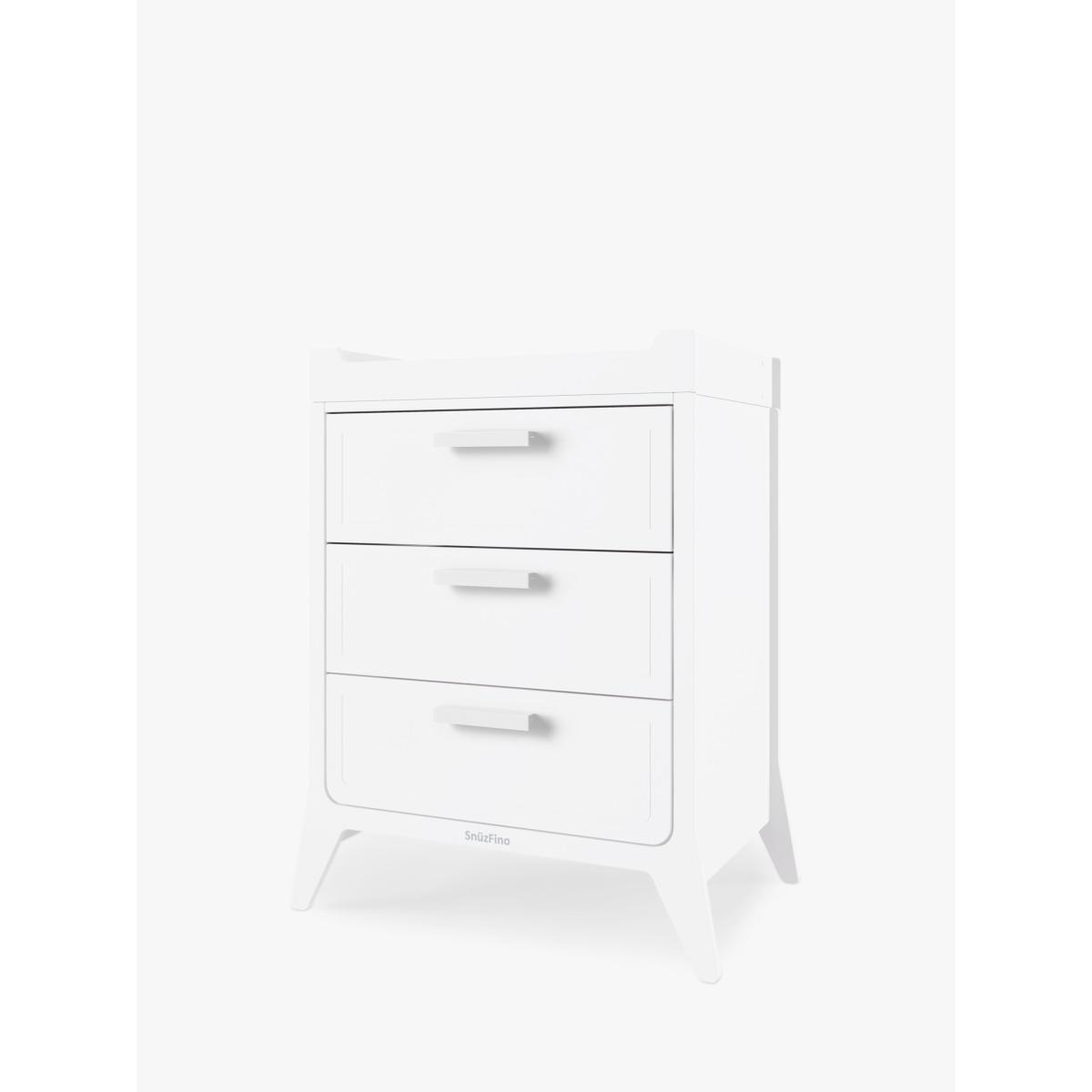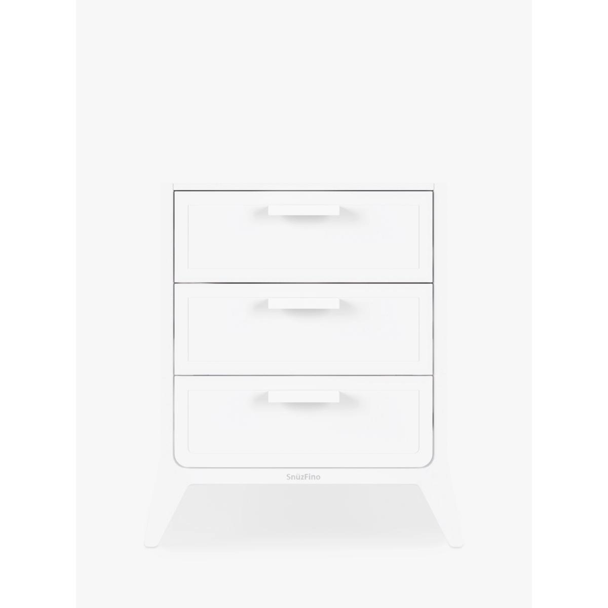 Discover true contemporary style with the Snuz Fino Cot Bed and Changing Unit Dresser set. The Snuz Fino Cot Bed features two mattress heights and can easily convert into a toddler bed for use up to 4 years of age, with a unique arched canopy and toddler rails for extra security as they sleep (toddler kit sold separately). The Snuz Fino Changing Unit is an ideal storage solution for your little one's nursery, featuring a removable changing frame, storage space at the back of changing table and 3 spacious soft close drawers for all your essentials. Cotbed Features: Minimal and understated in true contemporary style Suitable from birth to 18 months (or 4 years with toddler kit sold separately) Can convert to toddler bed Compatible with the Snuz Surface Mattress, 70 x 140cm (sold separately) Meets safety standards BS EN 716-1:2017 and AS/NZS 2172:2003. Toddler Mode: This bed conforms to BS 8509:2008+A1:2011 Changing Unit Features: The changing unit is suitable up to 12 months or 11kg The chest of drawers is suitable for children in the age range of 3 – 12 years Minimal and understated in true contemporary style Storage space at the back of changing table gives extra room to store toiletries for baby 3 spacious soft close drawers Removable changing frame Made from solid wood and plywood frame with stainless steel fittings Meets safety standards EN 12221-1:2008+ A1: 2013; FIRA/FRQG C001:2016 & FIRA/FRQG C004:2016+A1 2017 Converts into a standalone dresser Good to know: The Chainging unit is designed for use with Snuz Kot Changing Mat (66x44cm) only which is sold separately Includes anti-tip straps. The changing unit must be fixed to the wall, with the kit provided, for safe use of the product and to avoid tipping The maximum load for the drawers is 5kg This item comes in multiple separate flat pack boxes and requires assembly. Safety warning: Serious or fatal crushing injuries can occur from furniture tip-over. Due to the risk of overturning, the changing unit must be permanently fixed to the wall using the wall attachment device provided. Ensure the fastenings used are appropriate to the wall. Do not leave the child unattended. Safety warning: Do not leave anything in the cot or place the cot close to another product which could provide a foothold or present a danger of suffocation or strangulation, e.g. strings, blind/curtain cords, etc.