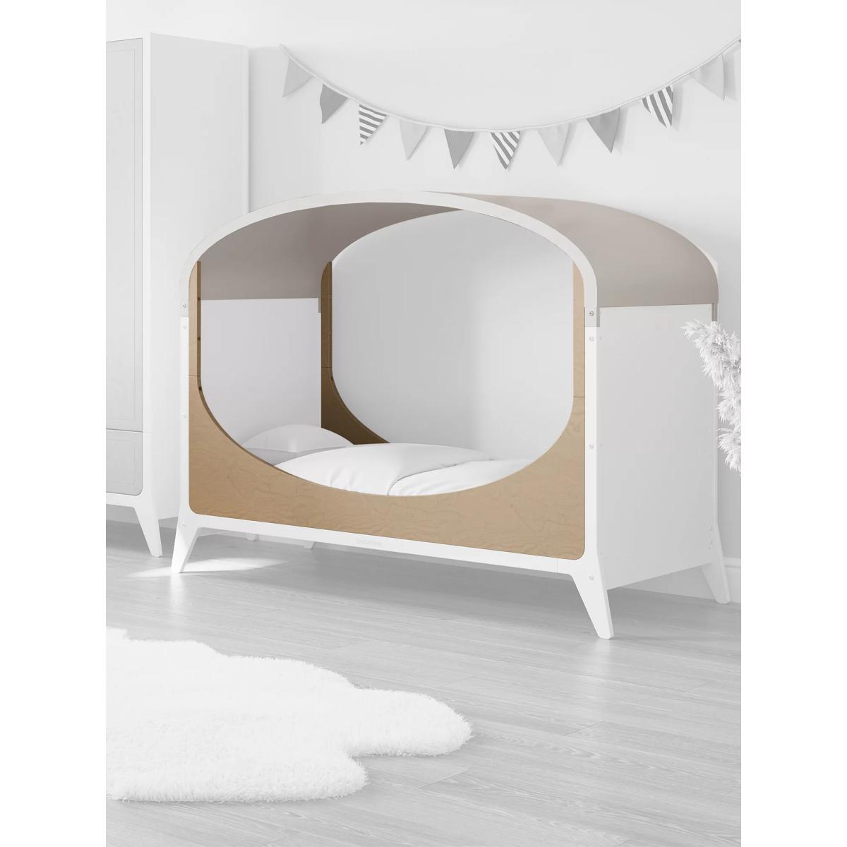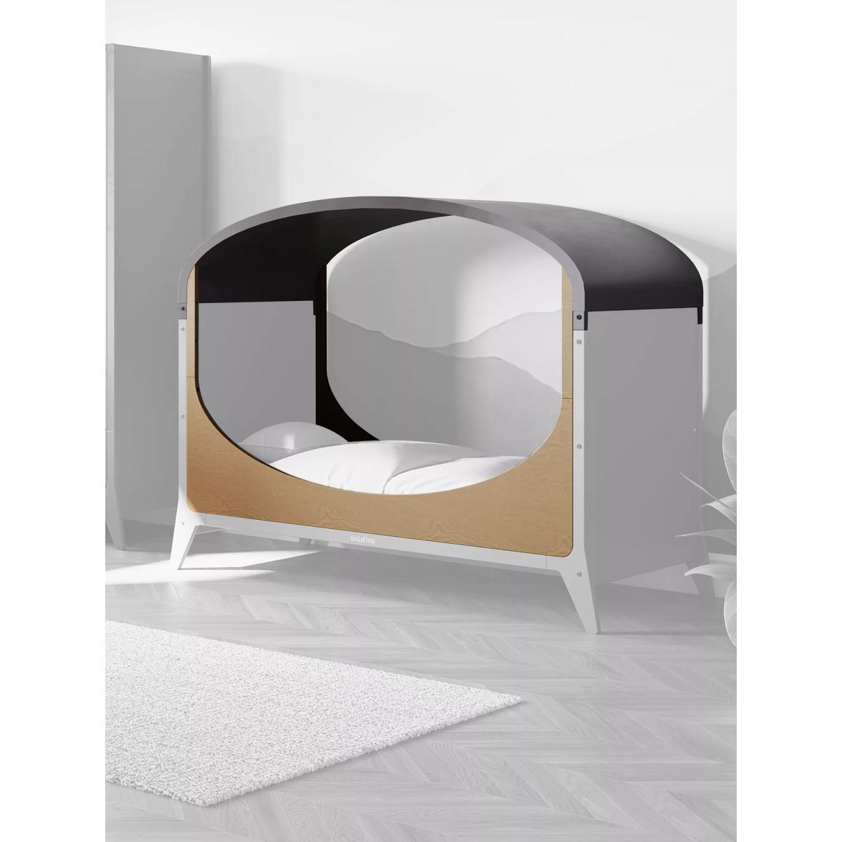 Convert the Snuz Fino Cot Bed (sold separately) into your little one's very first bed with the Snuz Fino Toddler Kit. The kit adds a unique arched canopy and toddler rails for extra security as they sleep. Key Features: Converts your Snuz Fino into a toddler bed, extending the life of the cot from 18 months to 4 years Includes safety rails and material canopy Perfect match with your Snuz Fino Cot Bed (sold separately) Safety warning: Do not leave anything in the cot or place the cot close to another product which could provide a foothold or present a danger of suffocation or strangulation, e.g. strings, blind/curtain cords, etc. To prevent the child’s neck from being caught, do NOT use or assemble the wooden arches and material canopy when in cot mode, and when the cot side panels are fitted. Do not suspend objects from the wooden arches when this product is used as a child’s bed. Items with cords; light chains, bunting or other decorative cords may pose risk of entanglement or strangulation. To avoid risk of injury from falls, never allow children to climb, hang or swing from the wooden arches of the cot bed.
