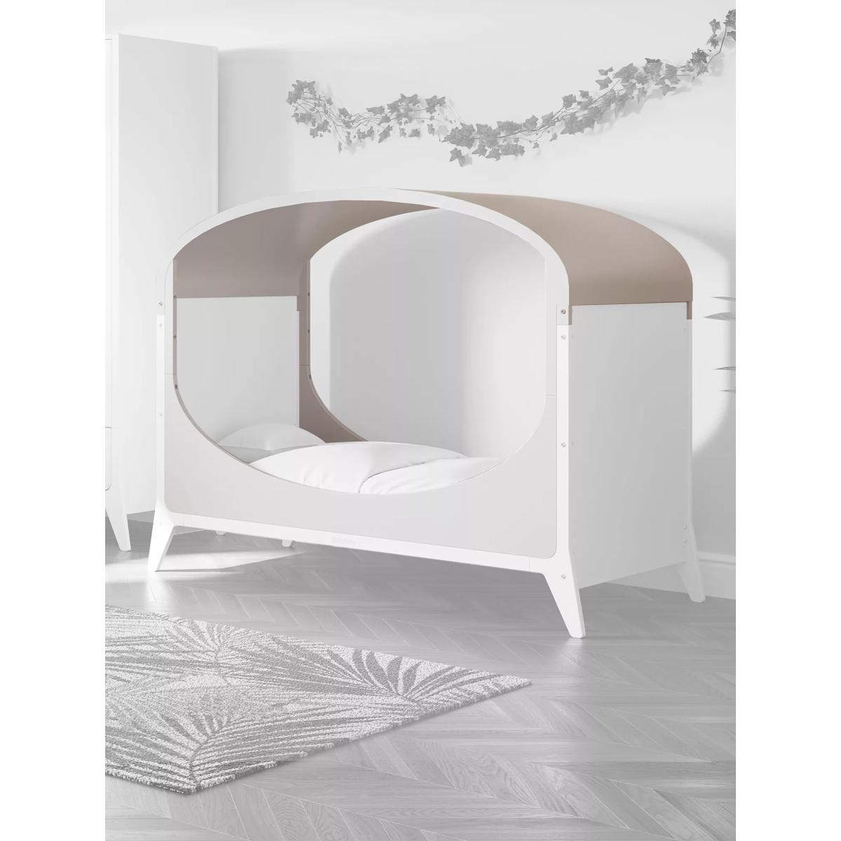 Convert the Snuz Fino Cot Bed (sold separately) into your little one's very first bed with the Snuz Fino Toddler Kit. The kit adds a unique arched canopy and toddler rails for extra security as they sleep. Key Features: Converts your Snuz Fino into a toddler bed, extending the life of the cot from 18 months to 4 years Includes safety rails and material canopy Perfect match with your Snuz Fino Cot Bed (sold separately) Safety warning: Do not leave anything in the cot or place the cot close to another product which could provide a foothold or present a danger of suffocation or strangulation, e.g. strings, blind/curtain cords, etc. To prevent the child’s neck from being caught, do NOT use or assemble the wooden arches and material canopy when in cot mode, and when the cot side panels are fitted. Do not suspend objects from the wooden arches when this product is used as a child’s bed. Items with cords; light chains, bunting or other decorative cords may pose risk of entanglement or strangulation. To avoid risk of injury from falls, never allow children to climb, hang or swing from the wooden arches of the cot bed.