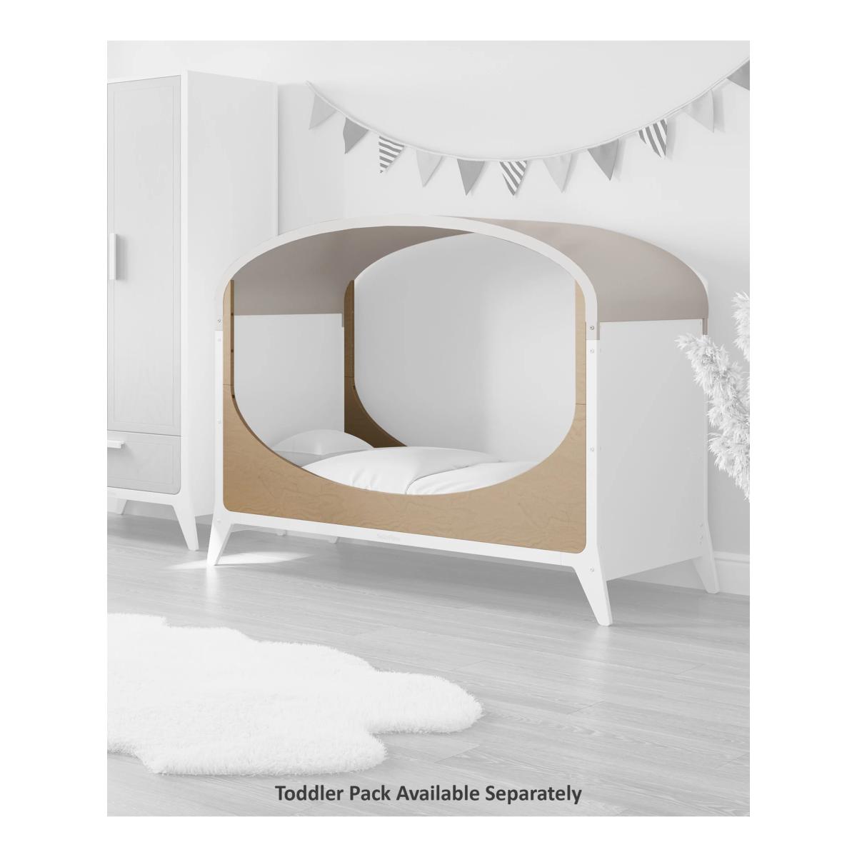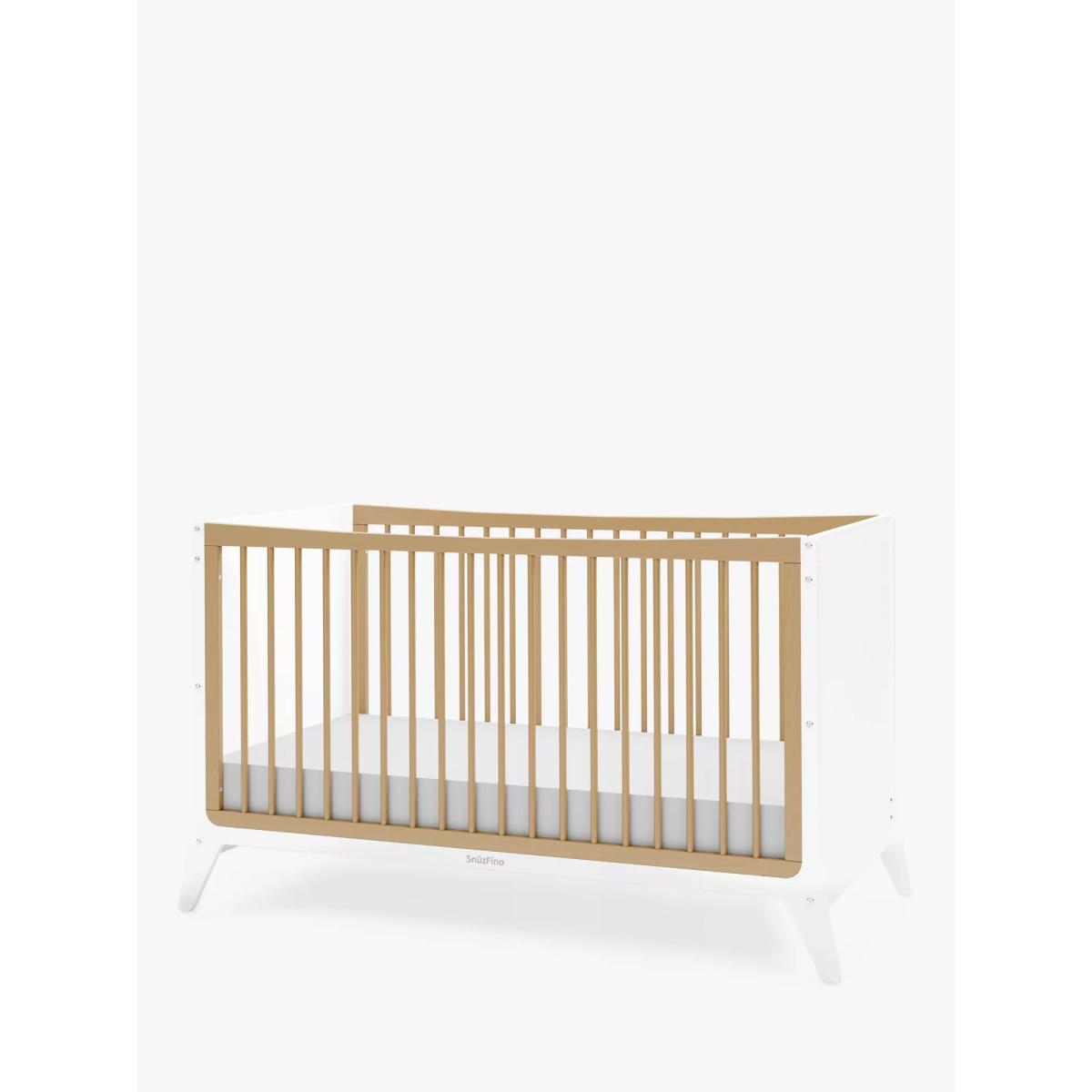 Discover true contemporary style with the Snuz Fino Cot Bed. The Snuz Fino Cot Bed features two mattress heights and can easily convert into a toddler bed for use up to 4 years of age, with a unique arched canopy and toddler rails for extra security as they sleep (toddler kit sold separately). Key Features: Minimal and understated in true contemporary style Suitable from birth to 18 months (or 4 years with toddler kit sold separately) Can convert to toddler bed Compatible with the Snuz Surface Mattress, 70 x 140cm (sold separately) Coordinates with the Snuz Fino Changing Unit and Wardrobe Meets safety standards BS EN 716-1:2017 and AS/NZS 2172:2003. Toddler Mode: This bed conforms to BS 8509:2008+A1:2011 Safety warning: Do not leave anything in the cot or place the cot close to another product which could provide a foothold or present a danger of suffocation or strangulation, e.g. strings, blind/curtain cords, etc.