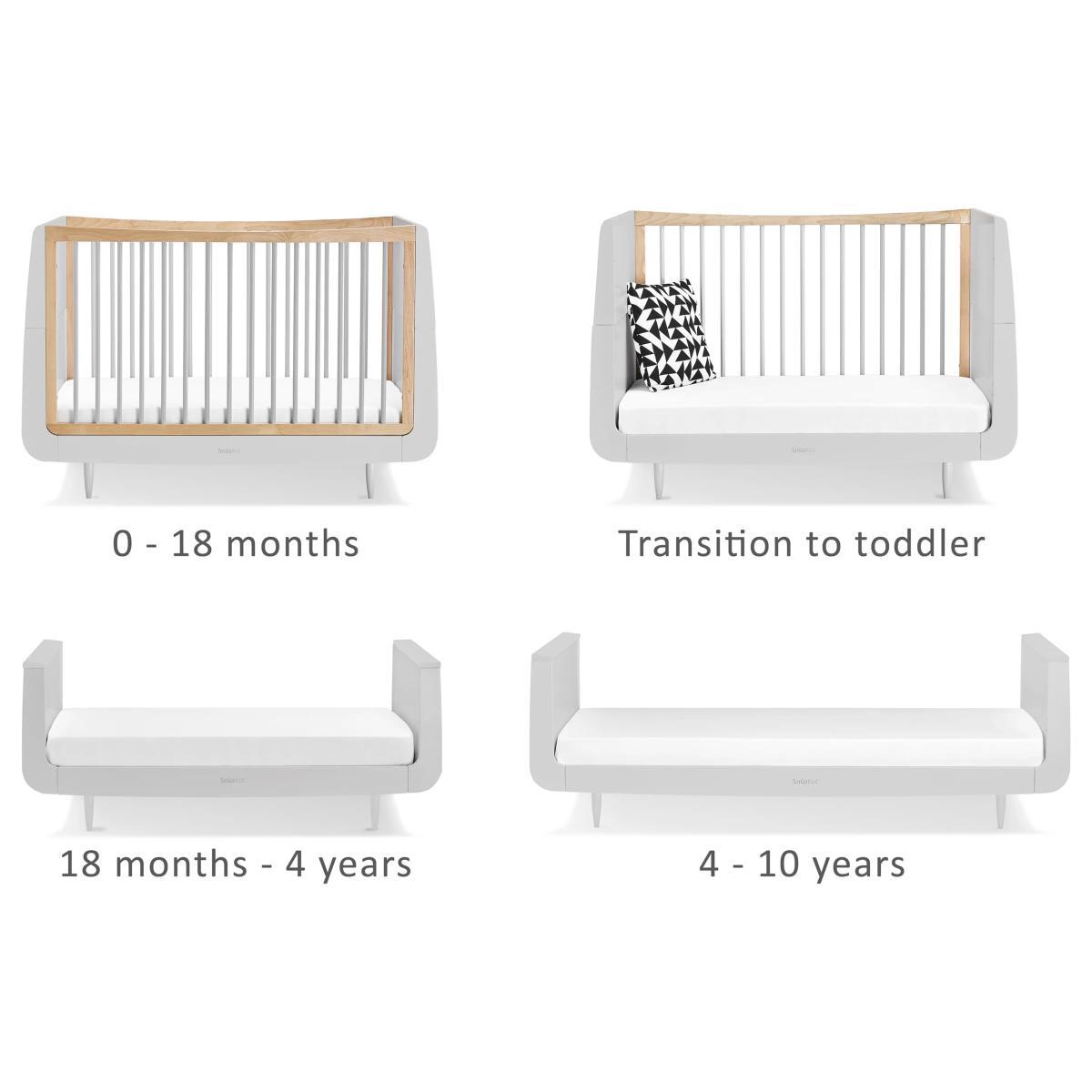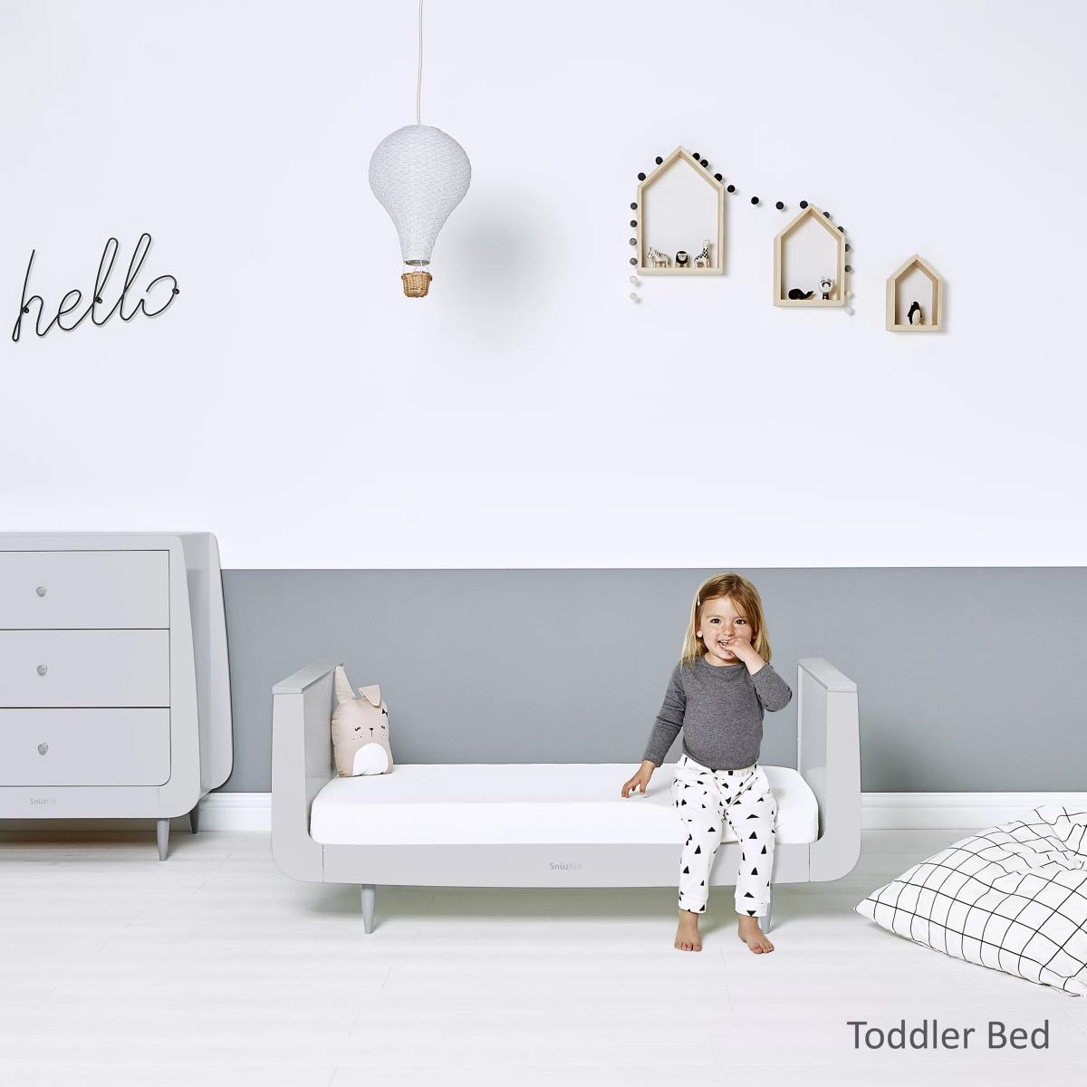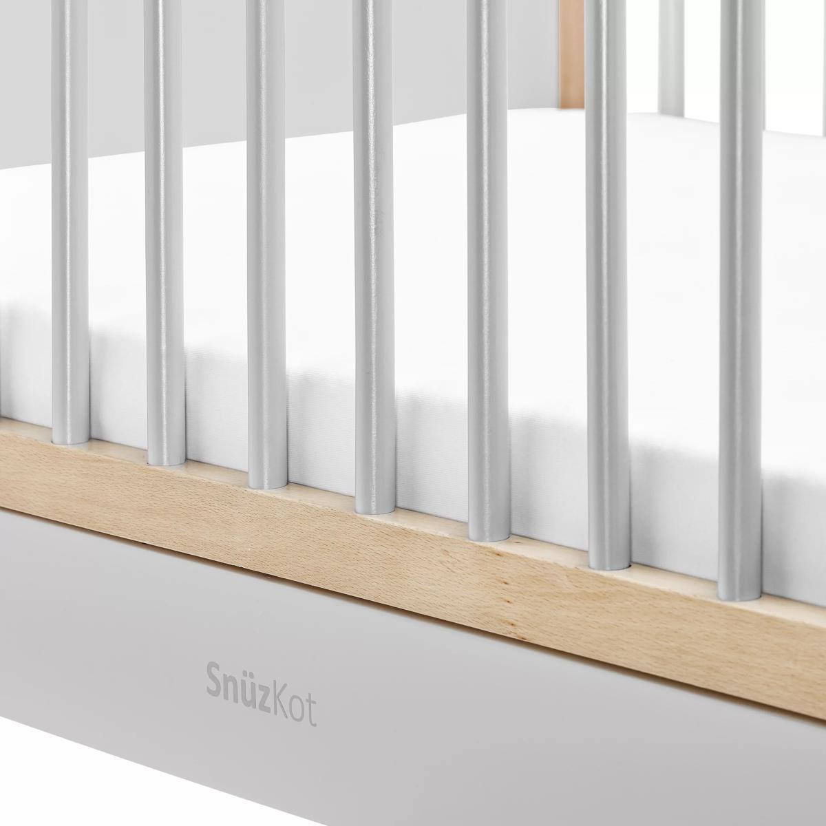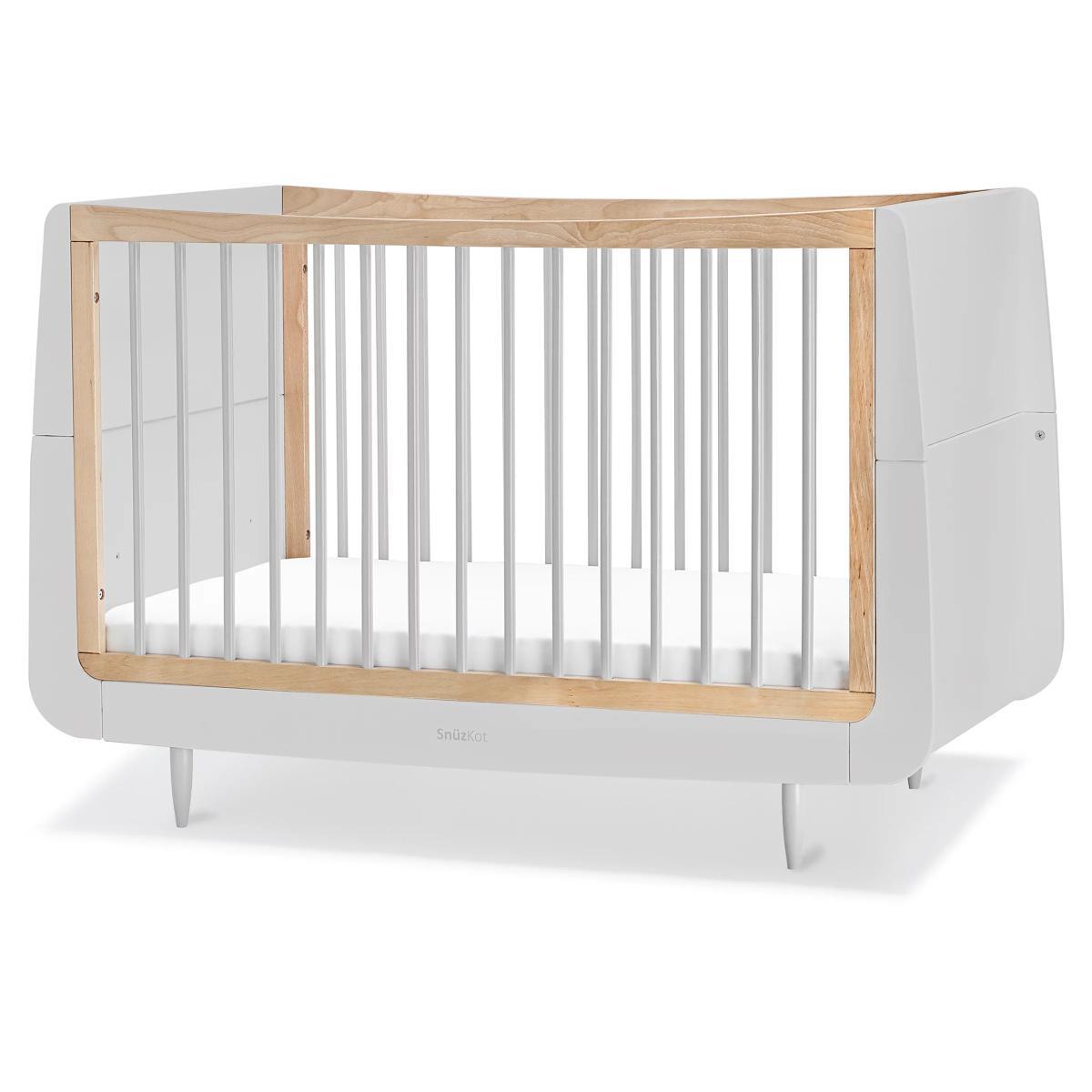 Create and customise your nursery with this beautiful Skandi Cotbed and Changing Unit from Snüz. Kot. It grows with your child from birth to approximately 4 years, and when used with the extension kit (sold separately), your child will have a comfy and cosy place to sleep until they're 10 years old. There are three mattress height settings for ease of access, and a low level bed which will help your toddler when getting in and out. Designed to last, every Snuz Kot is made using natural beech wood, without the use of MDF or veneer. The highest mattress position makes it easy to lift your newborn baby in and out, and as they grow and learn to sit and stand, the base can be lowered to help prevent them climbing out. The matching Skandi Changing Unit features three spacious drawers and a useful changing area with a removable frame, ideal for when baby becomes a toddler and they need a standalone dresser. Please note: The cot bed and changing unit comes flat packed in 8 boxes. Self-assembly required.