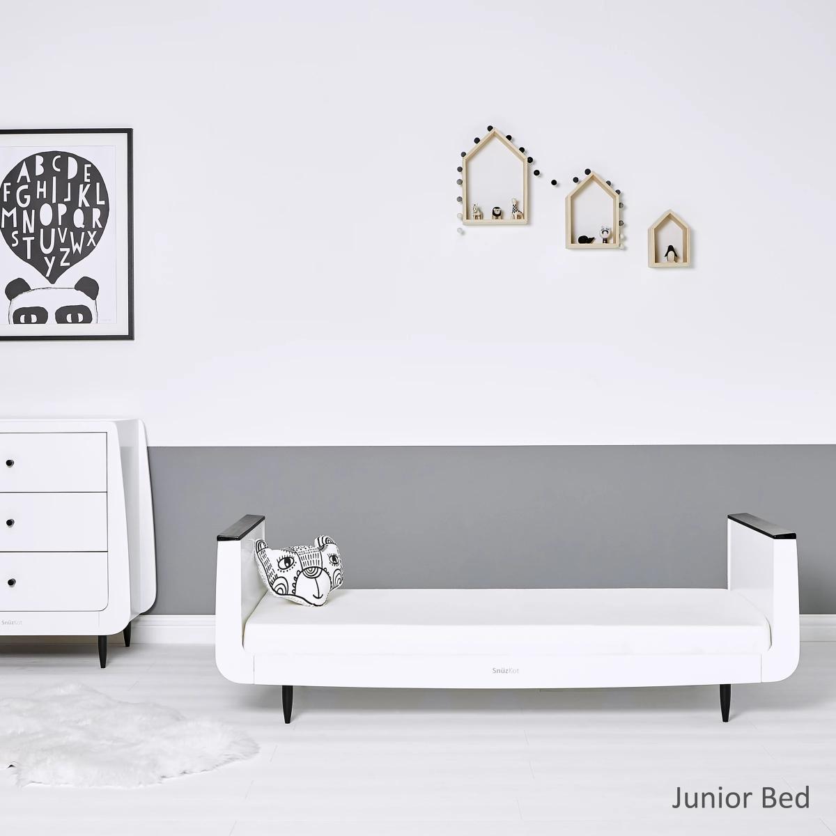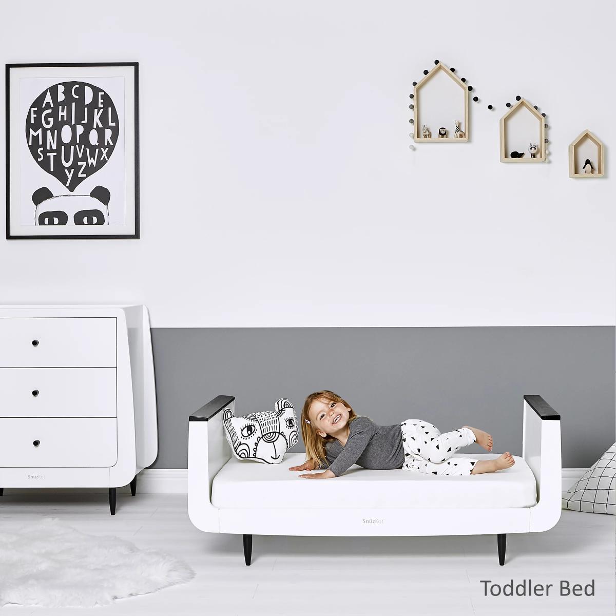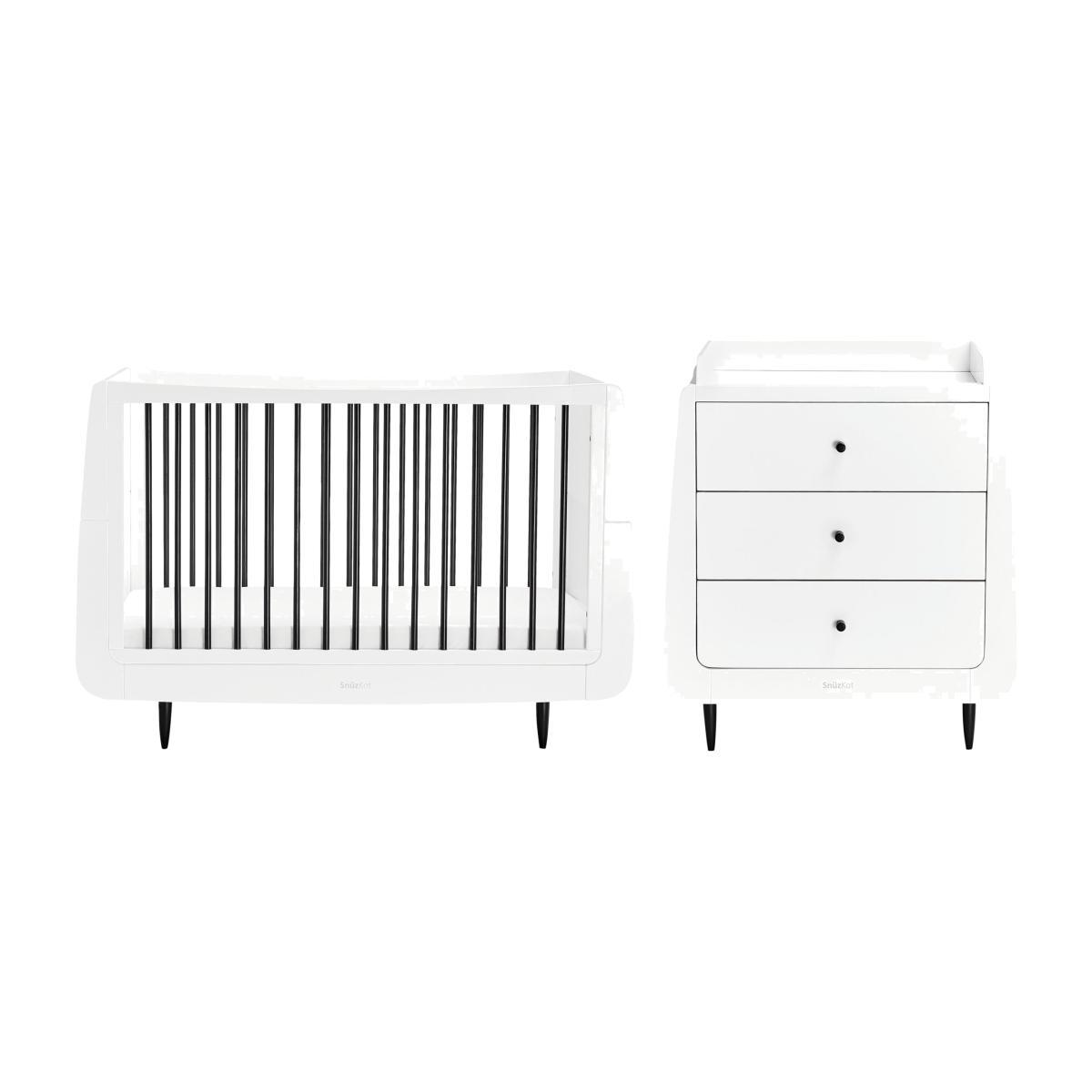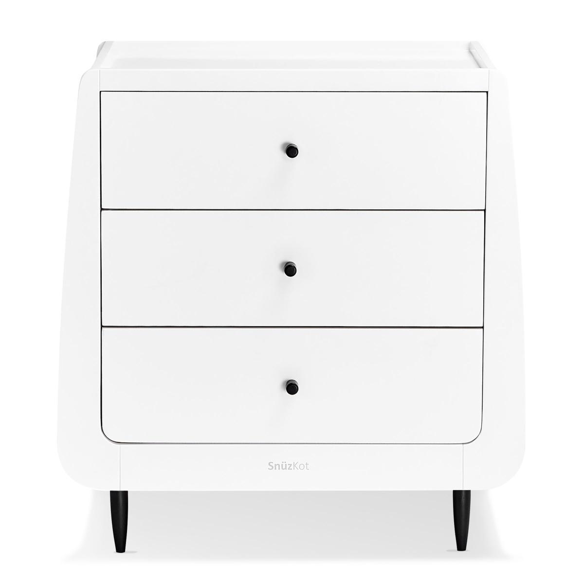 Create and customise your nursery with this beautiful Skandi Cotbed and Changing Unit from Snüz. Kot. It grows with your child from birth to approximately 4 years, and when used with the extension kit (sold separately), your child will have a comfy and cosy place to sleep until they're 10 years old. There are three mattress height settings for ease of access, and a low level bed which will help your toddler when getting in and out. Designed to last, every Snuz Kot is made using natural beech wood, without the use of MDF or veneer. The highest mattress position makes it easy to lift your newborn baby in and out, and as they grow and learn to sit and stand, the base can be lowered to help prevent them climbing out. The matching Skandi Changing Unit features three spacious drawers and a useful changing area with a removable frame, ideal for when baby becomes a toddler and they need a standalone dresser. Please note: The cot bed and changing unit comes flat packed in 8 boxes. Self-assembly required.