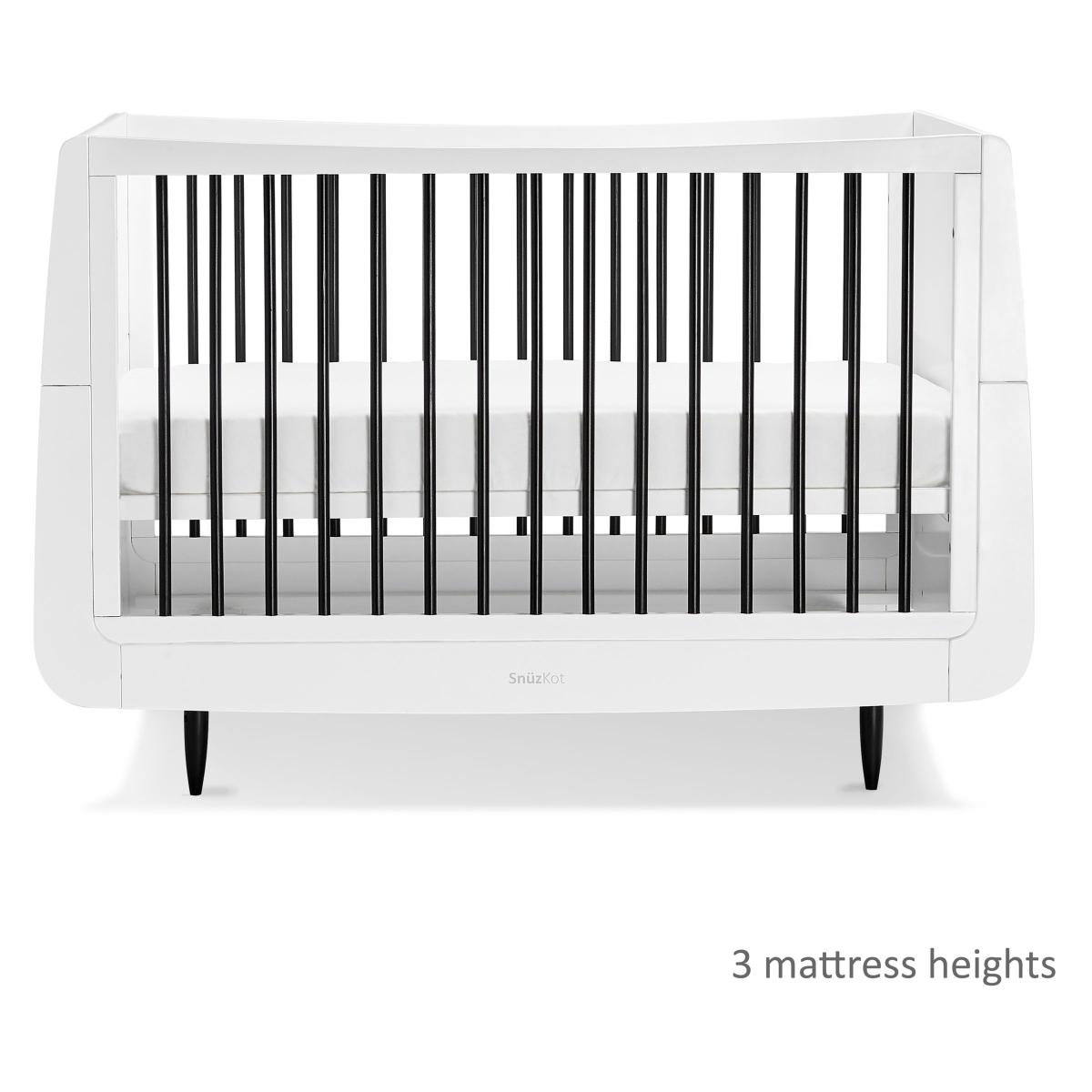 Create and customise your nursery with this beautiful Skandi Cotbed and Changing Unit from Snüz. Kot. It grows with your child from birth to approximately 4 years, and when used with the extension kit (sold separately), your child will have a comfy and cosy place to sleep until they're 10 years old. There are three mattress height settings for ease of access, and a low level bed which will help your toddler when getting in and out. Designed to last, every Snuz Kot is made using natural beech wood, without the use of MDF or veneer. The highest mattress position makes it easy to lift your newborn baby in and out, and as they grow and learn to sit and stand, the base can be lowered to help prevent them climbing out. The matching Skandi Changing Unit features three spacious drawers and a useful changing area with a removable frame, ideal for when baby becomes a toddler and they need a standalone dresser. Please note: The cot bed and changing unit comes flat packed in 8 boxes. Self-assembly required.