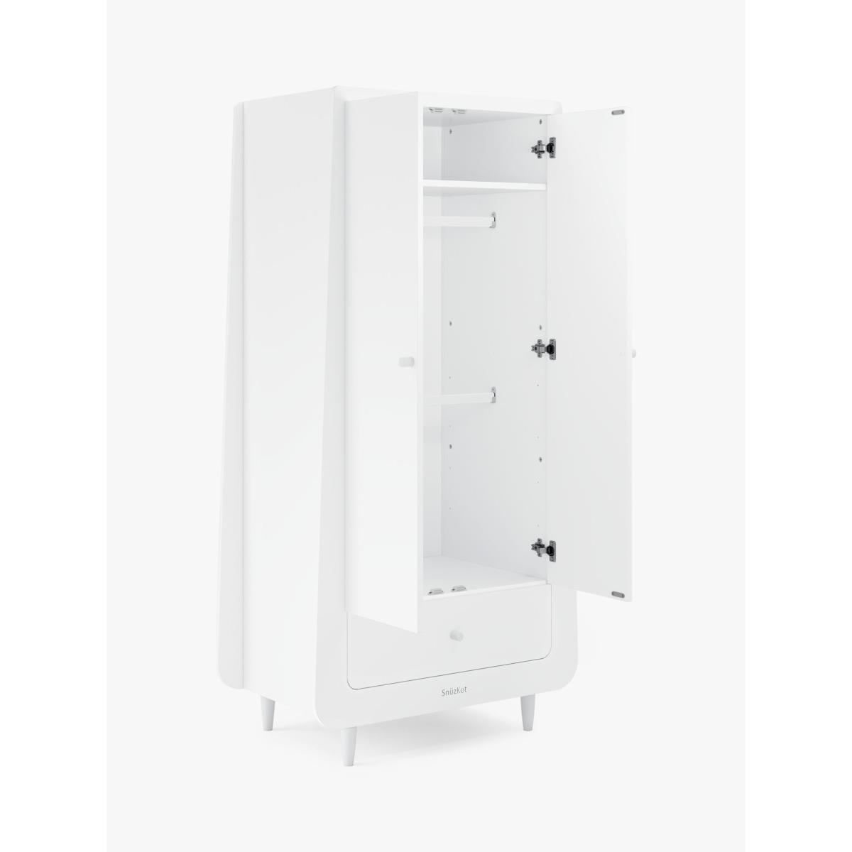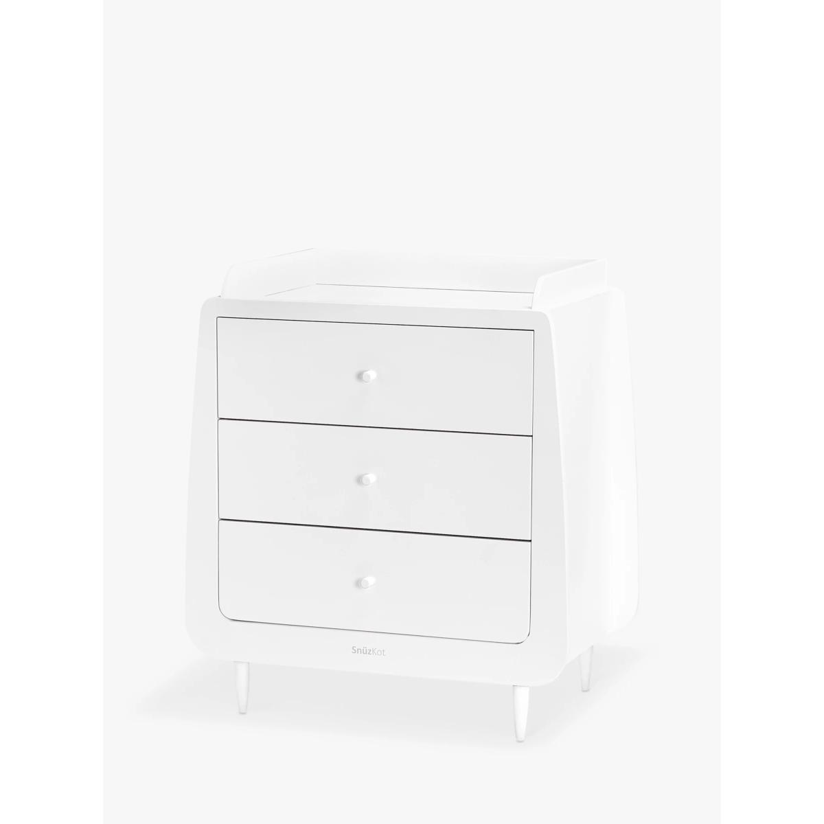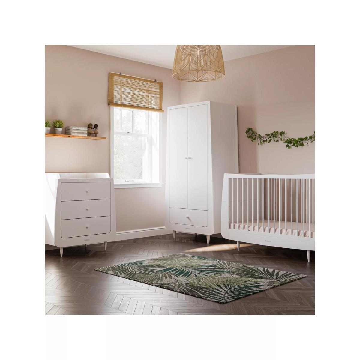 Create and customise your nursery with this beautiful Skandi Cotbed, Wardrobe and Changing Unit from Snüz. Kot. It grows with your child from birth to approximately 4 years, and when used with the extension kit (sold separately), your child will have a comfy and cosy place to sleep until they're 10 years old. There are three mattress height settings for ease of access, and a low level bed that will help your toddler when getting in and out. Designed to last, every Snuz Kot is made using natural beech wood, without the use of MDF or veneer. The highest mattress position makes it easy to lift your newborn baby in and out, and as they grow and learn to sit and stand, the base can be lowered to help prevent them from climbing out. Cot: Converts to toddler and junior bed From birth to 10 years (with extension kit sold separetely) Requires Snuz Surface Snuz Kot Mattress The matching Skandi Changing Unit features three spacious drawers and a useful changing area with a removable frame, ideal for when baby becomes a toddler and they need a standalone dresser. Changing Unit: 3 spacious drawers Removable changing frame Converts into standalone dresser Changing mat sold separately The Snuz Kot Skandi Wardrobe is perfect for all your little one's storage needs. Modern and minimal, the Snuz Kot Skandi Wardrobe boasts a spacious interior and features adjustable shelving and rails plus a large drawer perfect for bedding or essentials. Key Features: 2 adjustable hanging rails and 1 adjustable shelf (user-configuration dependent) 1 large lower drawer, perfect for bedding or essentials Soft-close drawer and doors Please note: The is set comes flat packed in 12 boxes. Self-assembly required by a competent adult.