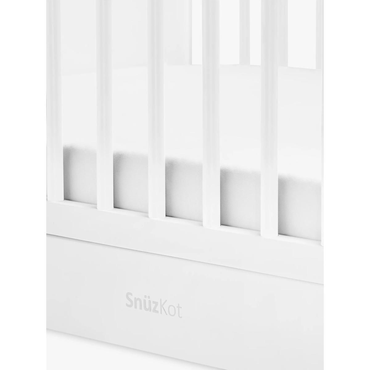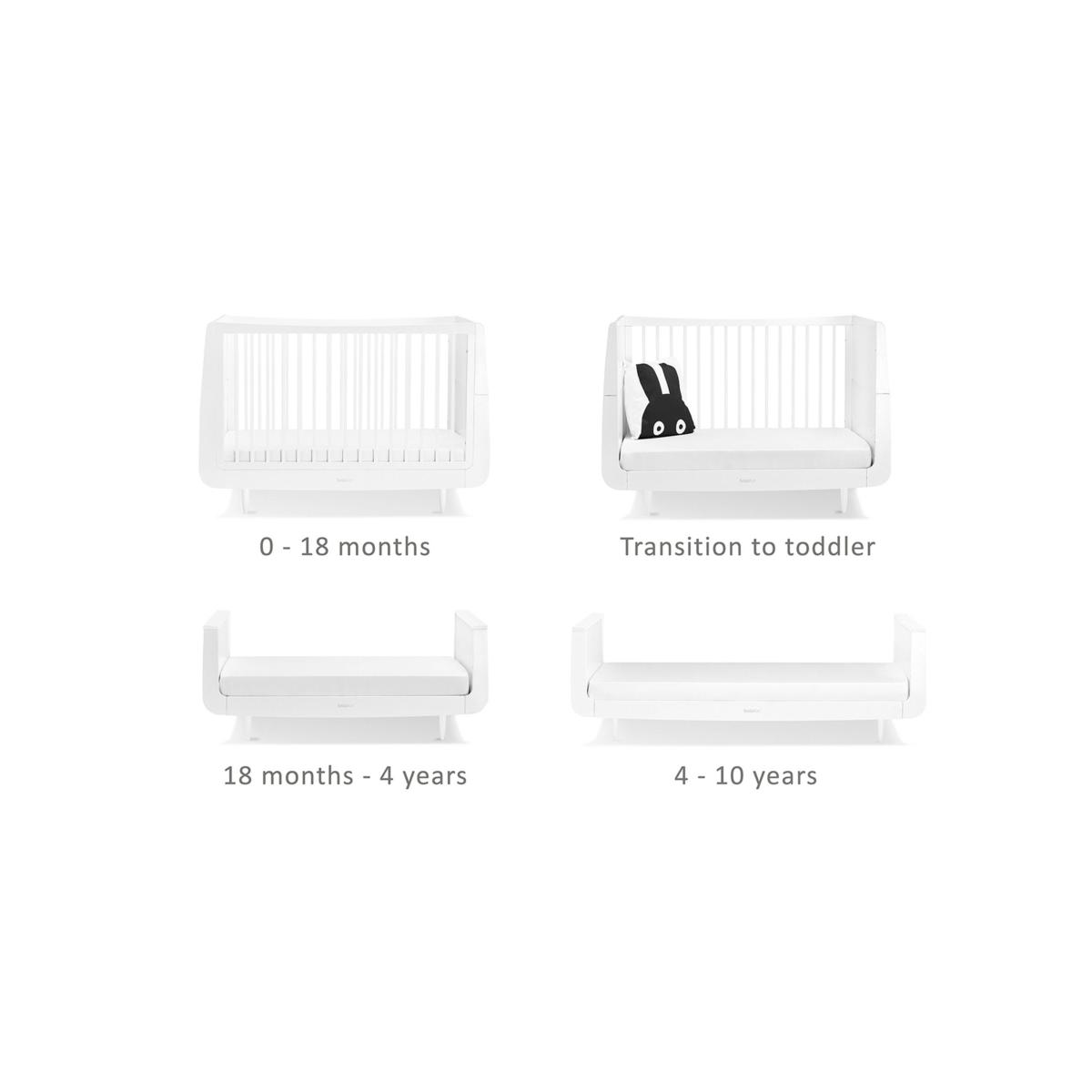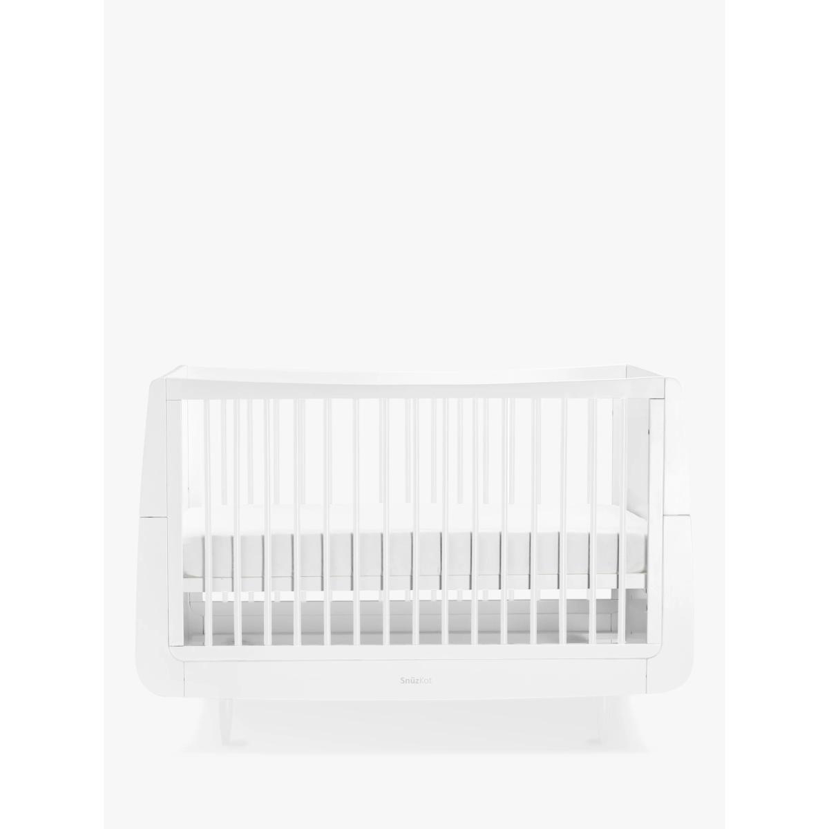 Create and customise your nursery with this beautiful Skandi Cotbed, Wardrobe and Changing Unit from Snüz. Kot. It grows with your child from birth to approximately 4 years, and when used with the extension kit (sold separately), your child will have a comfy and cosy place to sleep until they're 10 years old. There are three mattress height settings for ease of access, and a low level bed that will help your toddler when getting in and out. Designed to last, every Snuz Kot is made using natural beech wood, without the use of MDF or veneer. The highest mattress position makes it easy to lift your newborn baby in and out, and as they grow and learn to sit and stand, the base can be lowered to help prevent them from climbing out. Cot: Converts to toddler and junior bed From birth to 10 years (with extension kit sold separetely) Requires Snuz Surface Snuz Kot Mattress The matching Skandi Changing Unit features three spacious drawers and a useful changing area with a removable frame, ideal for when baby becomes a toddler and they need a standalone dresser. Changing Unit: 3 spacious drawers Removable changing frame Converts into standalone dresser Changing mat sold separately The Snuz Kot Skandi Wardrobe is perfect for all your little one's storage needs. Modern and minimal, the Snuz Kot Skandi Wardrobe boasts a spacious interior and features adjustable shelving and rails plus a large drawer perfect for bedding or essentials. Key Features: 2 adjustable hanging rails and 1 adjustable shelf (user-configuration dependent) 1 large lower drawer, perfect for bedding or essentials Soft-close drawer and doors Please note: The is set comes flat packed in 12 boxes. Self-assembly required by a competent adult.