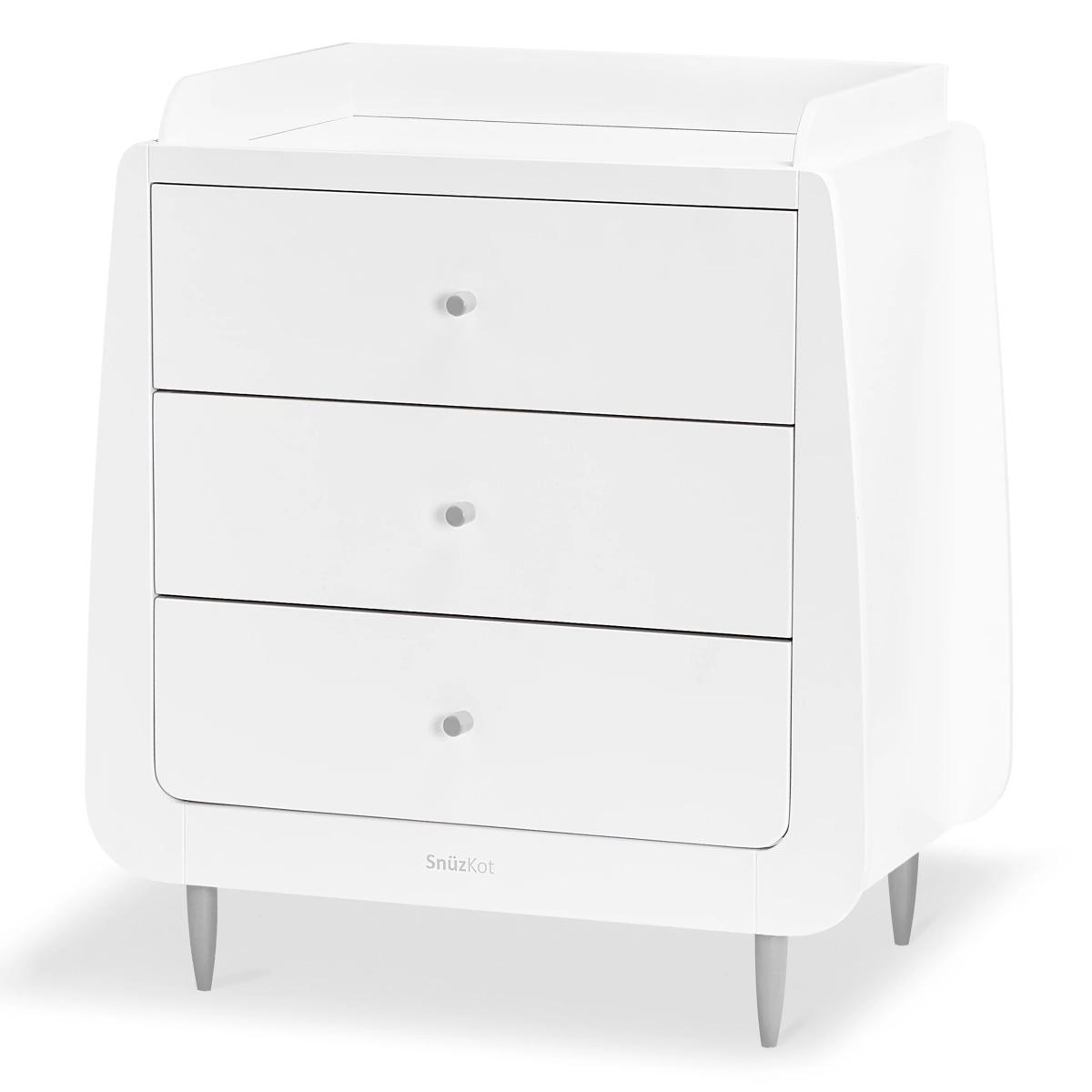 The Snüz Kot Skandi Changing Unit and Dresser co-ordinates perfectly with the Snüz Kot Skandi Cot Bed Collection to create a contemporary, stylish and practical nursery, with a variety of colours and styles to choose from, denoted in the feet and drawer handles. Effortlessly versatile and efficient, it features three spacious drawers and a useful changing area on the top. The frame of the changing area is removable to change it into a dresser in just one move, ideal for when baby becomes a toddler and they need a standalone dresser and perfect for keeping up with the busy pace of parenting life. Main features: Designed to last, every Snüz Kot dresser is made using natural beech wood, without the use of MDF or veneer Matching feet and drawer handles Co-ordinates with the Snuz Kot Skandi cot bed 3 spacious drawers Removable changing frame Converts into standalone dresser Changing unit includes anti-tip straps Suitable for babies up to 12 months or 11 kg The changing unit comes flat packed in 4 boxes and requires self-assembly Please note: Only use the changing pad designed specifically for this product (sold separately). Please note: The changing unit must be fixed to the wall, with the kit provided, for safe use of the product and to avoid tipping.