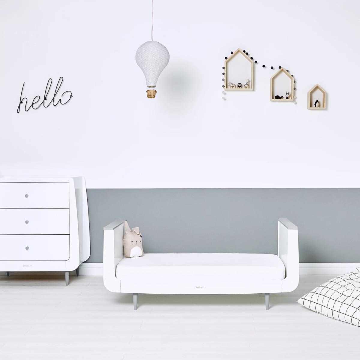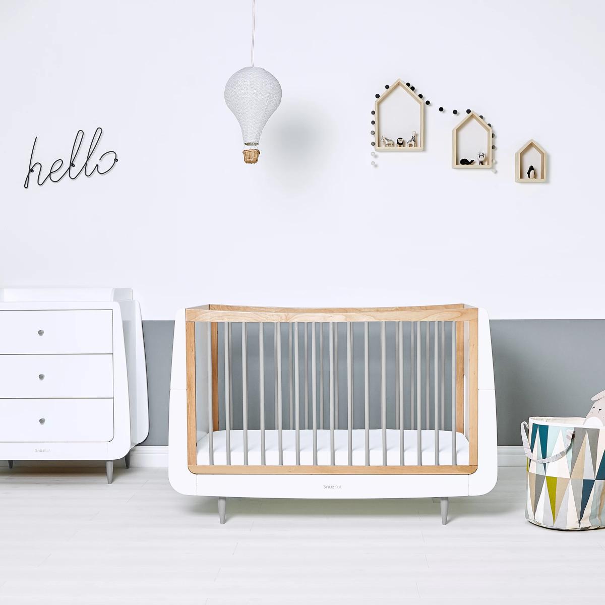Create a nursery unique to you with the Snüz Kot cotbed. It grows with your child from birth, providing a comfortable and cosy environment as a cot, then converting to a stylish toddler bed for use up to four years old. When extended to a Junior bed, your child can keep the bed they love for up to ten years, lasting longer than a standard cot bed. To do this, you'll need to purchase the extension kit and the extension mattress separately. Why not mix and match with the changing units, dressers and bedding in the Snuz range to create your bespoke nursery style? Main features: Modern and minimal in true Scandinavian style Converts from cot to toddler bed Three mattress base height settings Compact and cosy design for every nursery size Solid beech frame and stainless steel fixings No MDF or veneers Mattress size required: 68 x 117cm. The Snuzkot mattress fits this cotbed perfectly (sold separately)