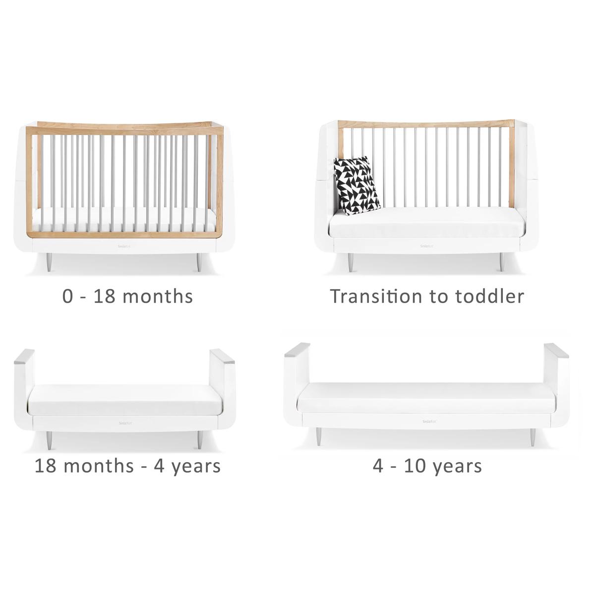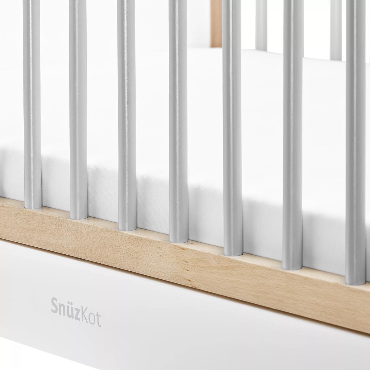 Create a nursery unique to you with the Snüz Kot cotbed. It grows with your child from birth, providing a comfortable and cosy environment as a cot, then converting to a stylish toddler bed for use up to four years old. When extended to a Junior bed, your child can keep the bed they love for up to ten years, lasting longer than a standard cot bed. To do this, you'll need to purchase the extension kit and the extension mattress separately. Why not mix and match with the changing units, dressers and bedding in the Snuz range to create your bespoke nursery style? Main features: Modern and minimal in true Scandinavian style Converts from cot to toddler bed Three mattress base height settings Compact and cosy design for every nursery size Solid beech frame and stainless steel fixings No MDF or veneers Mattress size required: 68 x 117cm. The Snuzkot mattress fits this cotbed perfectly (sold separately)