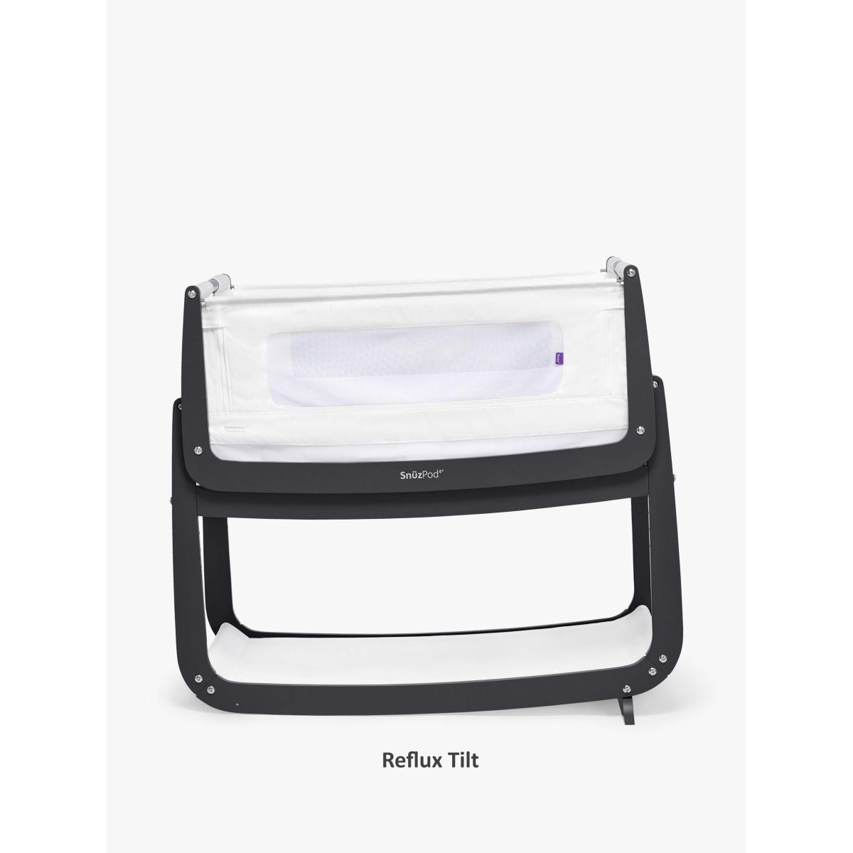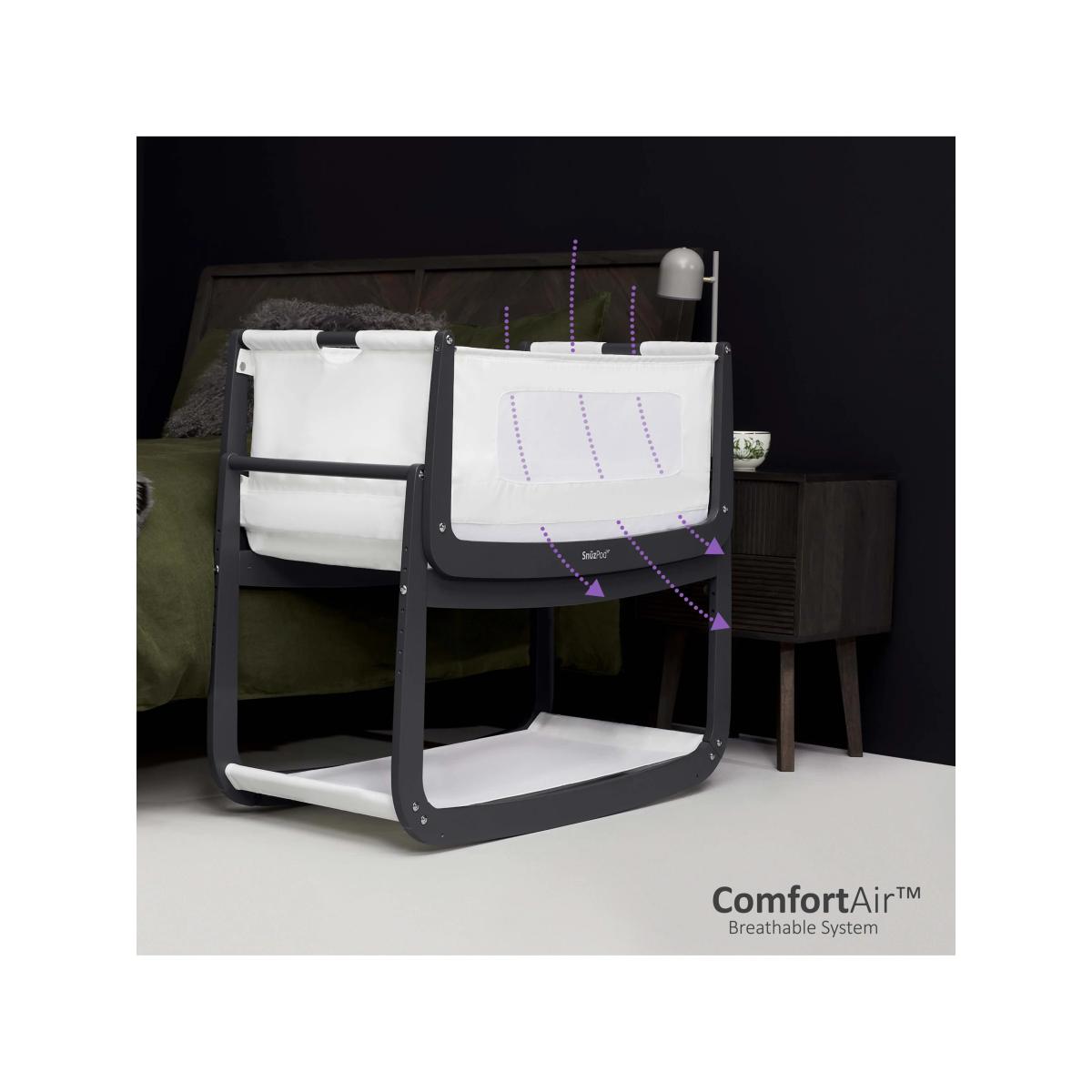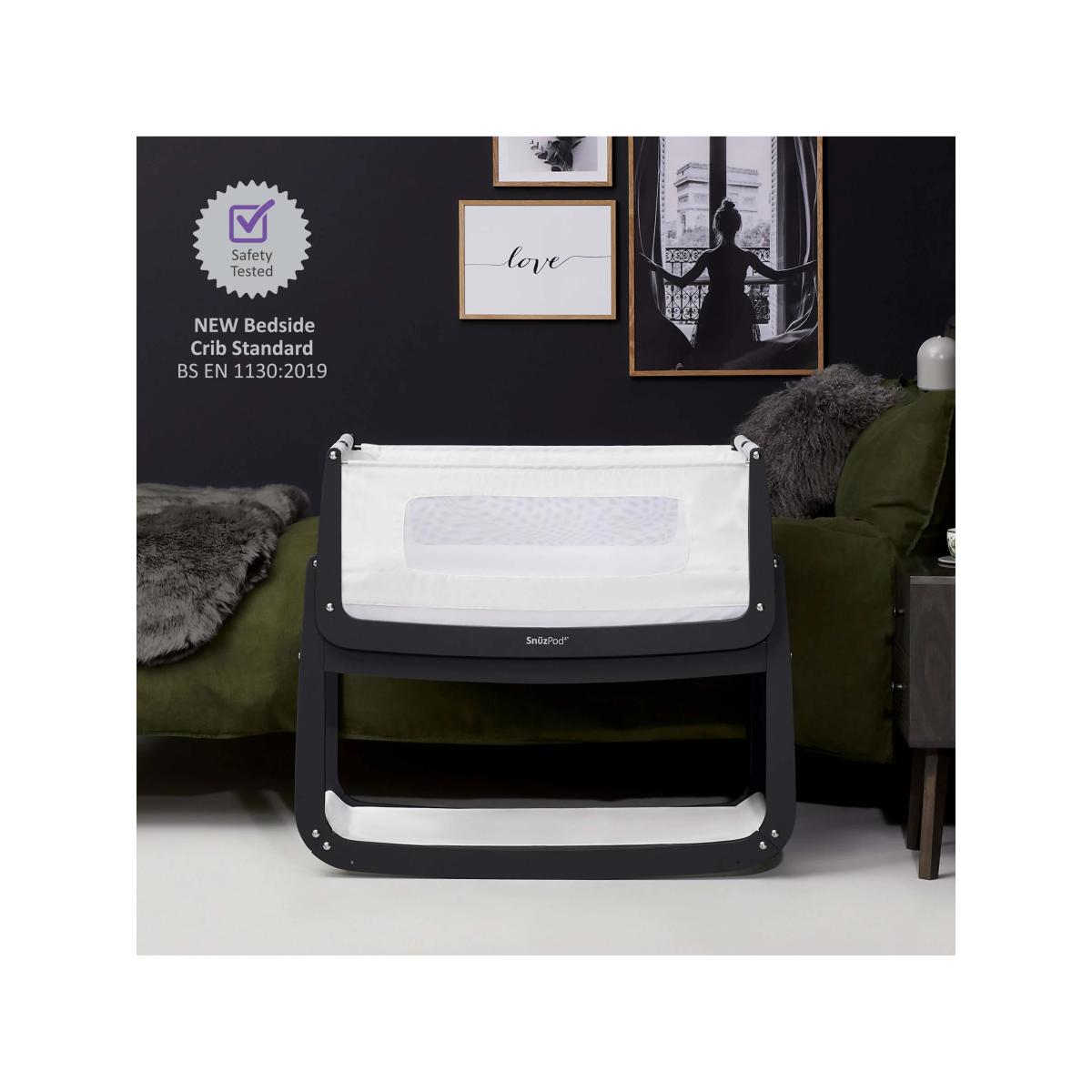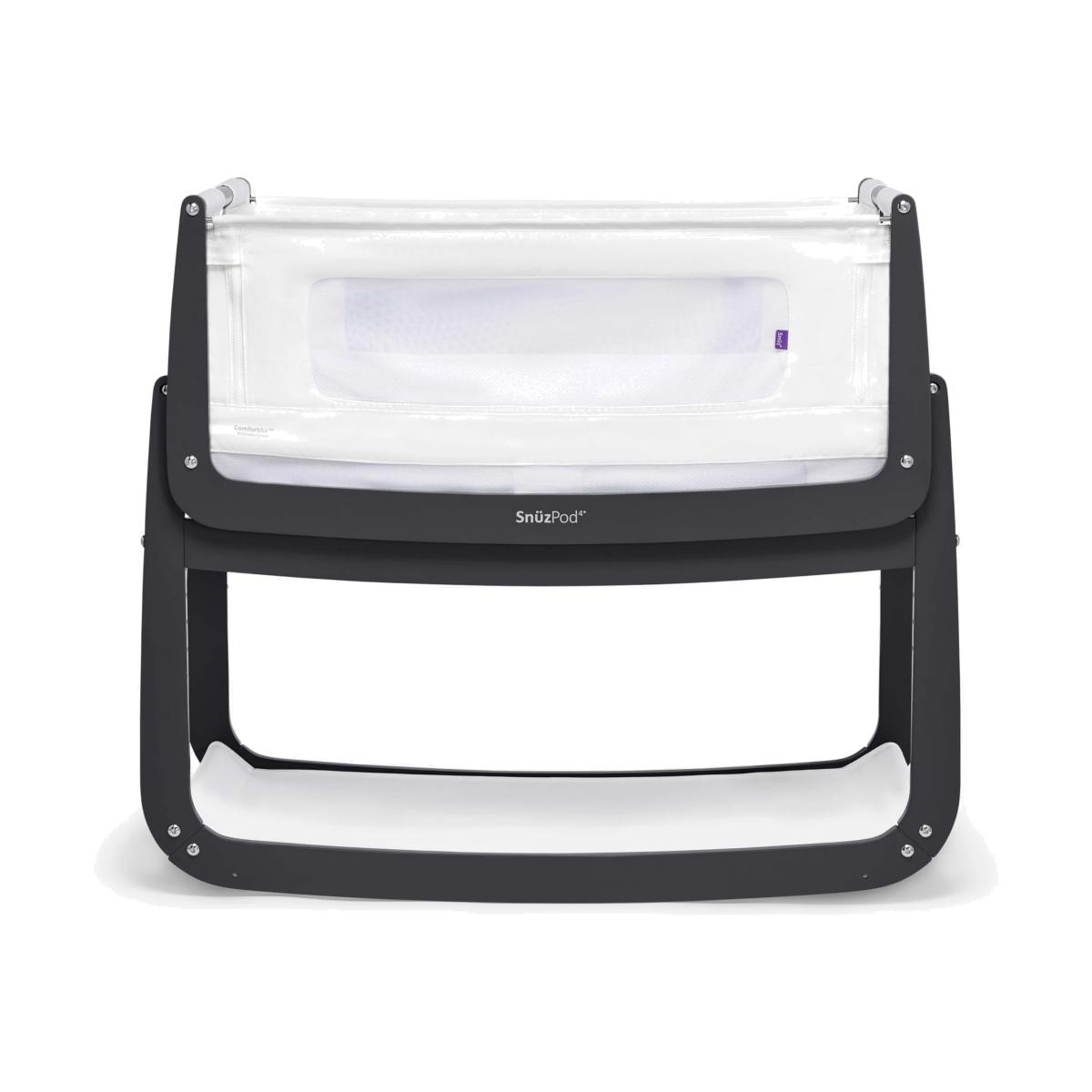 Sleep well, feed easily and be closer to your baby with the all-new SnuzPod. ⁴ Bedside Crib. Now even more breathable thanks to its innovative NEW Comfort Air system, with unique air-flow vents, machine-washable mesh liner, and improved base ventilation that help to regulate your baby's temperature for a good night’s sleep. The SnuzPod. ⁴ also boasts a lightweight removable bassinet and new breathable mattress with a 3D mesh cover for all round better support. Key features: Sleep well, feed easily and be closer to your baby NEW Comfort Air breathable system to help regulate temperature for a good night's sleep Mattress level air-flow vents NEW 3D breathable mattress included NEW machine washable mesh liner NEW half-height zip-down wall Improved base ventilation Dual-view mesh windows Meets new bedside crib safety standard BS EN 1130:2019 Gentle reflux incline option Rocking stand Lightweight lift-off bassinet for use around the home Benefits of Bedside Cribs: Safe alternative to co-sleeping Comfort, feed and bond, being close to your baby Ease of breastfeeding No need to leave your bed during the night Ideal for C-section mums Allows you to keep baby in your room for the first six months, as recommended by experts Safety information: Maximum recommended weight of child 9kg Suitable from birth to 6 months, or until baby can sit up, kneel or pull themselves up unaided