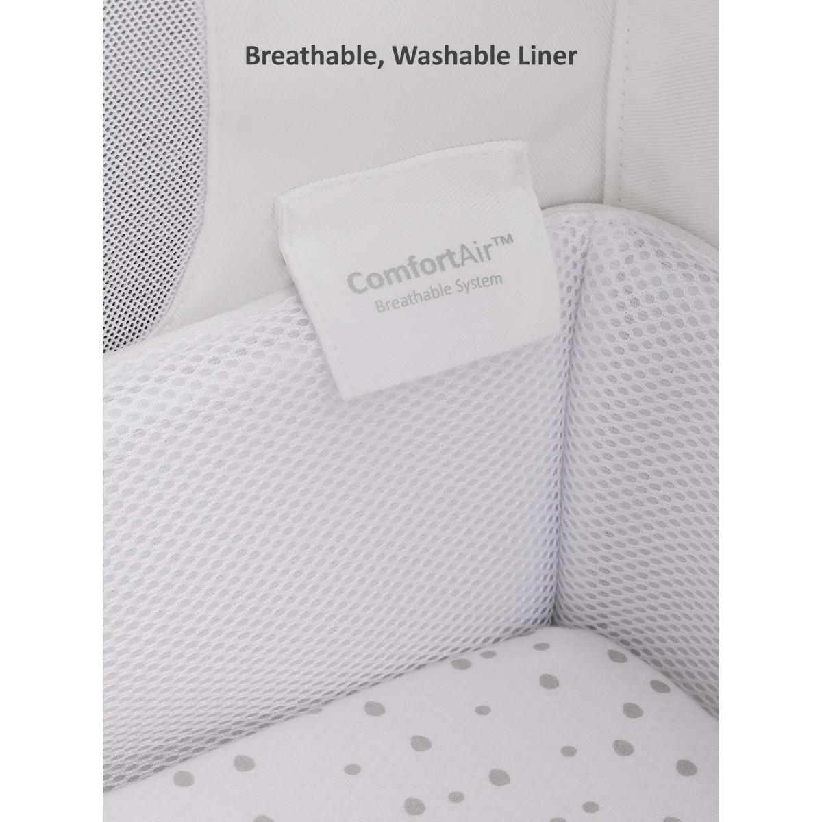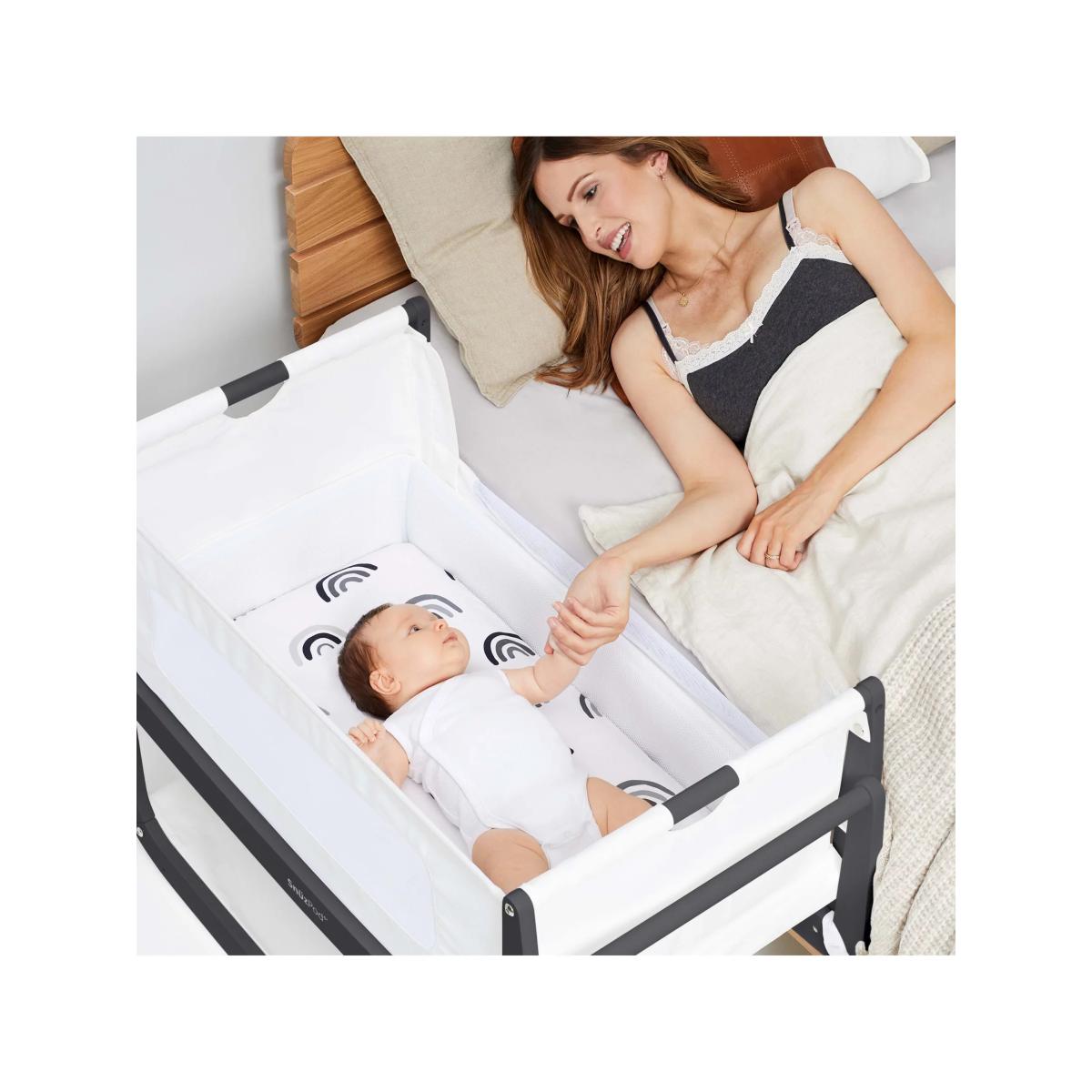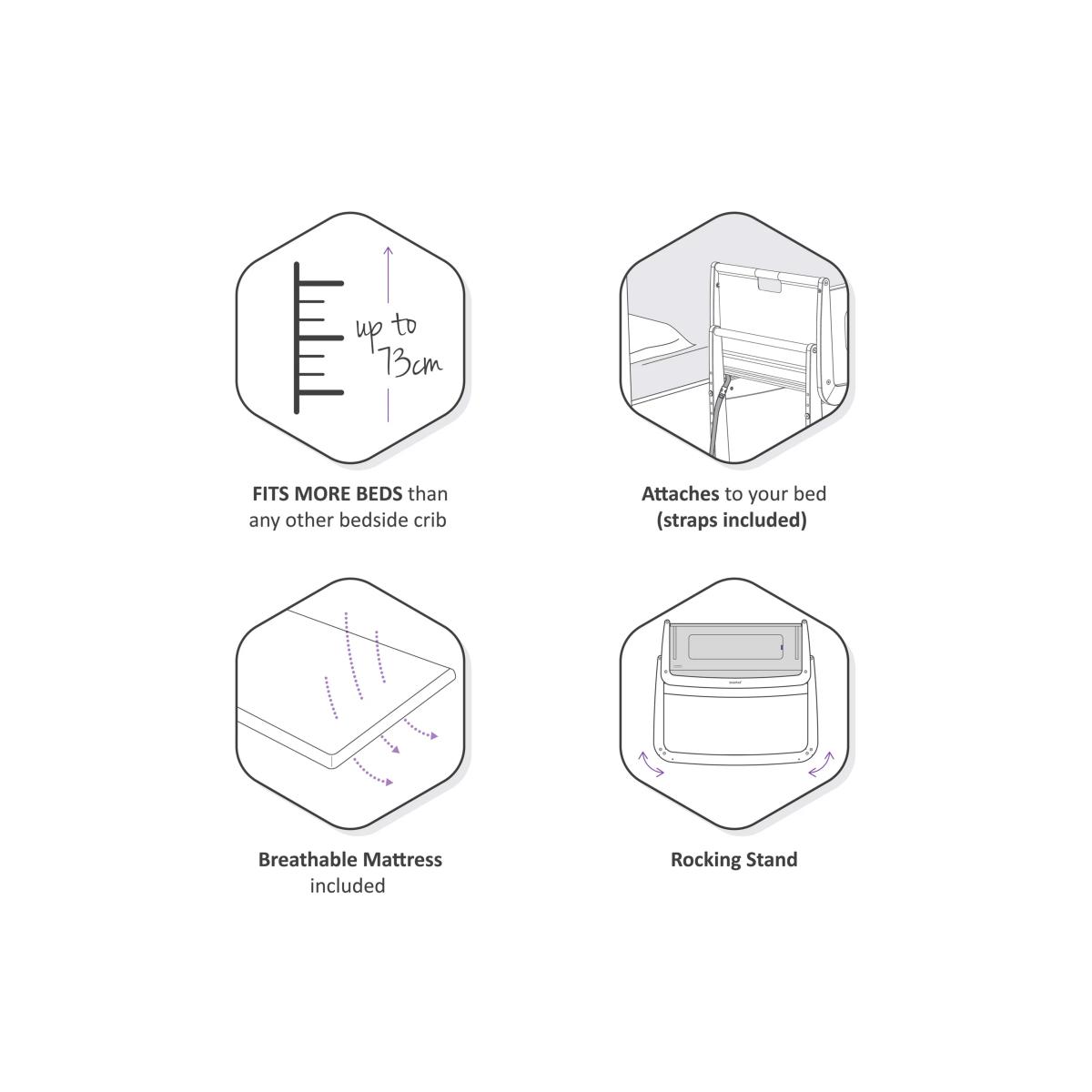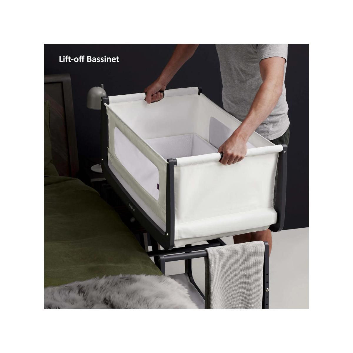Sleep well, feed easily and be closer to your baby with the all-new SnuzPod. ⁴ Bedside Crib. Now even more breathable thanks to its innovative NEW Comfort Air system, with unique air-flow vents, machine-washable mesh liner, and improved base ventilation that help to regulate your baby's temperature for a good night’s sleep. The SnuzPod. ⁴ also boasts a lightweight removable bassinet and new breathable mattress with a 3D mesh cover for all round better support. Key features: Sleep well, feed easily and be closer to your baby NEW Comfort Air breathable system to help regulate temperature for a good night's sleep Mattress level air-flow vents NEW 3D breathable mattress included NEW machine washable mesh liner NEW half-height zip-down wall Improved base ventilation Dual-view mesh windows Meets new bedside crib safety standard BS EN 1130:2019 Gentle reflux incline option Rocking stand Lightweight lift-off bassinet for use around the home Benefits of Bedside Cribs: Safe alternative to co-sleeping Comfort, feed and bond, being close to your baby Ease of breastfeeding No need to leave your bed during the night Ideal for C-section mums Allows you to keep baby in your room for the first six months, as recommended by experts Safety information: Maximum recommended weight of child 9kg Suitable from birth to 6 months, or until baby can sit up, kneel or pull themselves up unaided