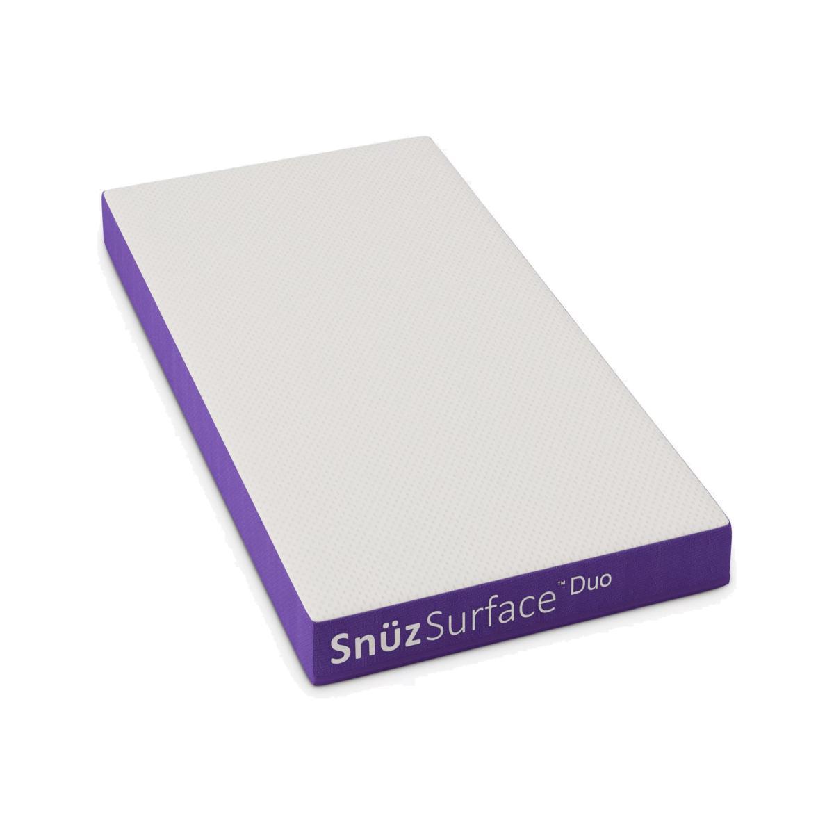 The Snuz Surface Duo cot mattress is made with your little one in mind. Boasting an innovative 3D breathable mesh cover with a waterproof layer, it's perfect for the potty training years. The Duo mattress features a pocket sprung core to provide baby with progressive support as they transition into toddlerhood. Key Features: Suitable for baby to toddler aged 0-4 years 3D breathable surface Removable, machine washable cover Waterproof surface Anti-dust mite barrier Pocket Sprung Dual-sided – two levels of firmness Vacuum-rolled 2-year guarantee Complies with BS EN 16890: 2017 Ensure that the internal dimensions of your furniture are no greater than: Snuz Kot – 620mm (width) x 1220mm (length). IMPORTANT: Open and unroll immediately. Allow to rest flat for 7 days. Always use the mattress with the mesh side facing up. The maximum gap between the mattress and the sides and ends of your furniture should not exceed 20mm. Do not use the mattress if any part is broken torn or missing and use only spare parts approved by the manufacturer. Do not use more than one mattress in the crib. Be aware of the risk of open fire and other sources of strong heat, such as electric bar fires, gas fires, etc. in the near vicinity of the cot / cot bed.