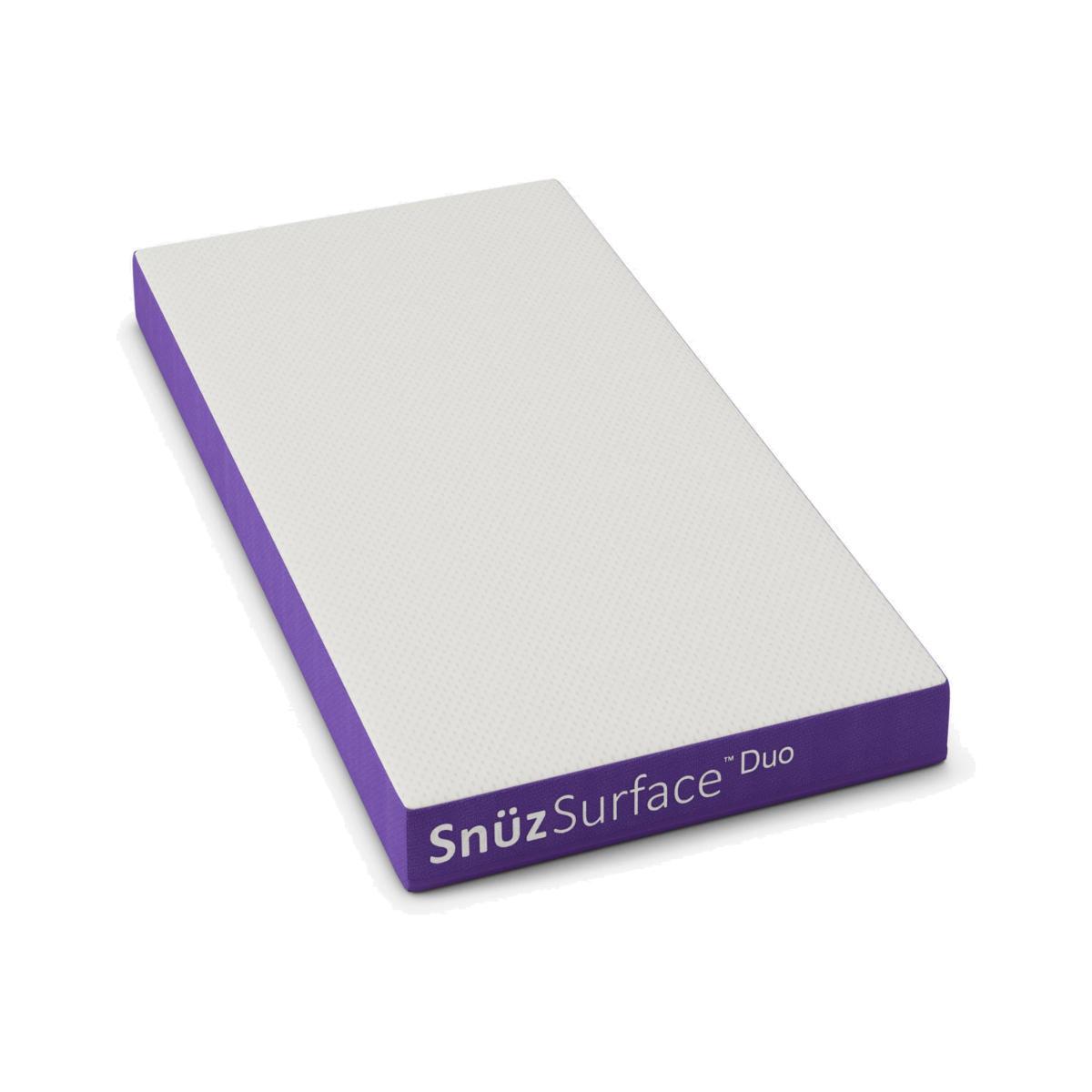 The Snuz Surface Duo cotbed mattress is made with your little one in mind. Boasting an innovative 3D breathable mesh cover with a waterproof layer, it's perfect for the potty training years. The Duo mattress features a pocket sprung core to provide baby with progressive support as they transition into toddlerhood. Key Features: Suitable for baby to toddler aged 0-4 years 3D breathable surface Removable, machine washable cover Waterproof surface Anti-dust mite barrier Pocket Sprung Dual-sided – two levels of firmness Vacuum-rolled 2-year guarantee Complies with BS EN 16890: 2017 Ensure that the internal dimensions of your furniture are no greater than: Snuz Kot – 700mm (width) x 1190mm (length). IMPORTANT: Open and unroll immediately. Allow to rest flat for 7 days. Always use the mattress with the mesh side facing up. The maximum gap between the mattress and the sides and ends of your furniture should not exceed 20mm. Do not use the mattress if any part is broken torn or missing and use only spare parts approved by the manufacturer. Do not use more than one mattress in the crib. Be aware of the risk of open fire and other sources of strong heat, such as electric bar fires, gas fires, etc. in the near vicinity of the cot / cot bed.