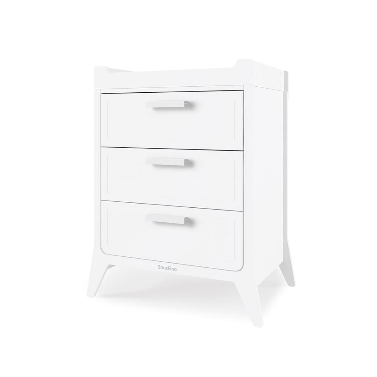 Available in a choice of coloured finishes, the Snuz Fino Changing Unit adapts to suit growing babies and tots! Starting out as a baby changing unit, it's the perfect spot for nappy changes and outfit adjustments. Store essentials in the spacious drawers below and with a handy soft close feature, there's no chance of waking the whole house during those late night cleanups! Once the changing table has been outgrown, simply remove the wooden top and continue using as a chest of drawers throughout their childhood. Designed to be paired with the coordinating Snuz Fino Cot Bed and two door wardrobe, create a stylish and cohesive set for you and your newborn!.
