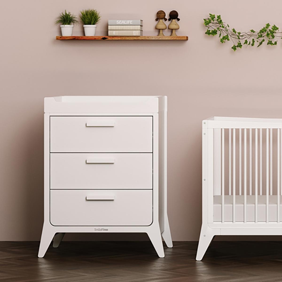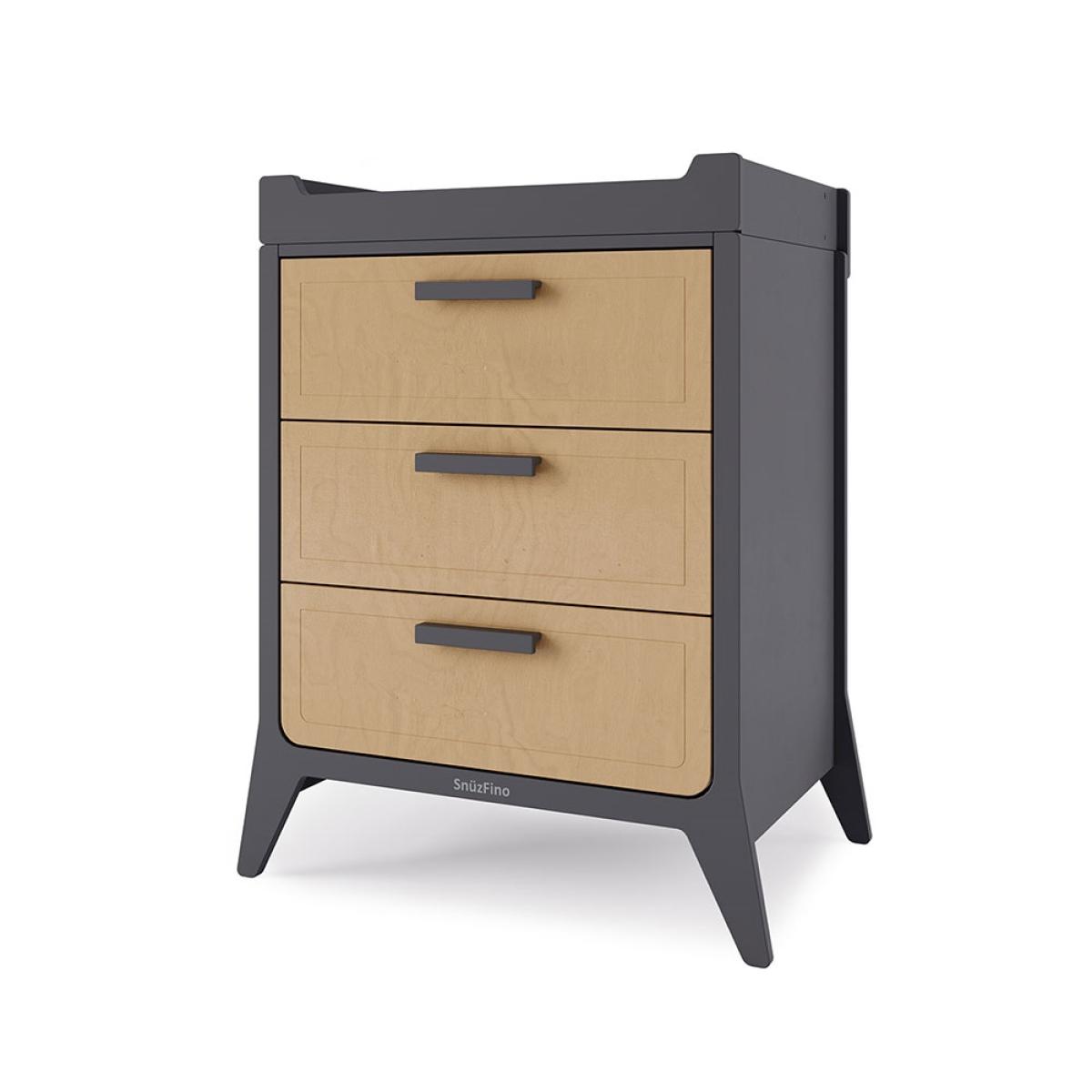 Available in a choice of coloured finishes, the Snuz Fino Changing Unit adapts to suit growing babies and tots! Starting out as a baby changing unit, it's the perfect spot for nappy changes and outfit adjustments. Store essentials in the spacious drawers below and with a handy soft close feature, there's no chance of waking the whole house during those late night cleanups! Once the changing table has been outgrown, simply remove the wooden top and continue using as a chest of drawers throughout their childhood. Designed to be paired with the coordinating Snuz Fino Cot Bed and two door wardrobe, create a stylish and cohesive set for you and your newborn!.