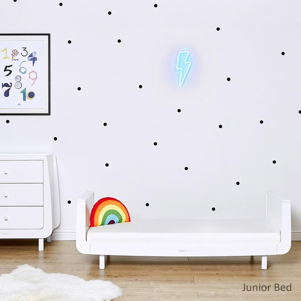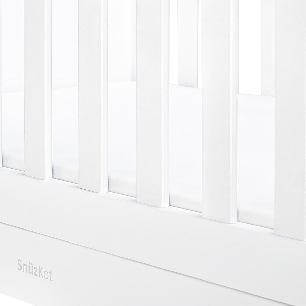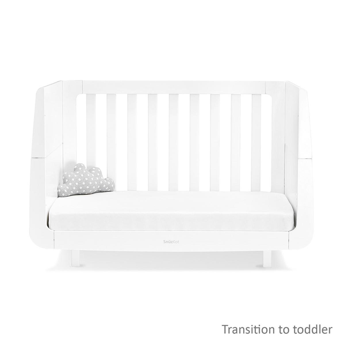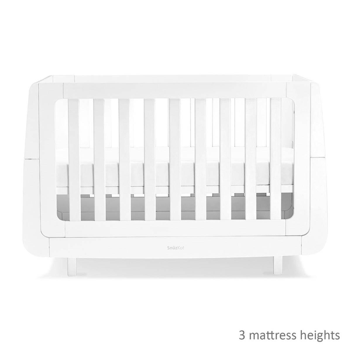 Make sure you're ready for your precious new arrival with the stunning Snuz Kot Cot Bed. From birth to 10 years, the smart design adapts to suit your little one's needs at every stage of their development. The 4 in 1 cot bed design can be cleverly converted with the adjustable bed base and removable safety bars. And when they're not so little anymore, transform the frame again to create the perfect toddler bed. With the addition of the conversion kit, available separately, simply extend the bed out to create an equally brilliant junior bed! Made from solid beech wood, your Snuz Kot is sure to withstand even the liveliest of little ones! Carefully constructed to the highest standards and rigorously tested, they'll sleep safe and sound night after night. Not just smart, but stylish too! Part of the Mode collection, choose from 4 gorgeous colours and with 3 alternative ranges available, Rococo, Luxe and Skandi, there's a Snuz Kot to suit every nursery! Need a place for all of your nursery essentials? Take care of all of your storage needs with the matching changing unit with removable top!.