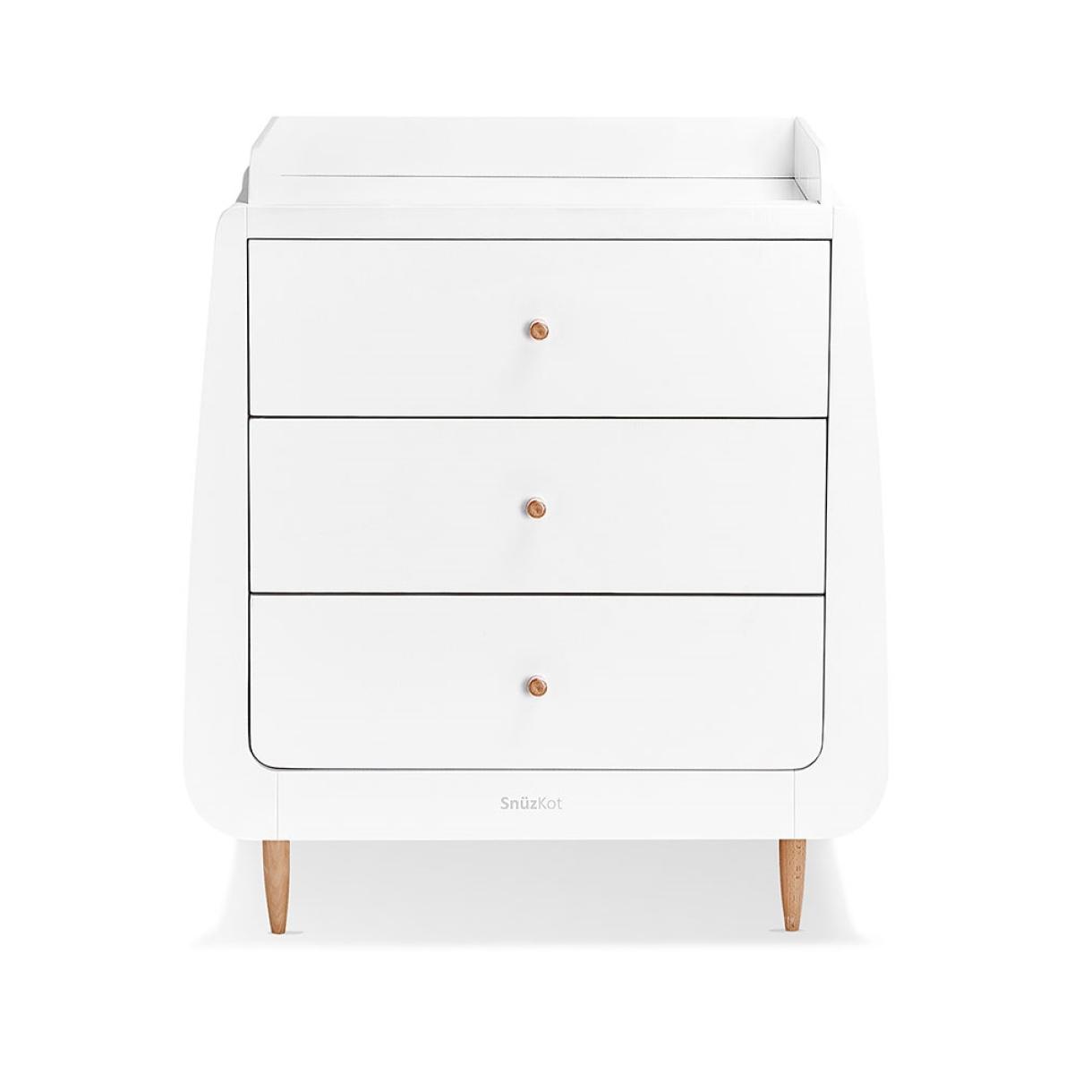 Designed to be paired with the Snuz Kot Skandi collection - the matching changing unit is gorgeous in it's own right! Made from sustainably sourced wood, the unique shaped unit offers practical features too. The removable changing top has been designed with raised sides to ensure your little one is safe and secure while you fuss over them. And when nappies are no longer needed, convert into a standalone dresser and continue using the contemporary design throughout their childhood. Choose from a wide selection of colours and find the perfect Snuzkot Skandi Changing Unit for you and your littlun!.
