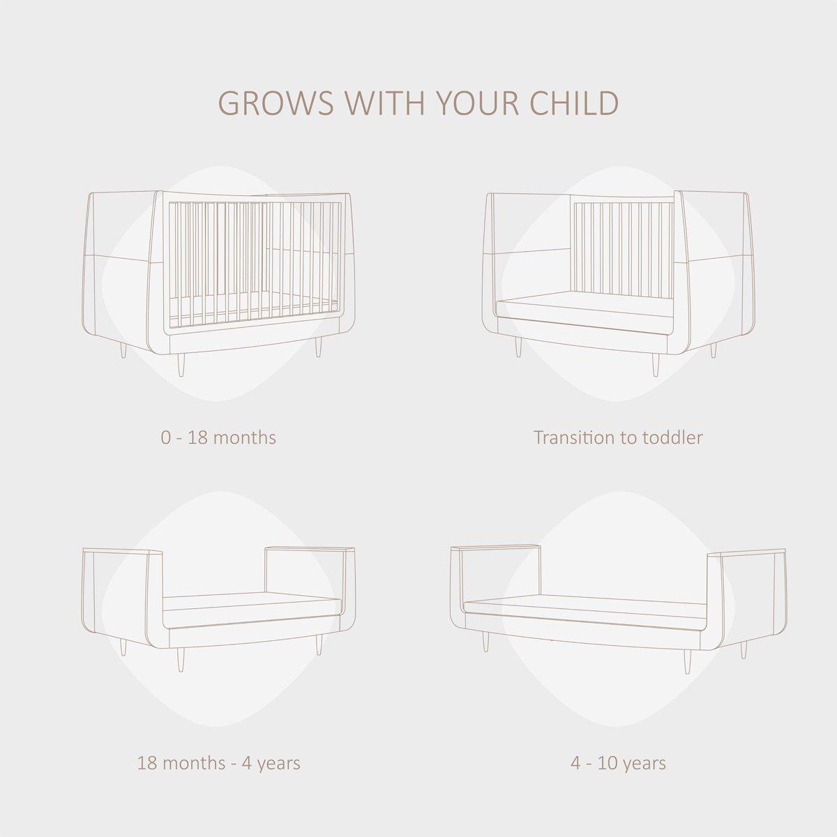 As your child grows, so does Snuz. Kot, converting to a toddler bed up to 4 years, and with the additional junior bed extension kit to approx. 10 years. Part of the Snuz Kot collection. Suitable from birth. Cot suitable from birth until baby is able to climb out. Toddler bed suitable for ages 18 month to 4 years. Made from wood. Cot Features Size L133, W72, H89cm. 3 position adjustable mattress base - allows you to lower the height of the mattress as your baby learns to sit and stand. Height under cot 12cm. Converts to toddler bed. Mattress Features Mattress not included - use. General information Self-assembly. Manufacturer's 1 year guarantee.