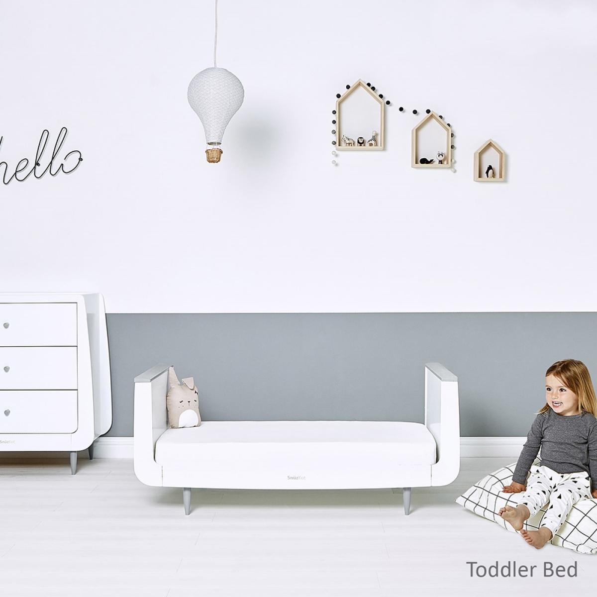 Make sure you're ready for your precious new arrival with the stunning Snuz Kot Cot Bed. From birth to 10 years, the smart design adapts to suit your little one's needs at every stage of their development. The 4 in 1 cot bed design can be cleverly converted with the adjustable bed base and removable safety bars. And when they're not so little anymore, transform the frame again to create the perfect toddler bed. With the addition of the conversion kit, available separately, simply extend the bed out to create an equally brilliant junior bed! Made from solid beech wood, your Snuz Kot is sure to withstand even the liveliest of little ones! Carefully constructed to the highest standards and rigorously tested, they'll sleep safe and sound night after night. Not just smart, but stylish too! Part of the Skandi collection, choose from 6 gorgeous colours and with 3 alternative ranges available, Rococo, Luxe and Mode, there's a Snuz Kot to suit every nursery! Need a place for all of your nursery essentials? Take care of all of your storage needs with the matching changing unit with removable top!.