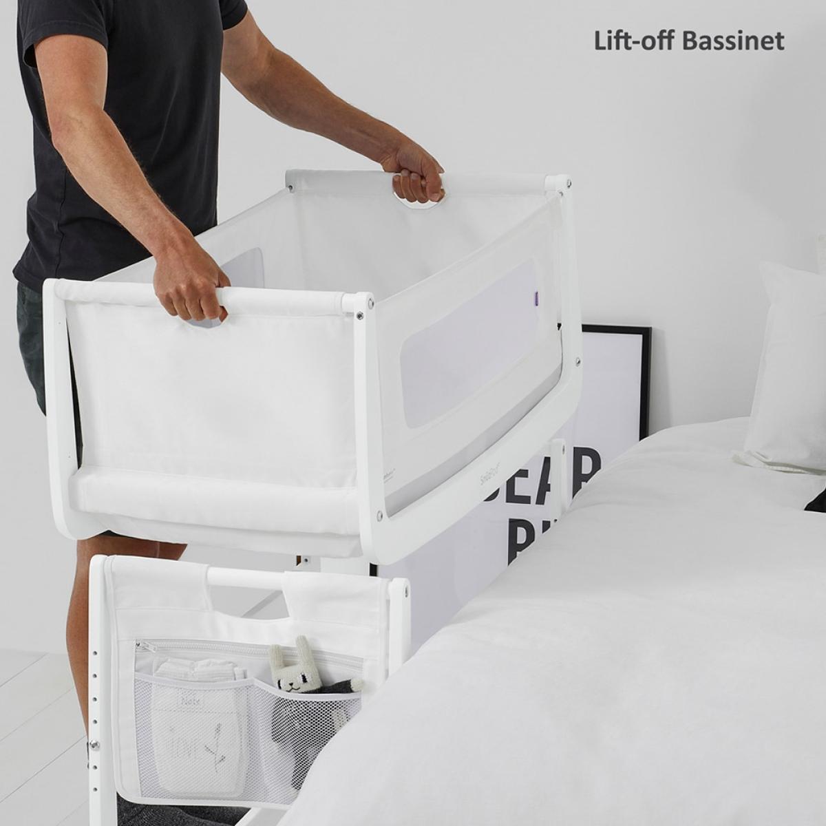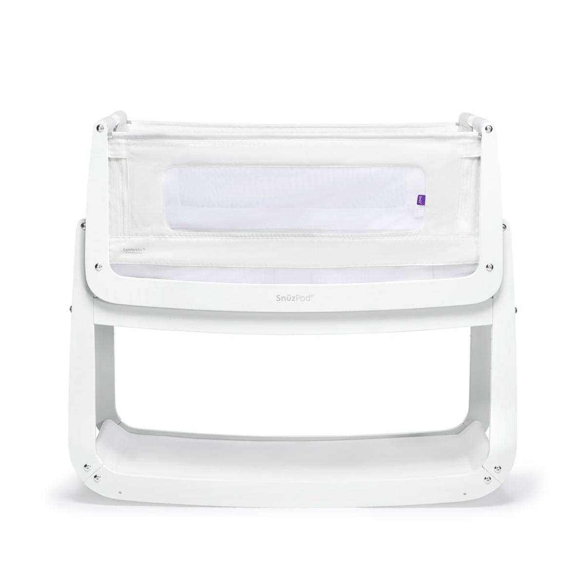 Including everything you need, the Snuzpod 4 Starter Pack in White would make a great first bed for your baby! Including the Snuz Pod 4 Bedside Crib 3-in-1 with Mattress, waterproof mattress protector, Snuz Cloud sleep aid and two fitted sheets, we've saved you some time getting all of the accessories you'll need! Use the Snuzpod as a standalone crib, a removablebassinet or attach to your bed as a safe alternative to bed sharing or co sleeping. Snuz Pod allows you to easily comfort, settle and feed your baby without having to leave your bed, helping build a close bond and ensure both you and your baby have the very best night’s sleep. It gives you the reassurance and comfort that your baby is snoozing next to you in their own safe sleeping area – as recommended by baby experts. The rocking base helps you soothe baby and essentials can be stored on the lower shelf. The Comfort Air breathable system helps regulate your babies temperature as they snooze and the mattress level vents and mesh sides promote air flow and allow you to check on your baby without disturbing them. The tilt function prevents reflux after feeding and with a height adjustable design, set the crib to suit your space. Much more than just a bedside crib, Snuz. Pod’s clever and stylish three in one design has been made with you and your baby in mind. The bundle starter pack is available in a selection of gorgeous colours, so you'll have a job picking your favourite!.