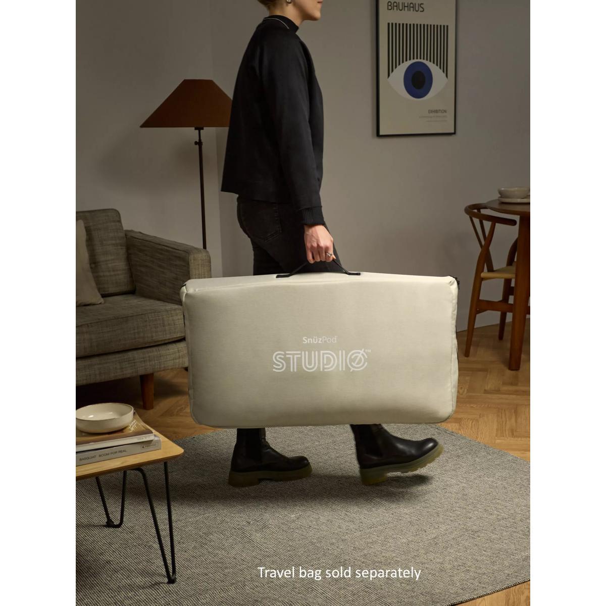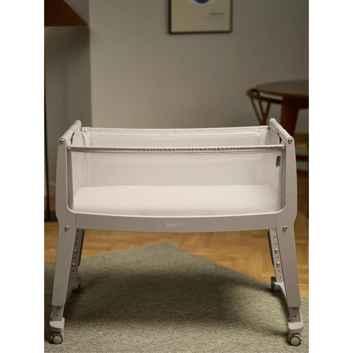 SnuzPod Studio's new lifestyle bedside crib: minimalist in design, bold in style, and practical in action, made for the modern parent. Fits effortlessly into your busy life, making sure your baby is always snug and close, whether it's daytime naps or nighttime rests. SnuzPod Studio dives into conventionally maximalist shades, inspired by the evolving tones of city living. Enjoy a complete range of options available to complement your interiors and align with your style, from rich bold shades to luxe neutrals. Beauty is in the detail, with metallic hardware to enhance the look. All Snüz products are tested to the current safety standards, with innovation and commitment, we strive to always create the best for your baby. Additional features: Lightweight with castor wheels and travel bag available Night and day, zip-down wall for bedtime use 3D breathable mattress and comfort incline mode ready Six height settings and hassle-free setup Panoramic breathable mesh panels Suitable from birth to approximately 6 months SnuzPod Studio complies with BS EN 1130:2019. Mattress complies with BS EN 16890:2017 + A1:2021. Designed to fit divan, ottoman and framed bed bases. Suitable for bedside use where the top surface of the adult mattress is level with the top of the zip-down wall of the Snuz Pod Studio, up to a maximum height of 70.5cm from the floor.
