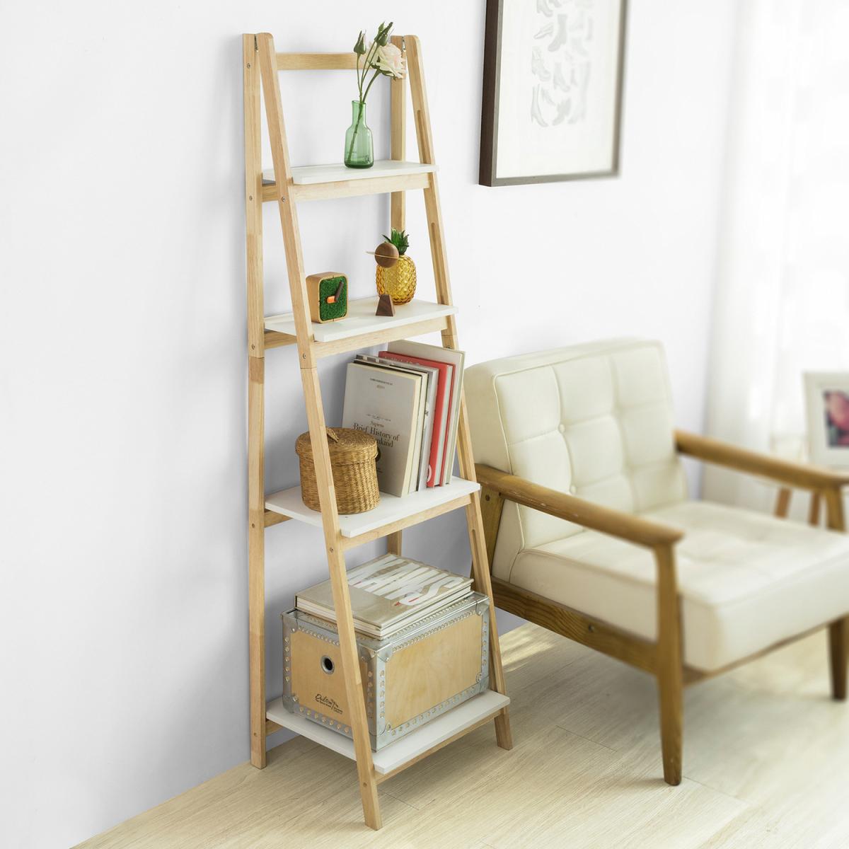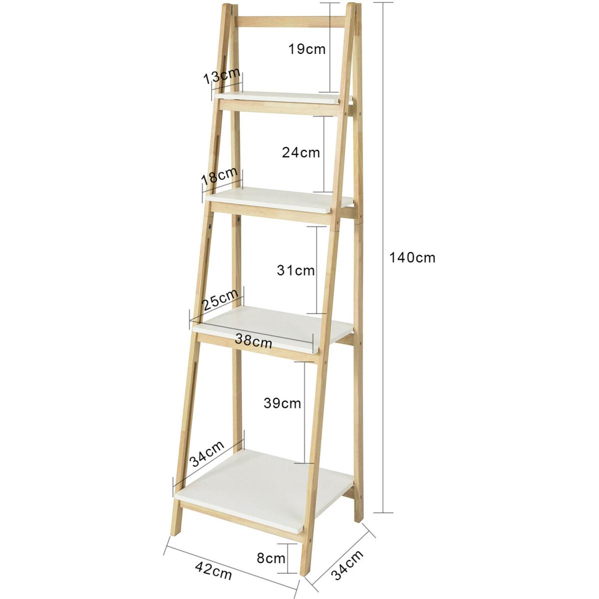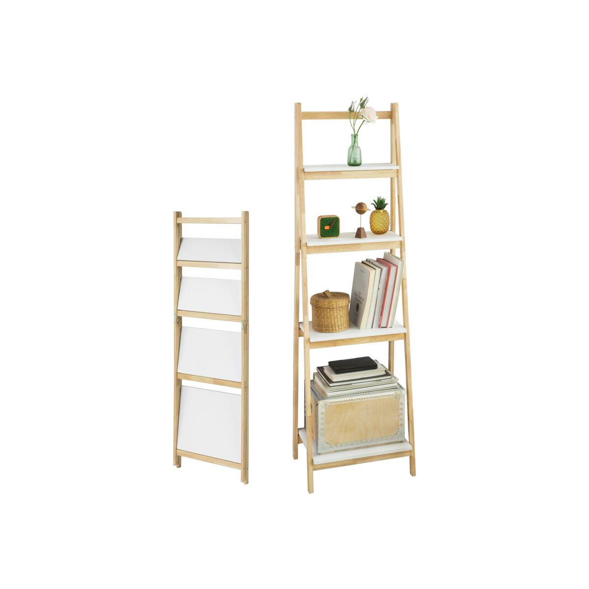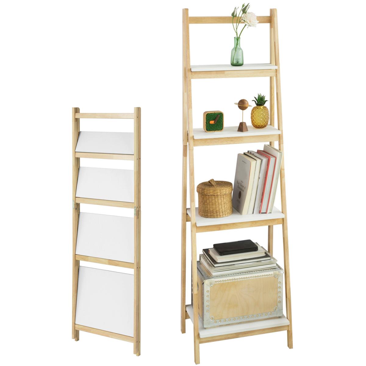 Simply elegant design 4 tiers folding storage shelf, ideal for living room, bathroom, office, bedroom, studio, etc. This decorative standing shelf with its 4 levels ensures clarity and convinces with its natural, simple charm. The extremely stable body is made of rubberwood. Due to the simple design, the shelf is versatile. (also suitable in the bathroom). With this shelf, you have enough space to store books, CDs, folders, documents or your towels. But the staircase-shaped frame is also appealing as a kitchen or flower shelf. If the shelf is not needed, it can be quickly and easily folded up to save space and stowed in small corners.