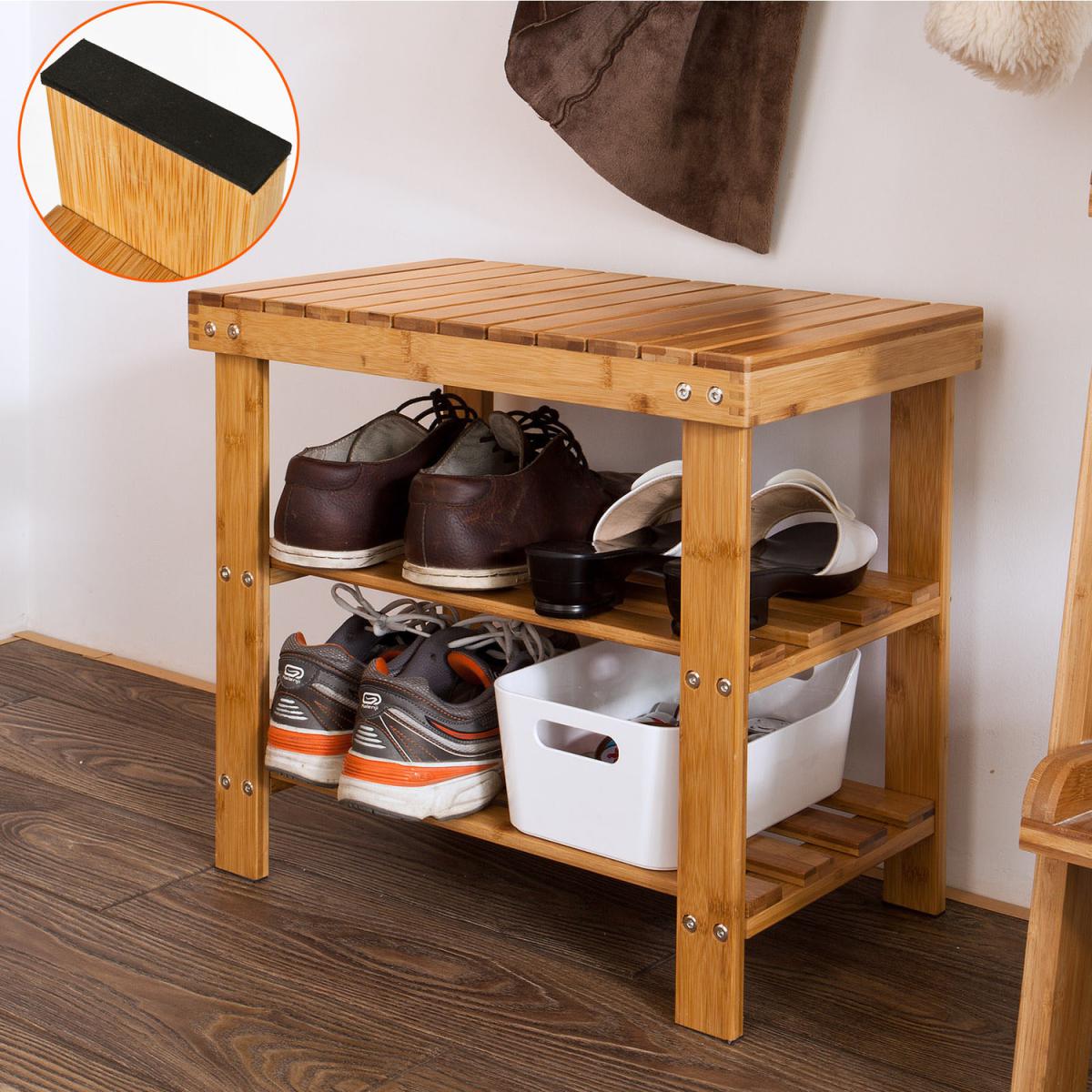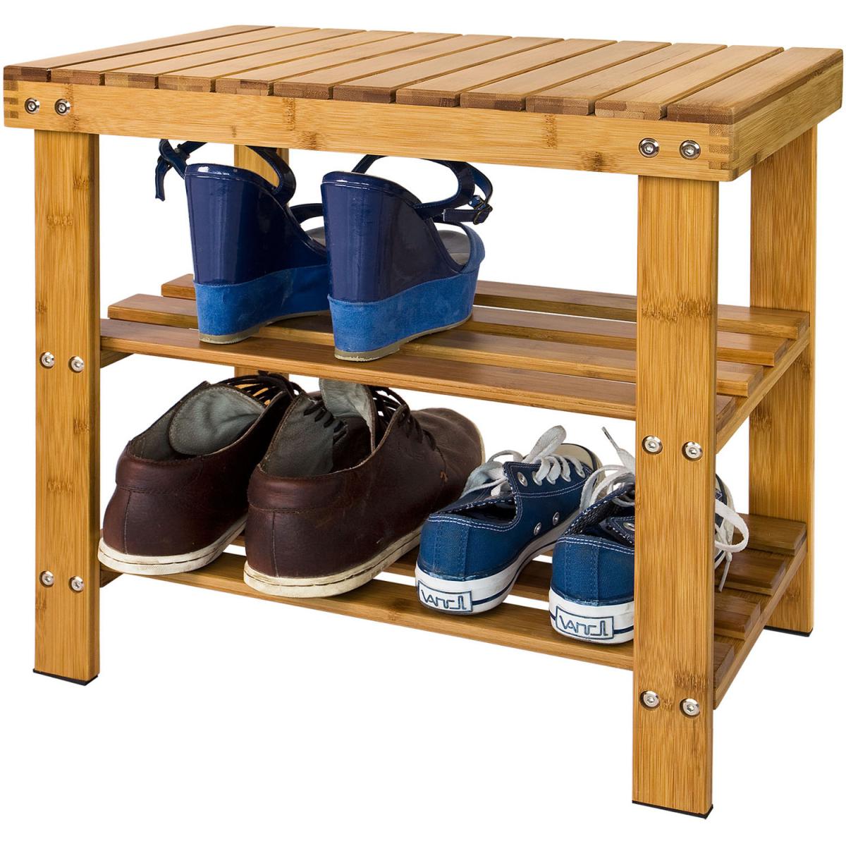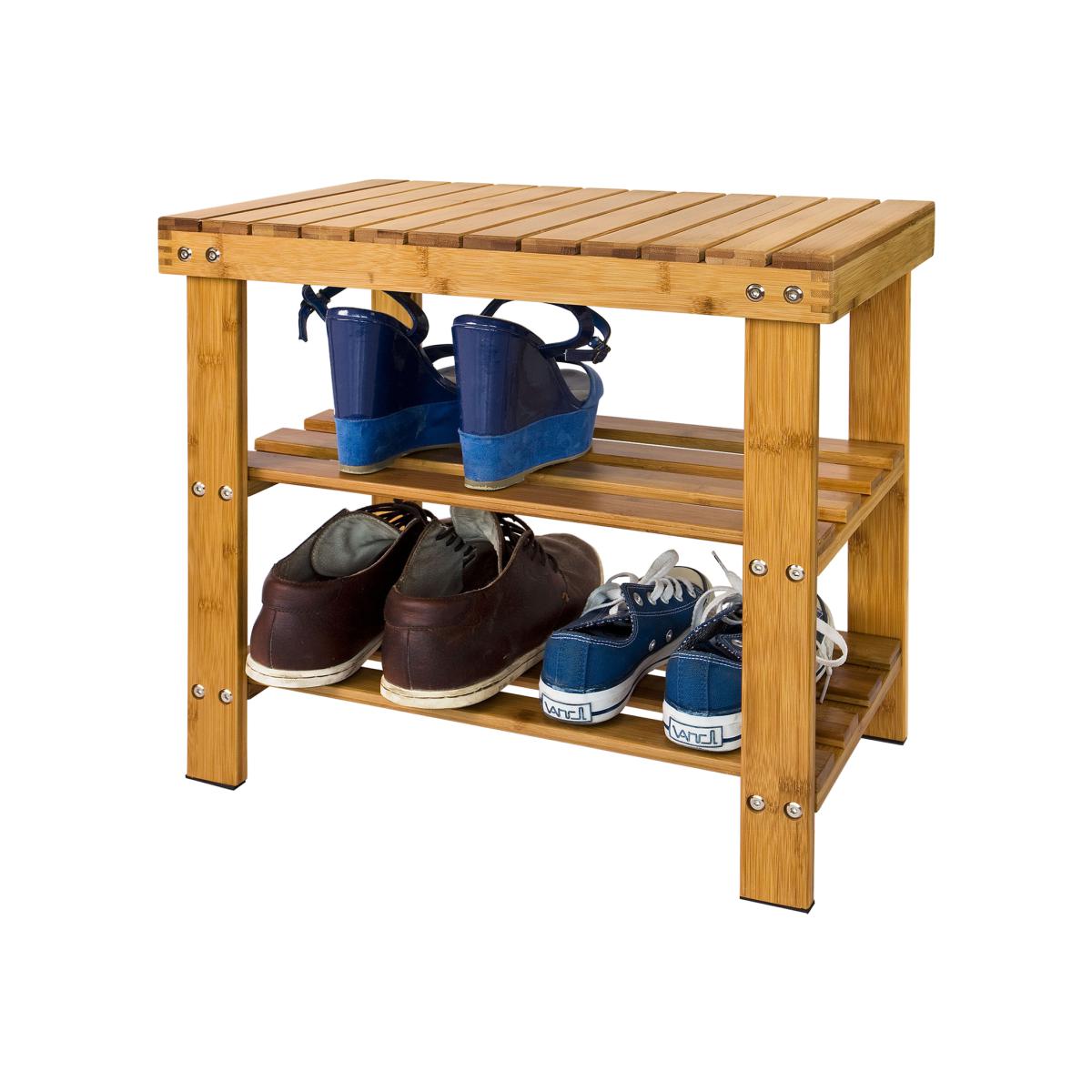 Bench and shoe rack in one. Practical and decorative. It is a shoe storage shelf, but also a place where you can sit down to lace up. It is really convenient and gives you comfort. It has two shelves to put shoes on. Its size is convenient and you can place it at the entrance of the house, the living room or bedroom.