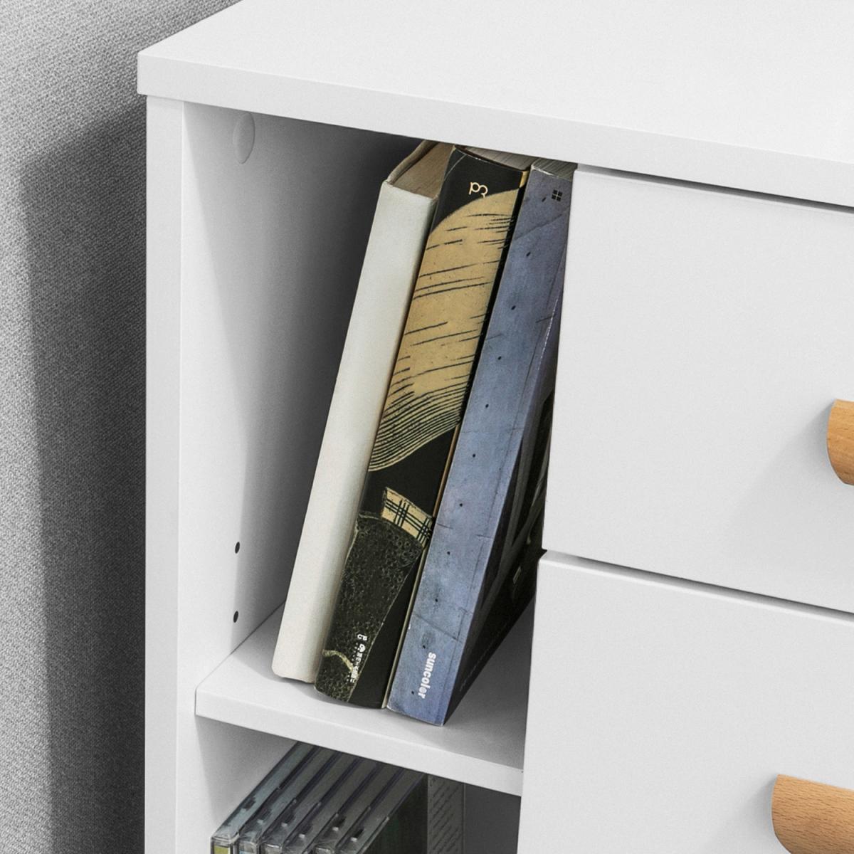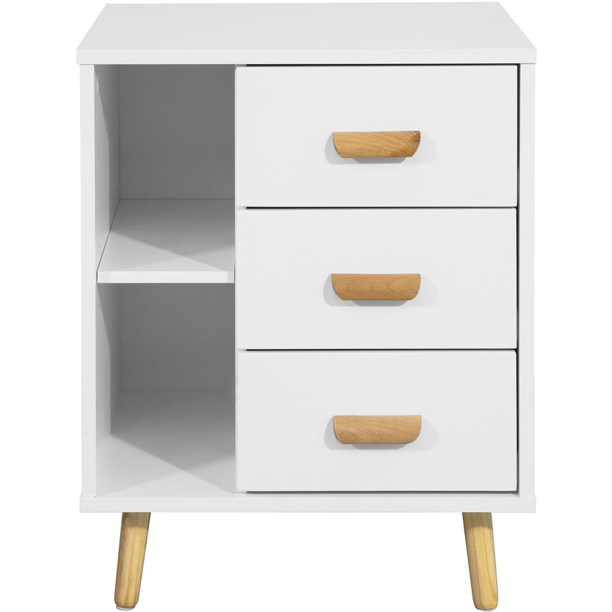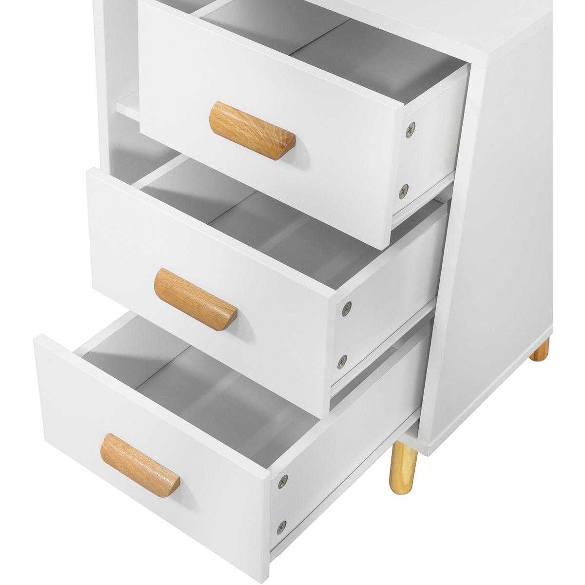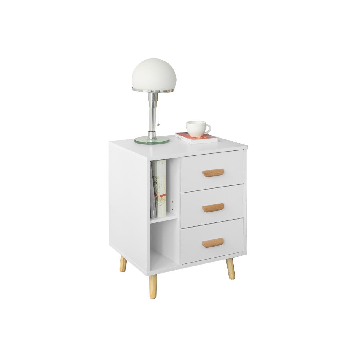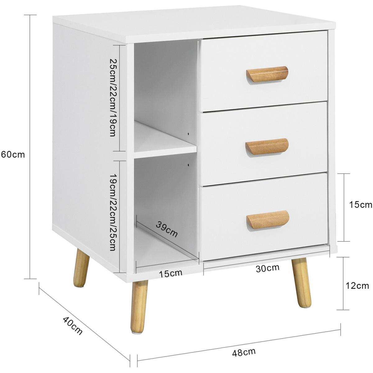 This side table nightstand creates a distinctive and modern atmosphere for your home. It is great to be used as a sofa side table or bedside table for you to get accessible to what you need. It offers ample storage space for books, magazines, remote controls, glasses and other small items, keeping your room tidy and organized.3 slide-out drawers with handles provide ample storage space for your personal items.2 open storage compartments and the top shelf offer additional storage and display space for you. Practical and space-saving, it is a good addition to any room. Elegant and simple design, it matches any home decor perfectly.
