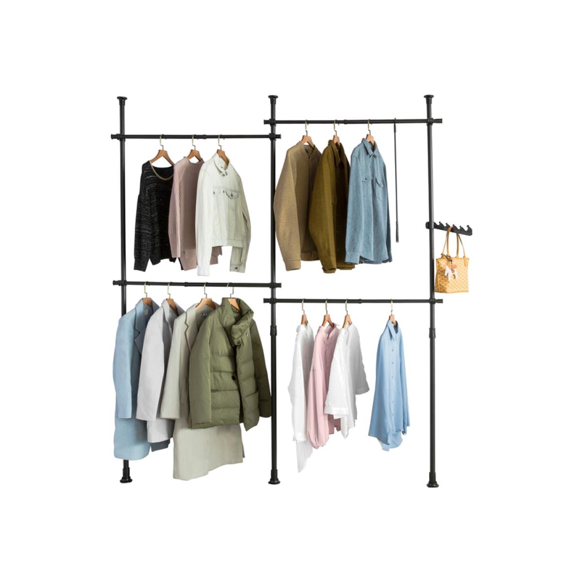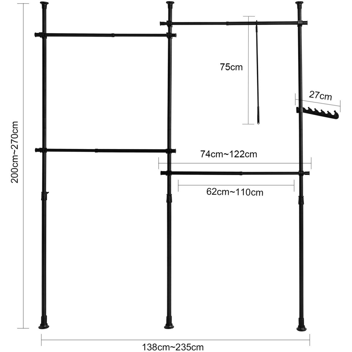 Whether you'll slot this Adjustable Wardrobe Organiser into your bedroom, dressing room or even your living room, its clever design will prove the ideal way to boost your storage space. The adjustable size of the shelving is the perfect wardrobe for a walk-in closet, dressing room or bedroom. It needn't be screwed onto the floor or the ceiling. The upright poles rely on suction as you stretch them from floor to ceiling. Item comes in a flat pack and requires self-assembly. Detailed instructions supplied.