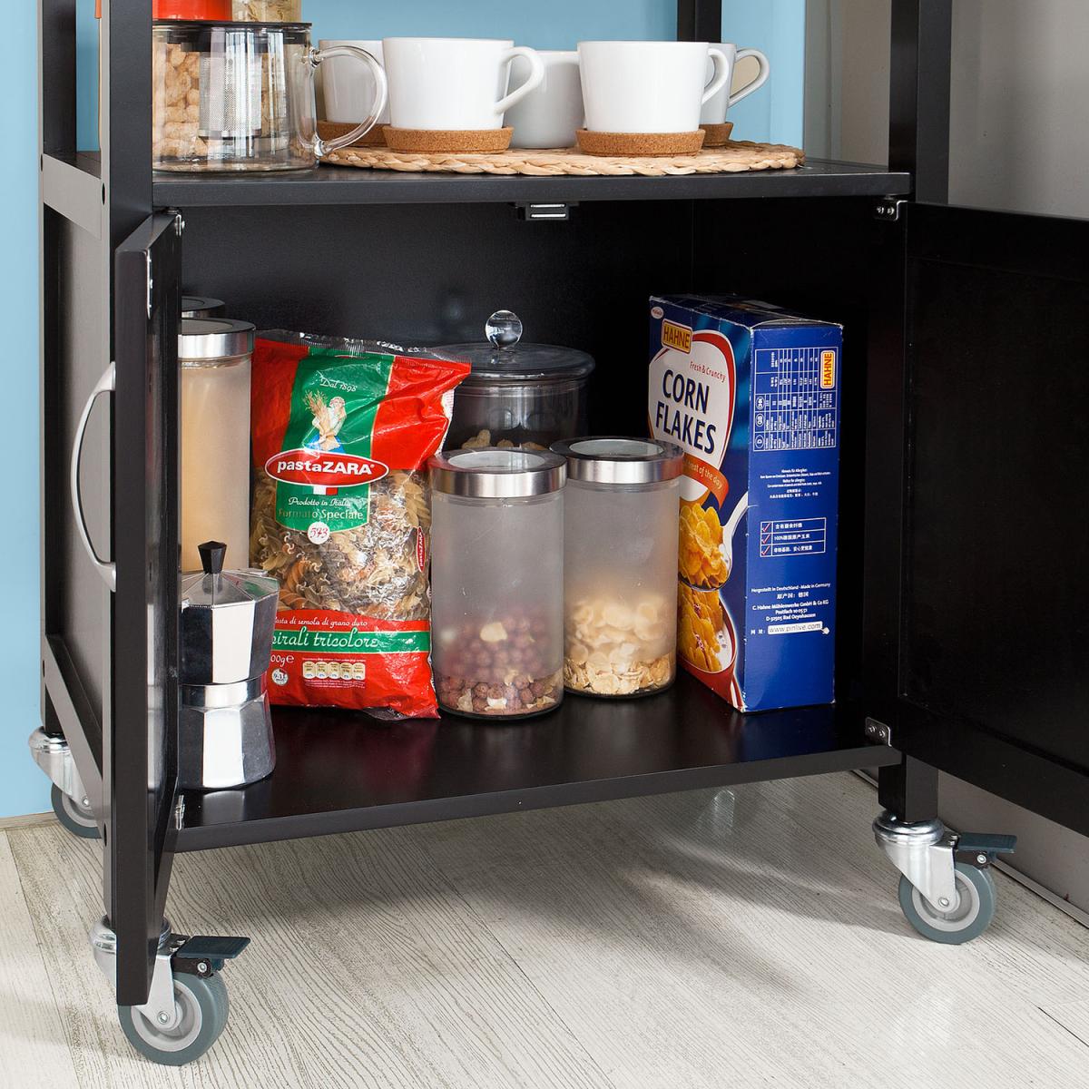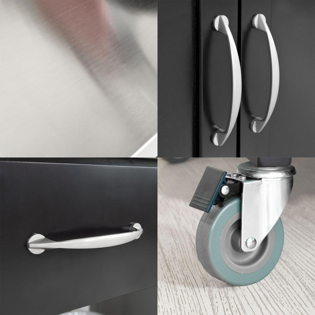 This kitchen cabinet provides plenty of storage space for various utensils in your kitchen. Equipped with stainless steel worktop, 1 drawer, 1 open shelf, 1 cabinet, 4 wheels (2 with brake). It's not just a pretty decorative accessory for your kitchen, but also an idea to serve meals directly to your guests. This trolley is also ideal for putting a printer, files and books in the office or a coffee machine and cups in the tea room.