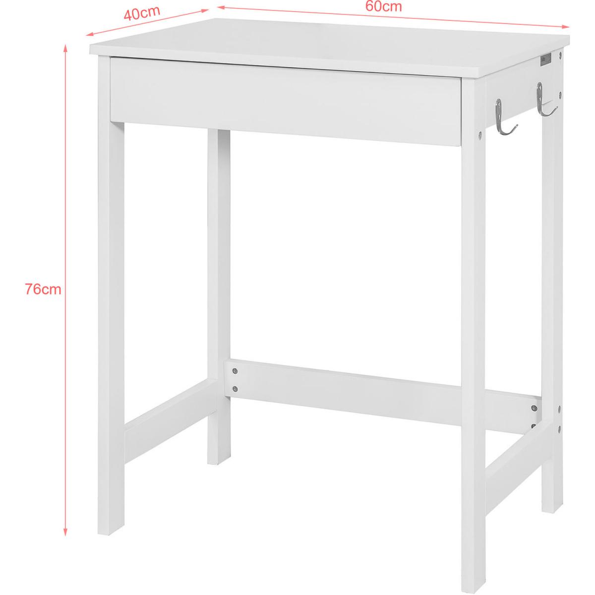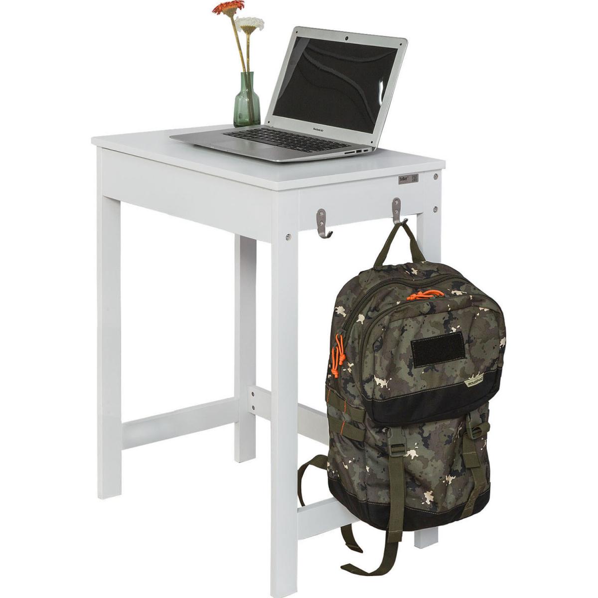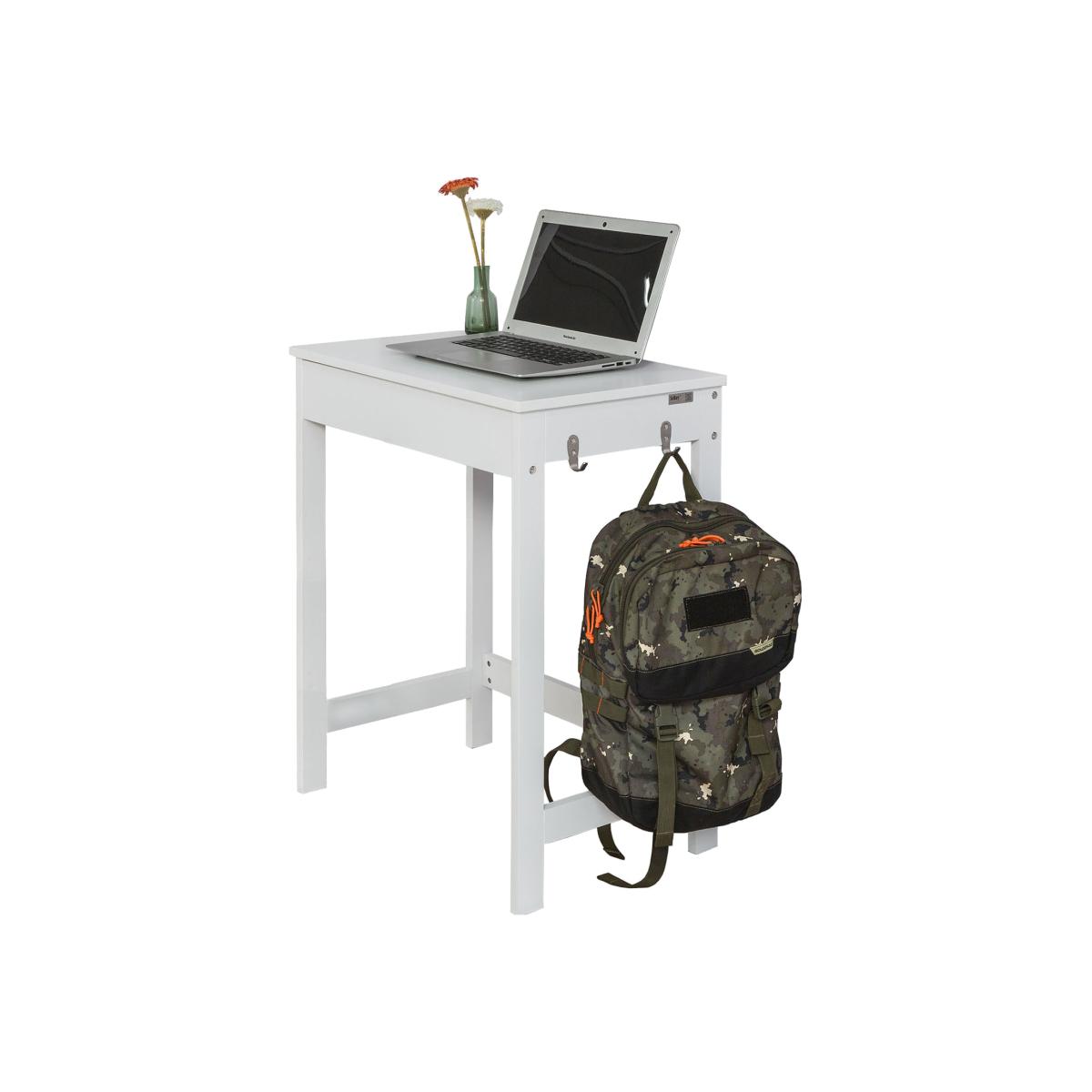 Modern and compact design, this desk is a good choice for children and teenagers. With 1 drawer and 2 hooks on the right-hand side, offering extra storage space and keeping the desk tidy and organized. Made of E1 standard MDF in white lacquer. Fashionable appearance, so it sure fit perfectly with any style of home decor.