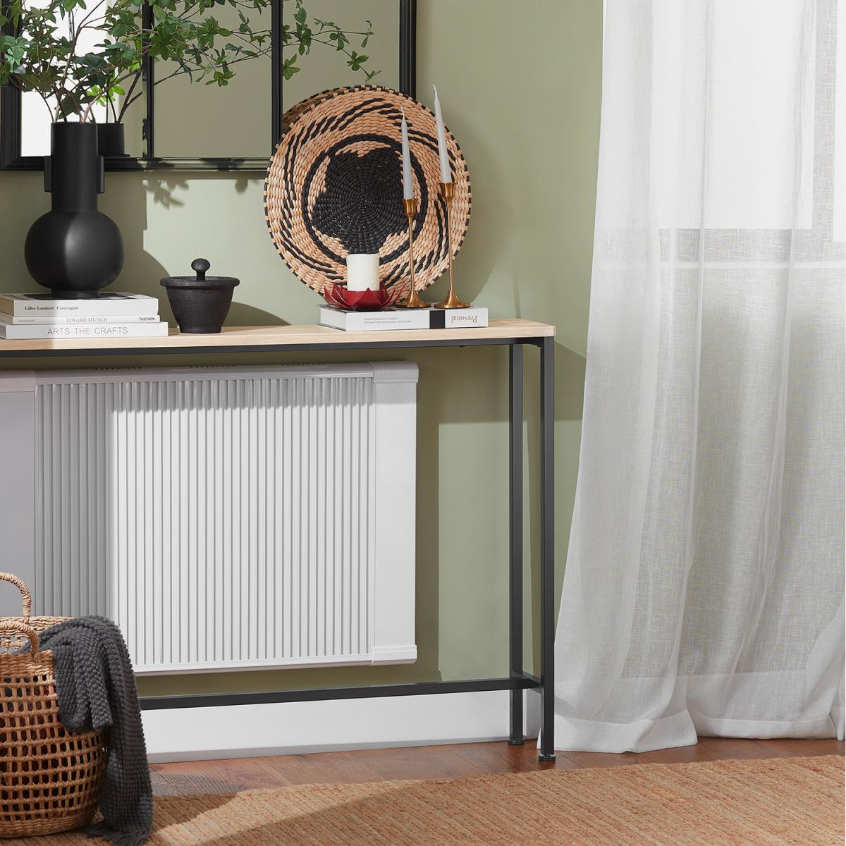 It can be used as a console table, sofa table, or entry table, suitable for an entryway, hallway, living room and office. On the tabletop, you have enough space to decorate photos, flowers, books and much more. Also, important things such as your keys are always at hand. It is very multi-functional due to the slender and clean design yet practical feature. Made of MDF top and white metal frame. Strong and stable. Item comes in a flat pack and requires self-assembly. Detailed instructions supplied.