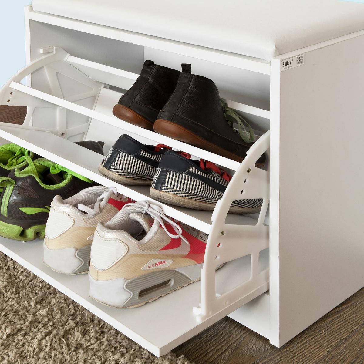 SoBuy FSR16-W Shoe Storage Bench with Flip-drawer