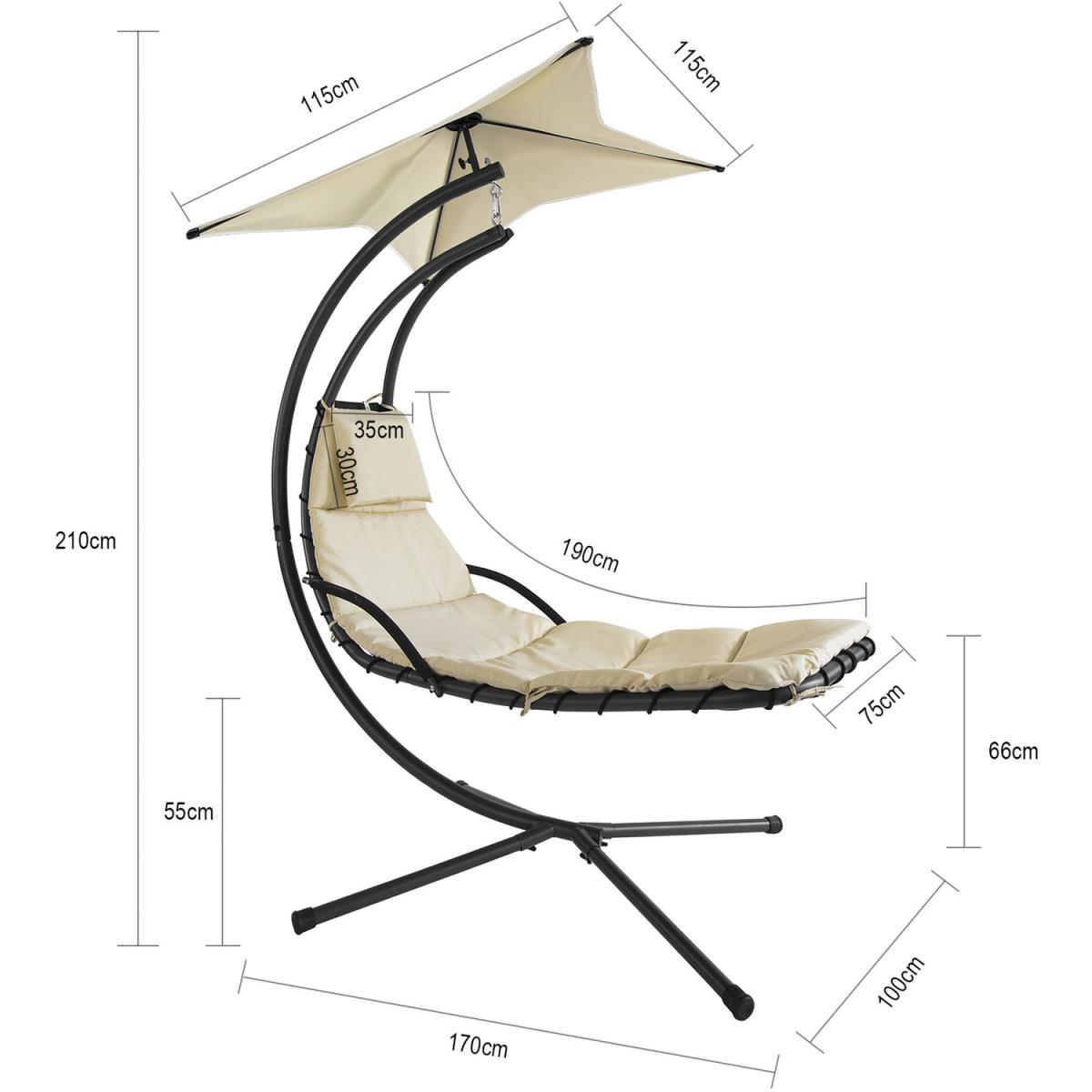 Slightly swinging reading a book, relaxing, resting or just letting the day end of? The Sobuy recliner chair will help you. Thanks to the beautiful and modern design, this stylish floating lounger is an absolute highlight in your garden, on the terrace or on the balcony and serves as a perfect place for relaxation. The swing lounger is weatherproof. In changing weather conditions, they should still be covered or stored. Because due to the influence of permanent moisture and scratches in the coating, rust can occur. Item comes in a flat pack and requires self-assembly. Detailed instructions supplied.