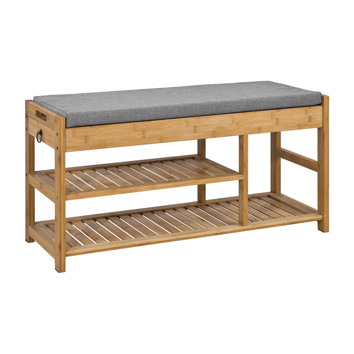 I’m a fan of this bamboo bench-and-shoe combo because it marries seating with discreet storage without looking bulky. Its warm, natural finish complements Scandi, coastal and Japandi schemes, and the slim profile suits narrow hallways. For styling, swap out the grey cushion for a patterned seat-pad to introduce colour, and tuck matching woven baskets on the lower shelves to corral slippers or trainers. Pair it with a slim mirror or wall hooks above, a small potted plant at one end and a simple runner rug to complete a tidy, welcoming entry.