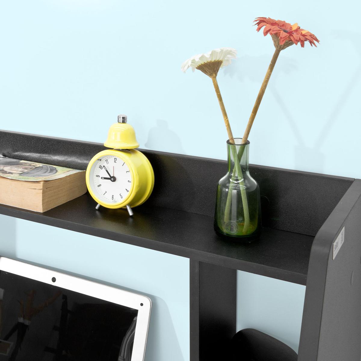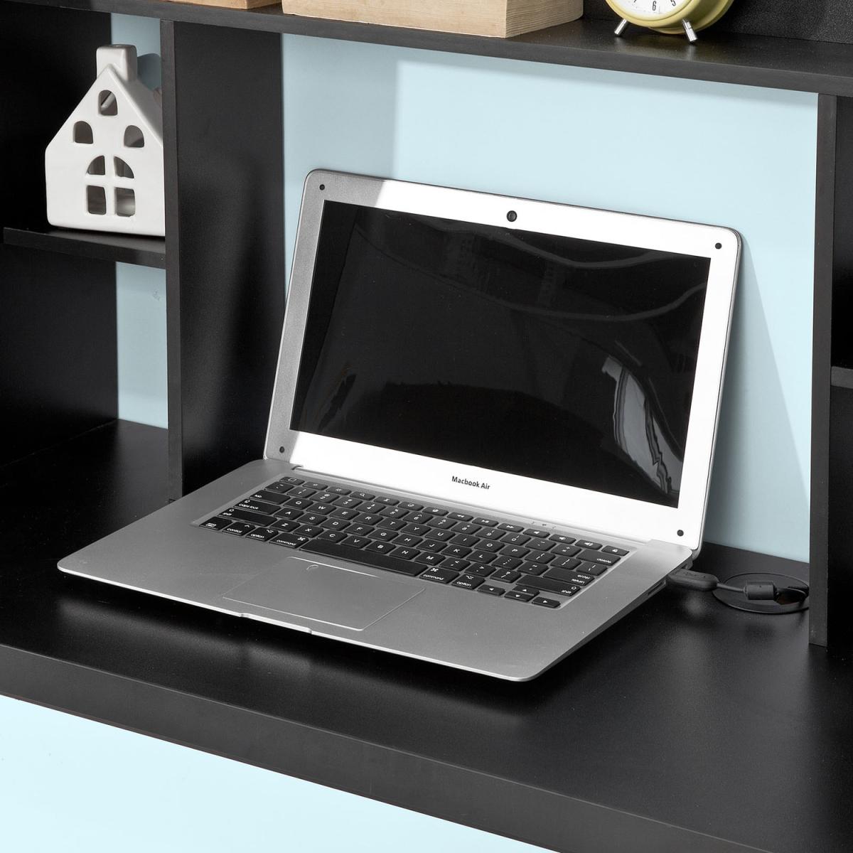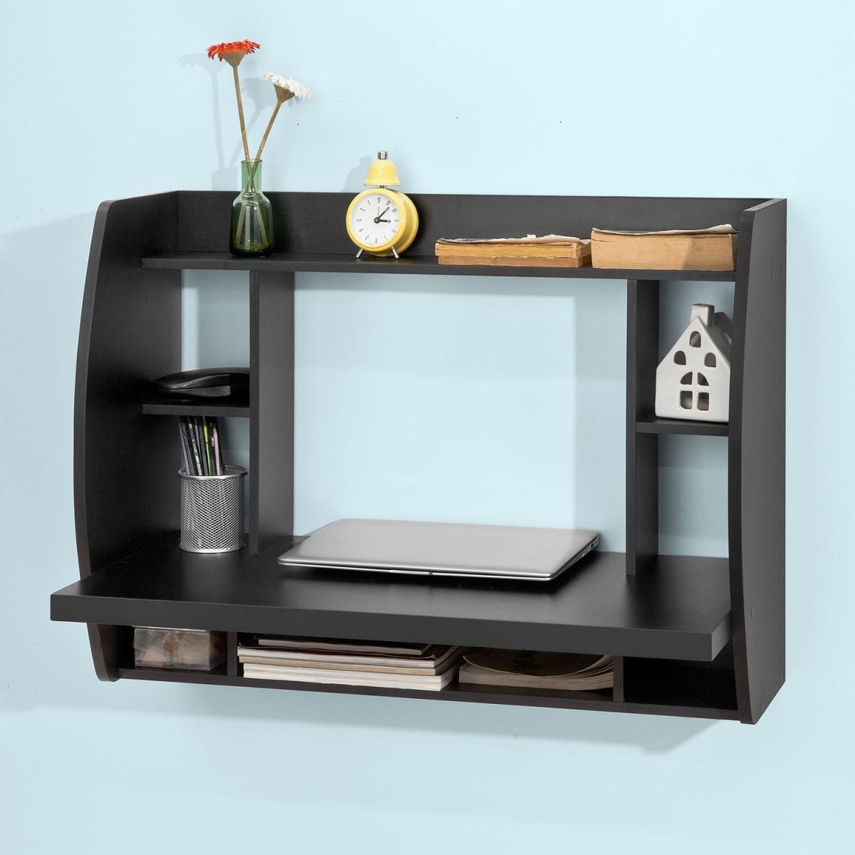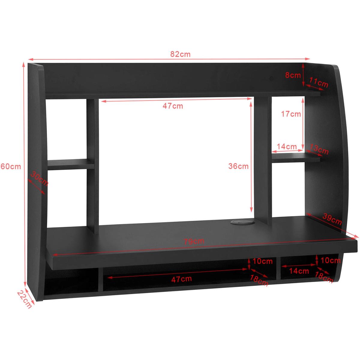 A convenient and space-saving wall table desk is a good choice for your home and office. It is made up of top-shelf, side shelves, tabletop and 3 drawers under the top, which provides working space and extra plenty of storage space. Cable & wire holes are on both the surface and middle drawer to keep your desk tidy and organized. It can be fixed to the wall by fasteners securely at the height you want. Mounting hardware and instructions included, easy to mount. Designed for maximum convenience and ideal for anywhere in the house.