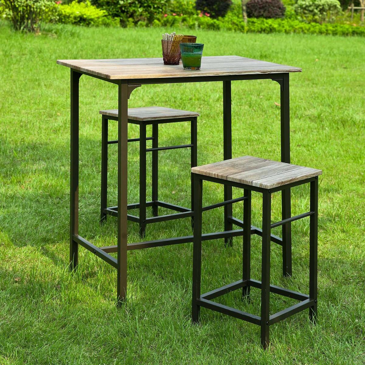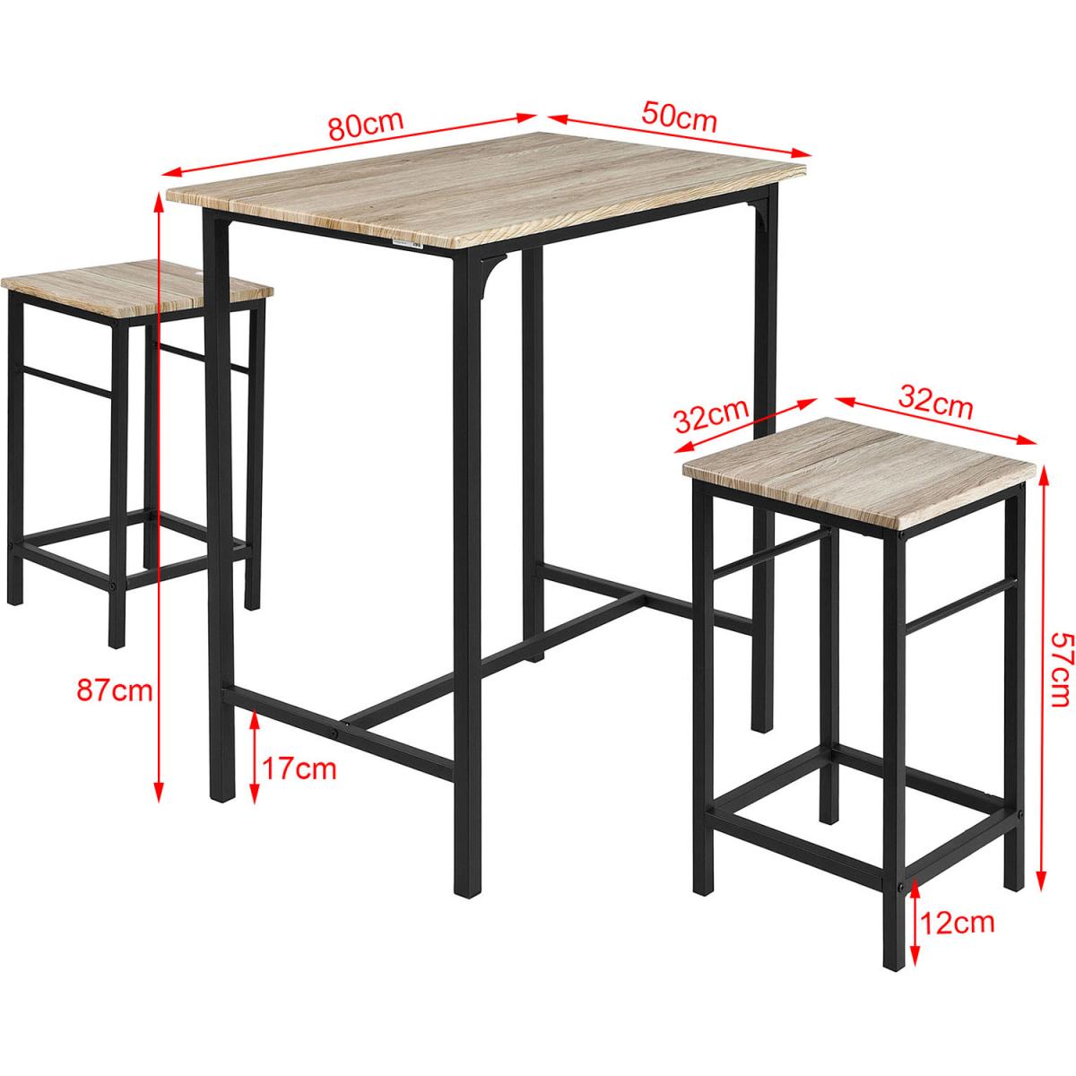 3 Pieces Bar Set- one bar table and two stools - is the perfect addition to any family home. Modern design, strong metal frame, stable structure. Made of high-quality MDF coated with PVC and black powder-coated steel frame. An excellent solution for the kitchen, living room and bar etc. Practical and fashionable, this space-saving dining set will provide a functional as well as relaxing place to eat and drink with friends and family. Item comes in a flat pack and requires self-assembly. Detailed instructions supplied.