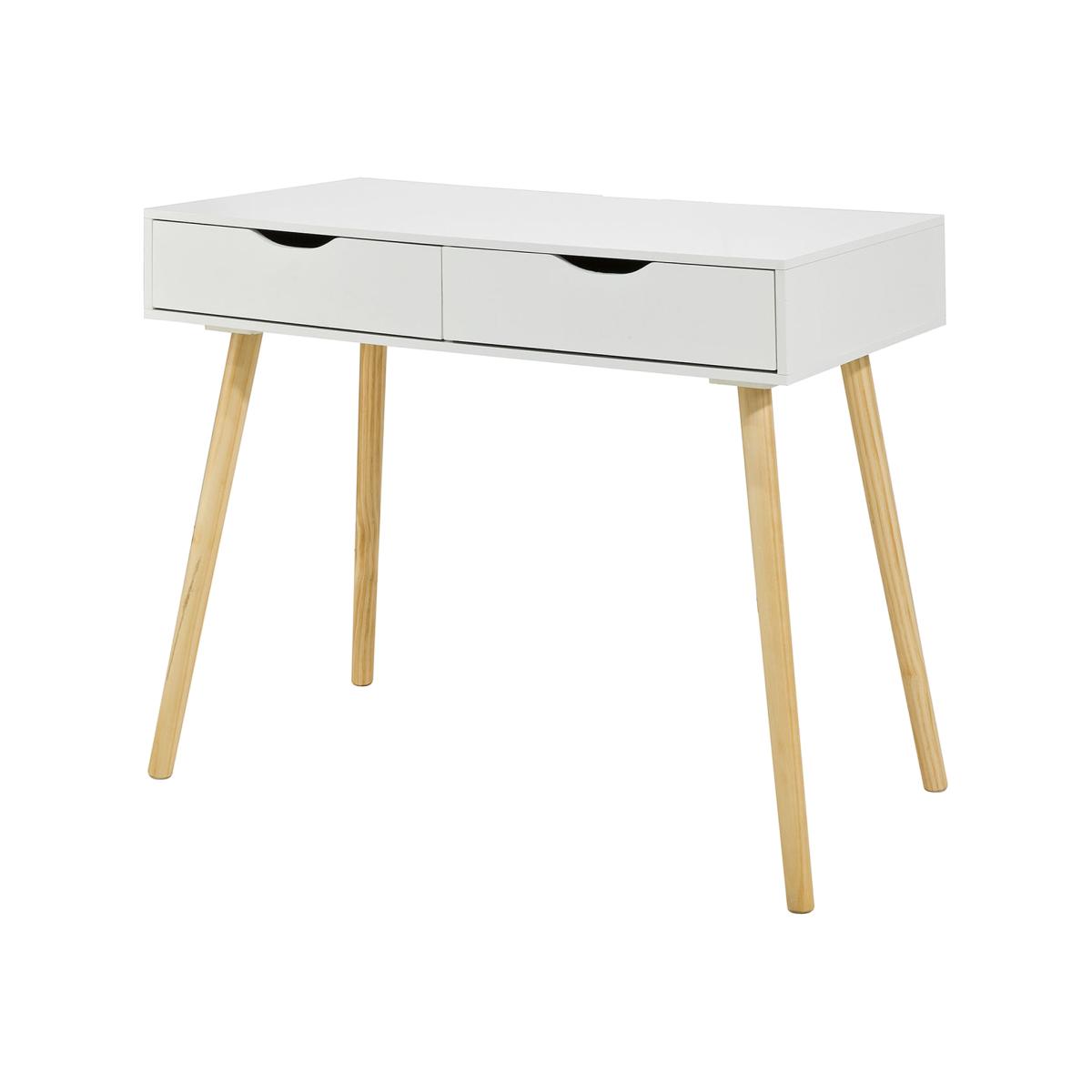 I particularly like how this white desk with natural wood legs brings a fresh, Scandi-inspired feel to both home offices and small bedroom corners. The two shallow drawers are ideal for stashing away stationery and cables, so you can keep the surface clear for a laptop, desk lamp and a couple of potted plants. For styling, place it beneath a framed print or corkboard, use a slim tray to corral your pens, and add a simple basket underneath to hold extra files or a laptop bag.