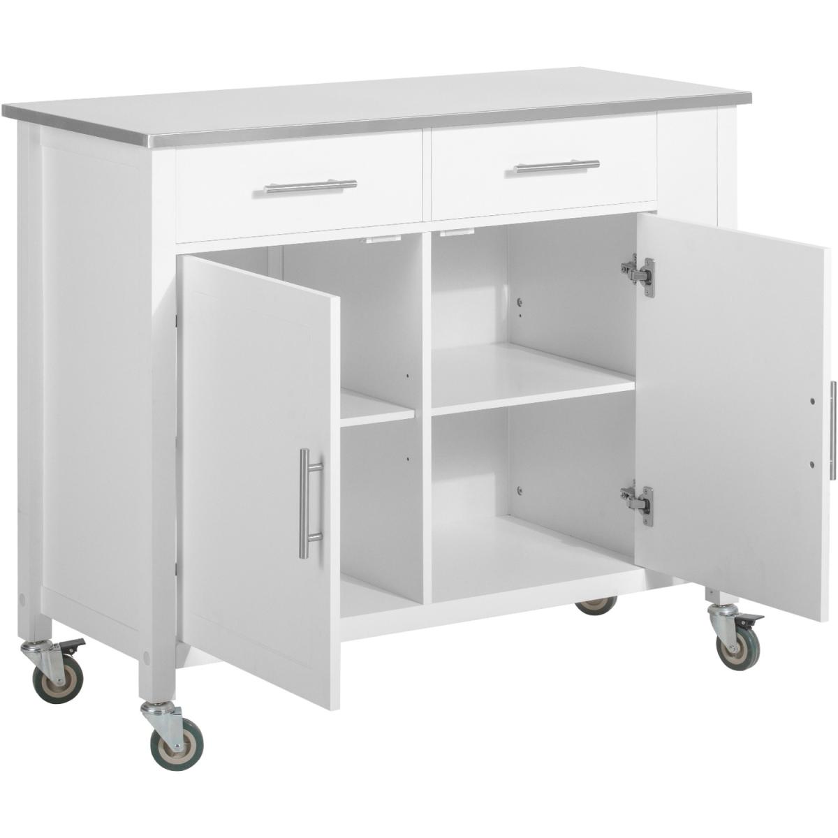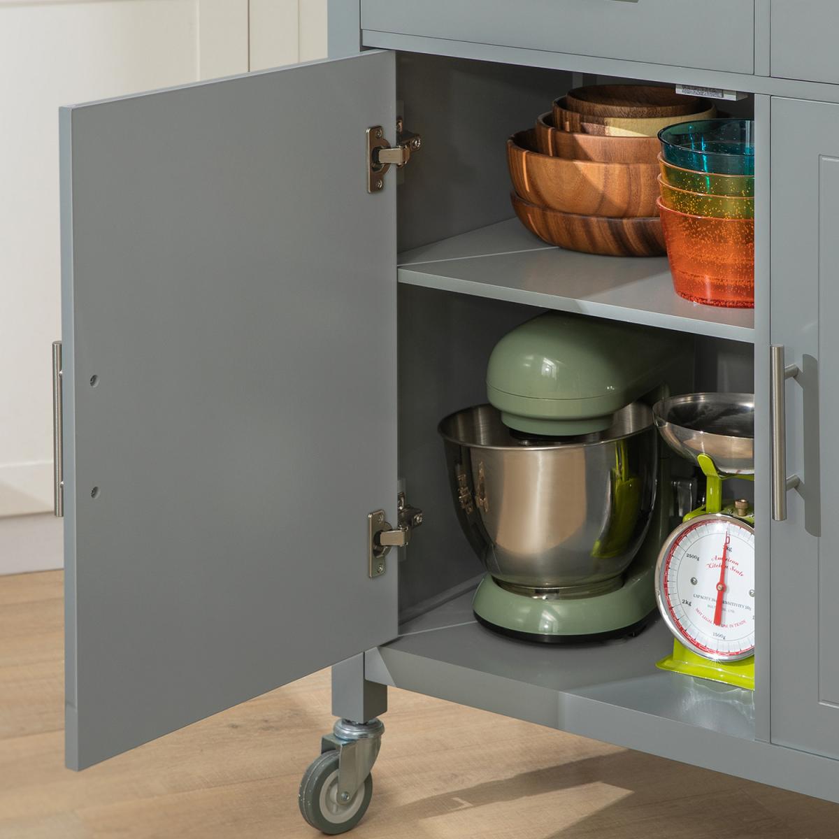 I’m a fan of this grey island trolley for its clean lines and versatile storage - two drawers and a double-door cupboard make stashing utensils and pantry bits effortless, while the lockable castors mean you can wheel it into your prep zone or tuck it aside when guests arrive. It suits modern-Scandi, coastal or light-filled farmhouse kitchens, especially where floor space is tight. To style, keep your chopping board and knife block on one side, then balance with a low vase or herb pot and a wooden tray for oils. Tuck rolled tea towels or extra dishware in the cupboard below, and you’ll have a practical focal point that never feels over-fussy.